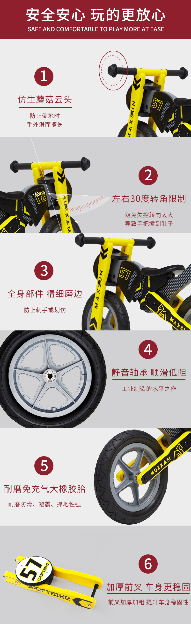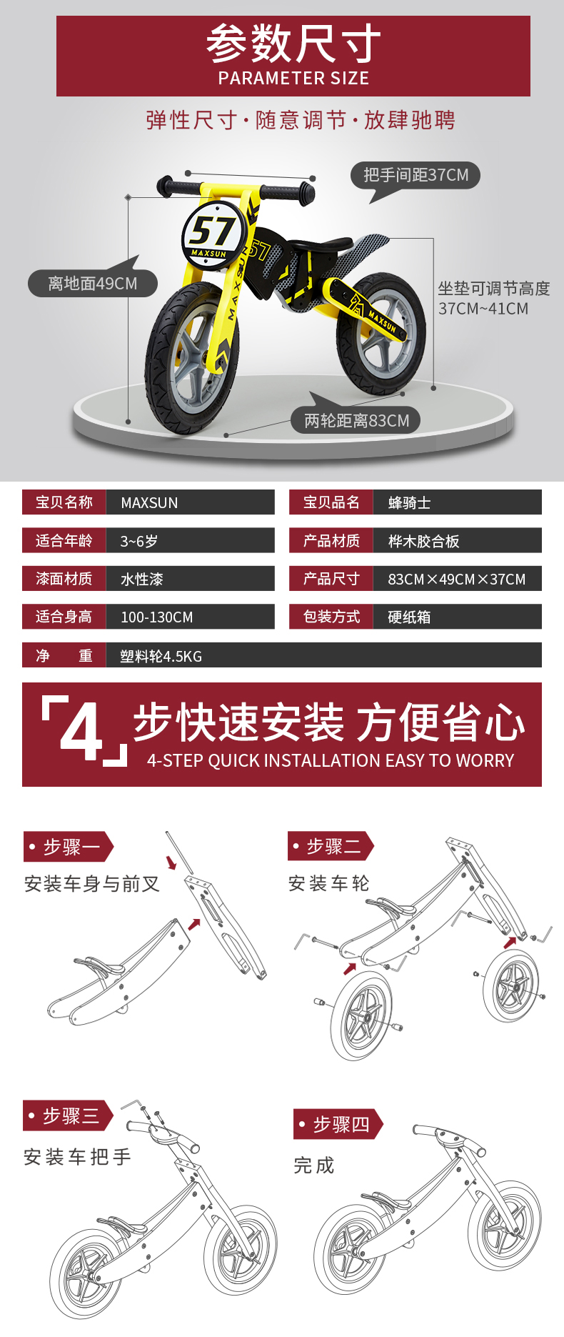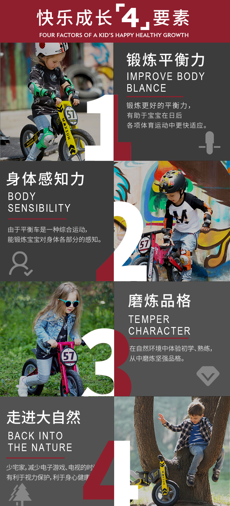 【双十一特价】德国MAXSUN3-7岁儿童平衡车机车系自行车无脚踏木制滑步车