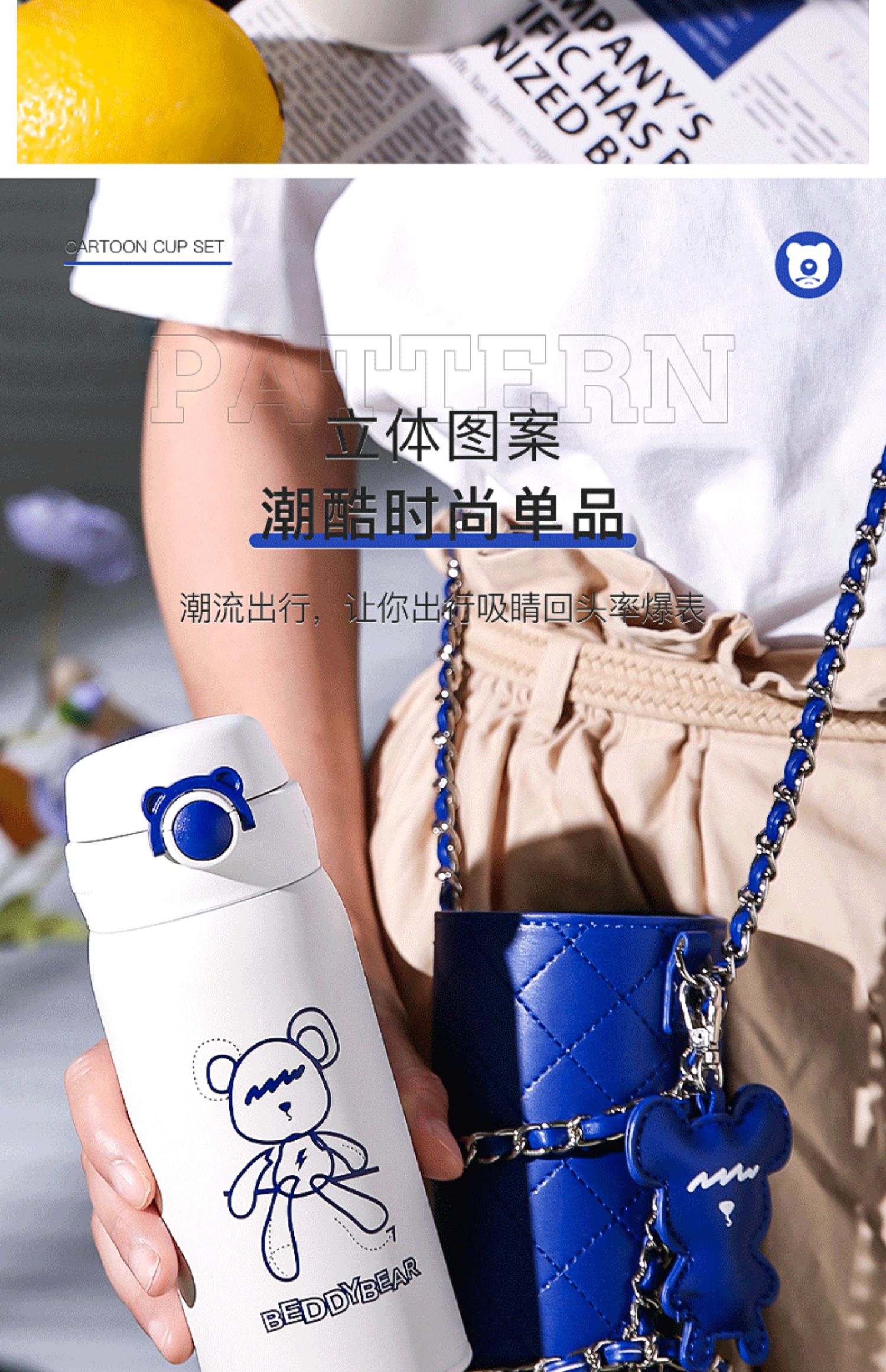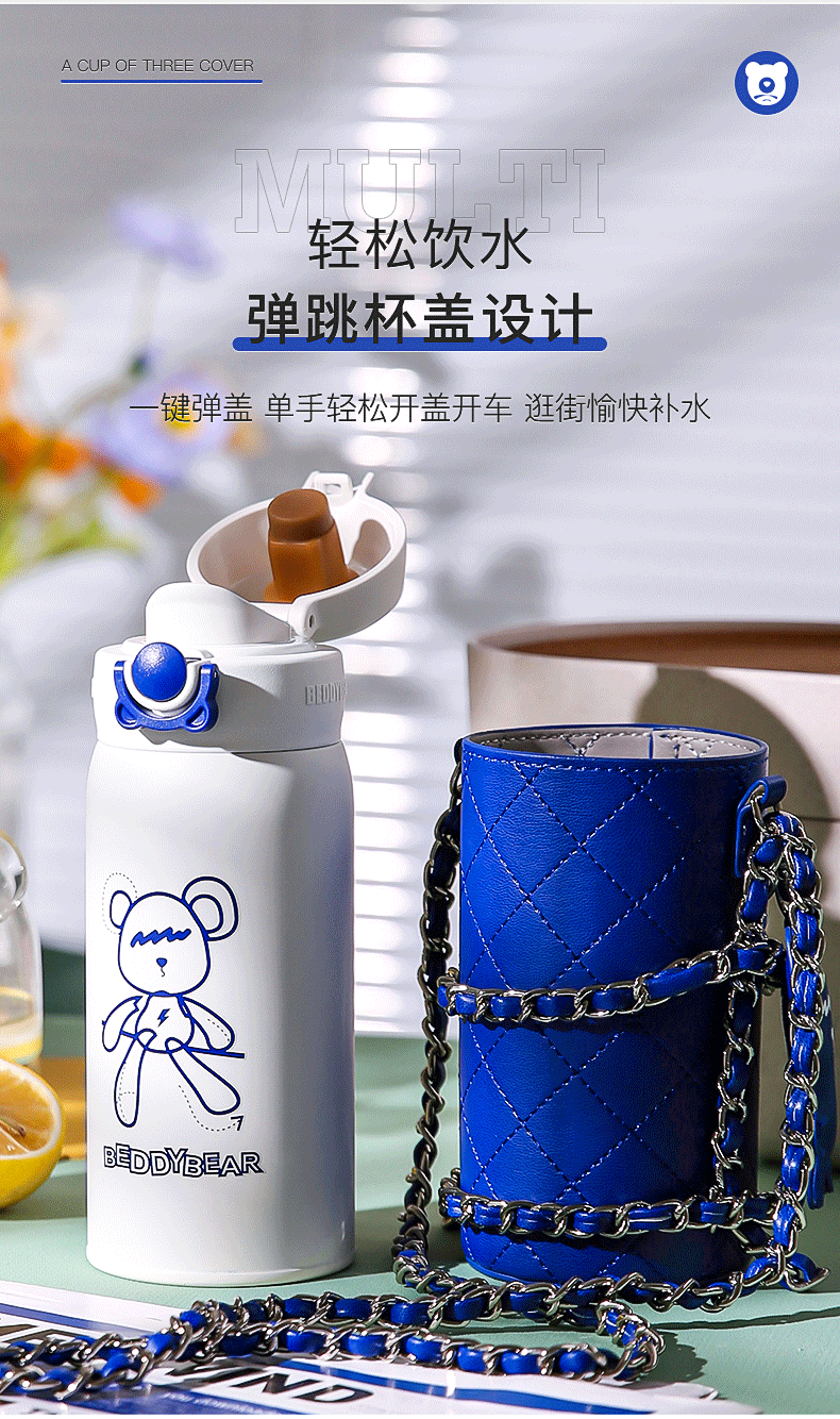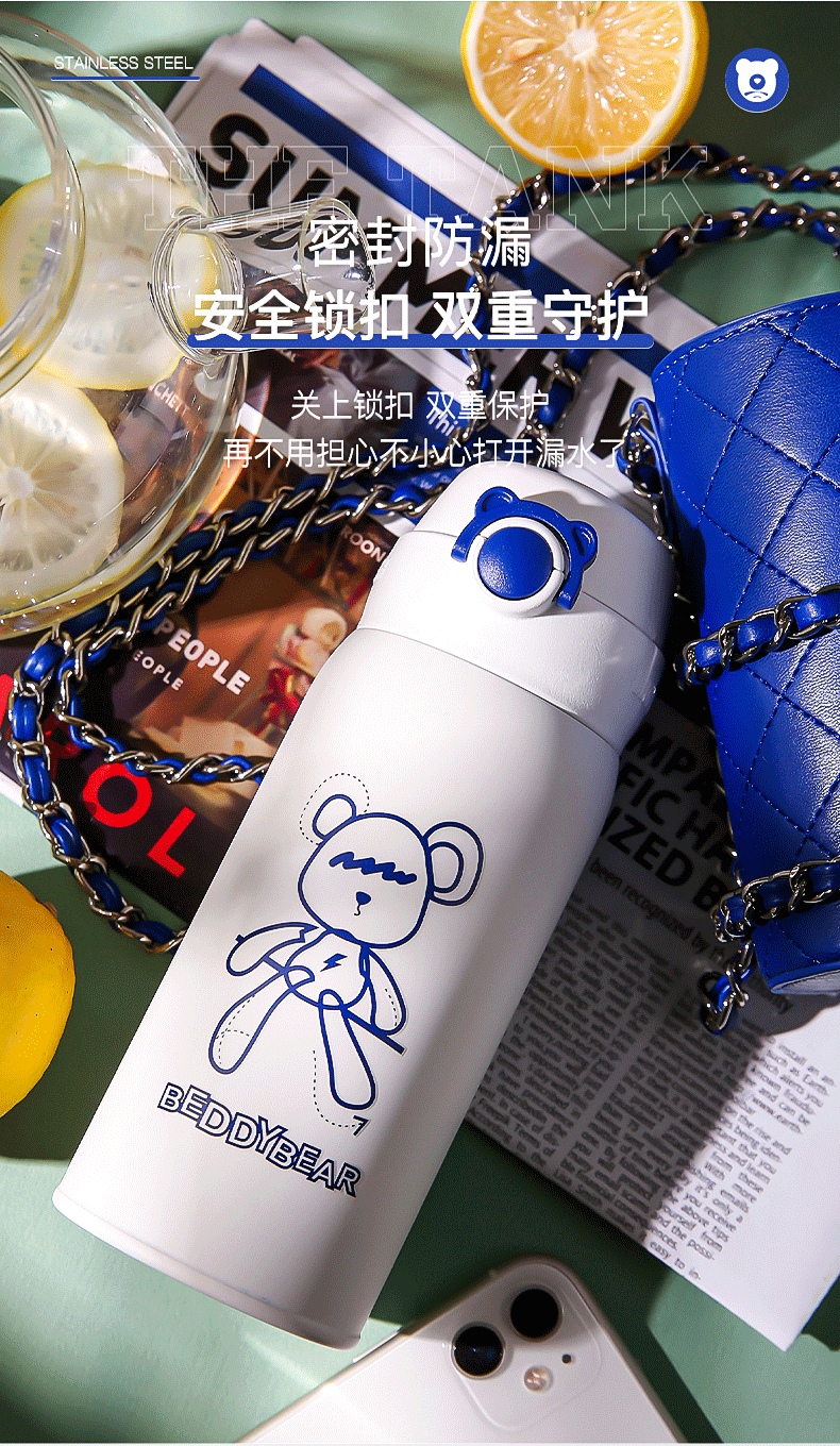 杯具熊短款弹跳保温杯克莱因潮偶款运动水壶BJX