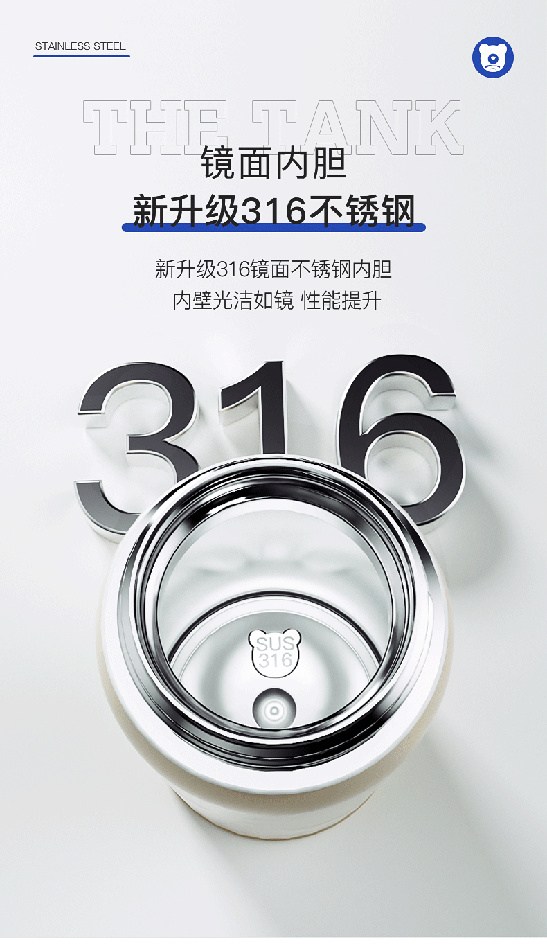 杯具熊成人水杯316不锈钢内胆保冷保温杯简约少女风随手杯直饮杯