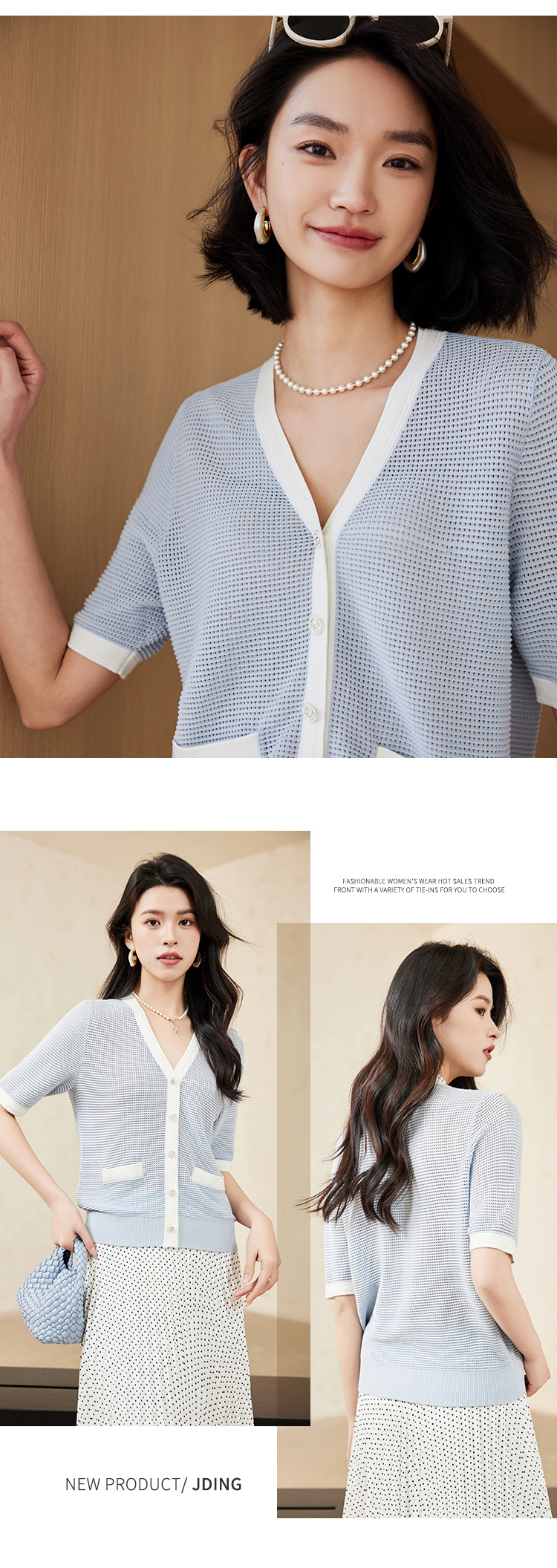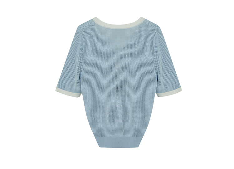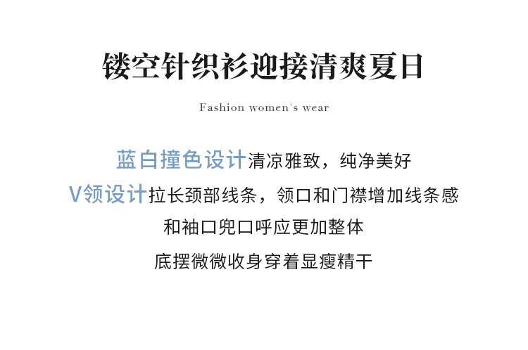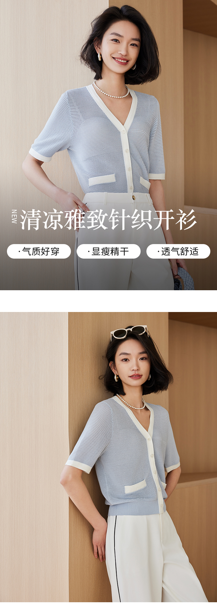 【商场同款】CJKJ426 “ 清爽网格蓝色开衫” 廓形放松且干练 包容身材同时显瘦显精致。白蓝撞色设计清爽雅致 超细纱线集合精致针法舒适富有肌理感