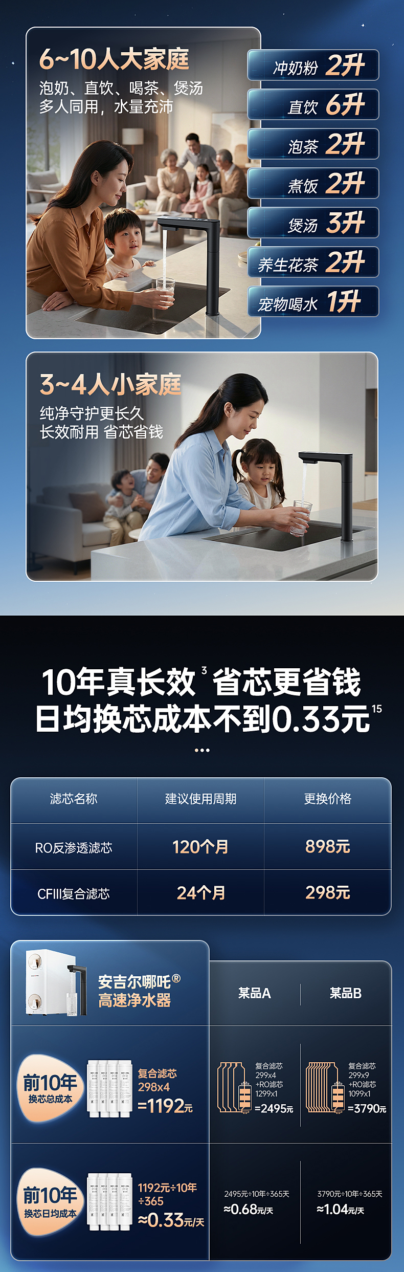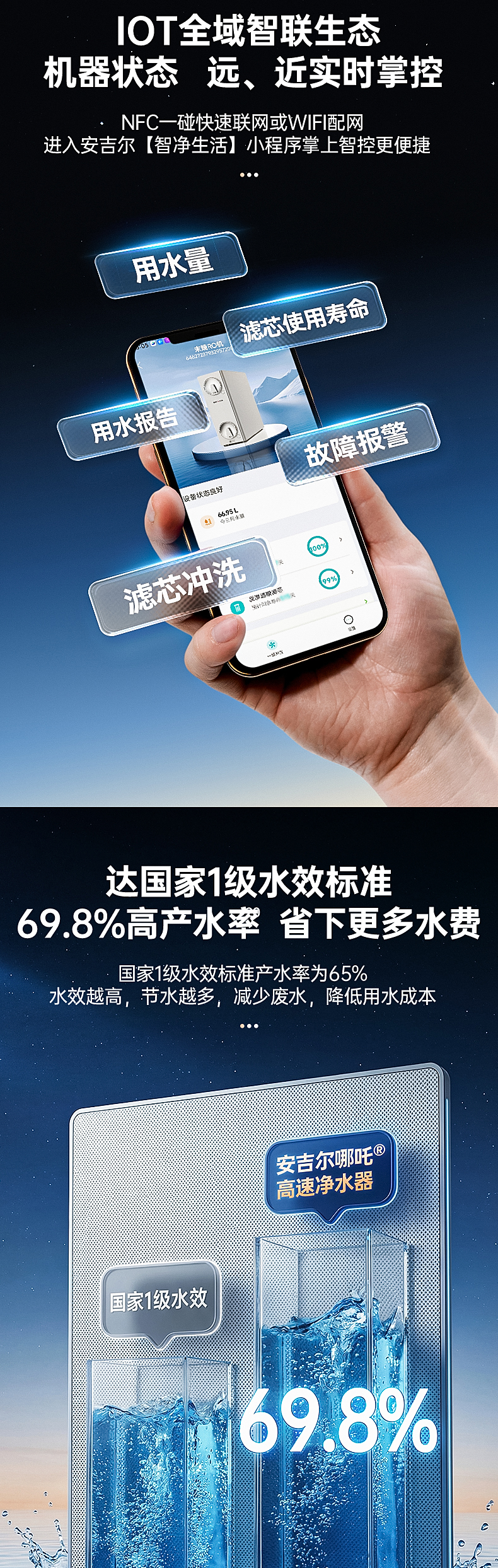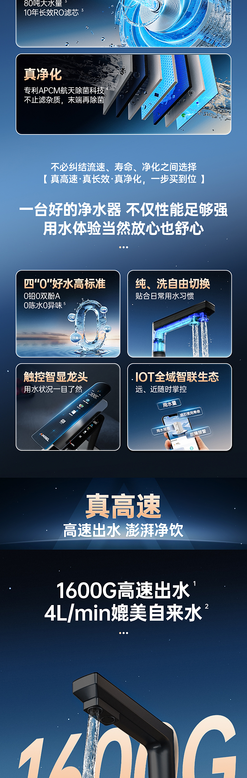 安吉尔哪吒高速净水器1600G家用净水器J3779-ROC216