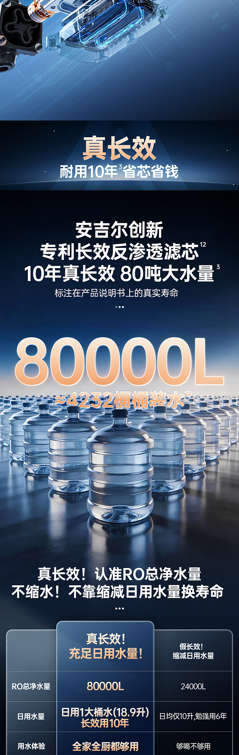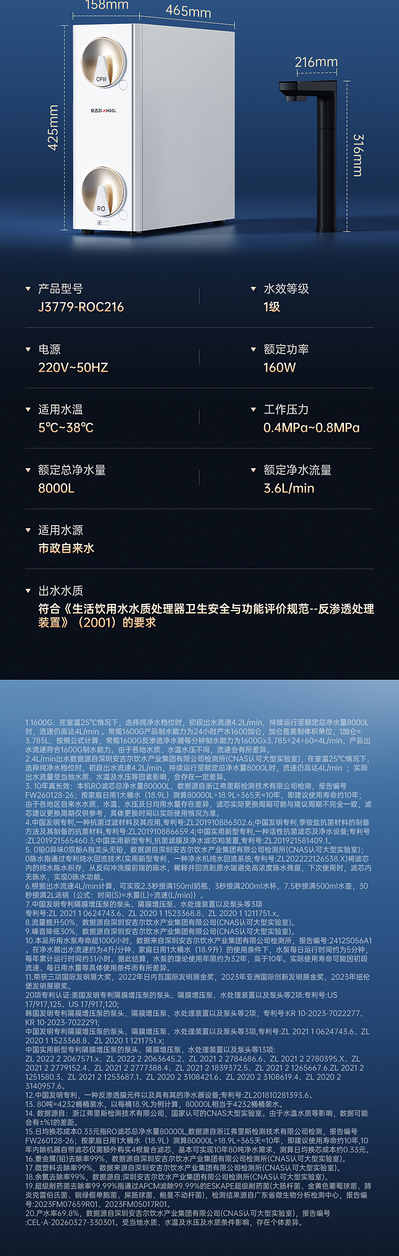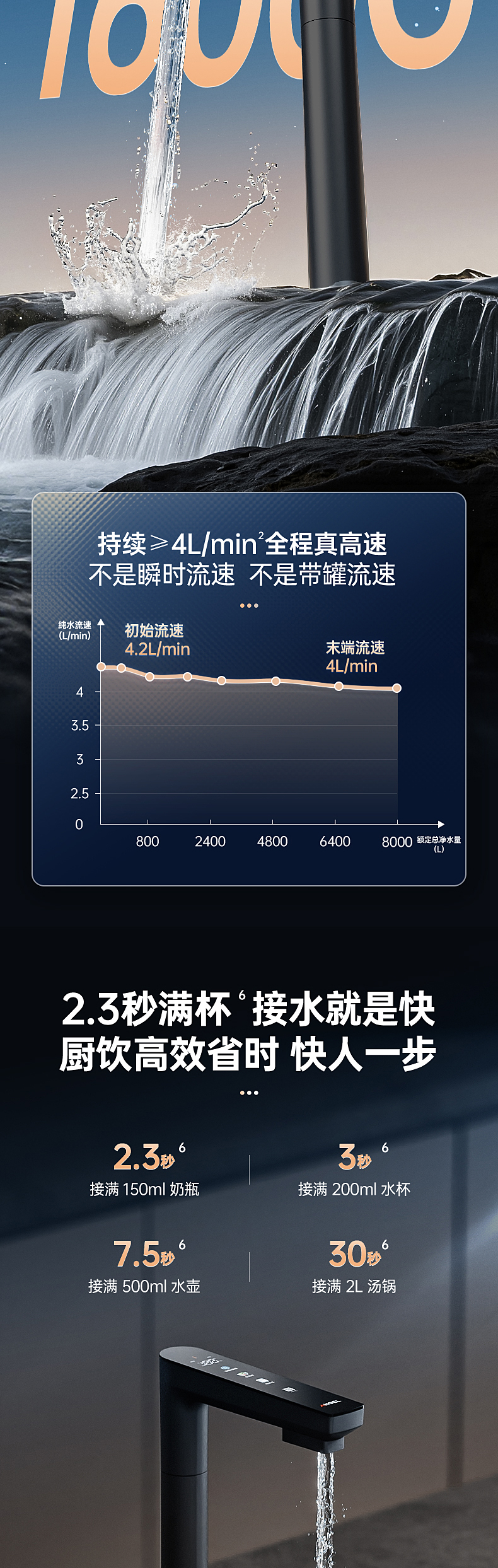 安吉尔哪吒高速净水器1600G家用净水器J3779-ROC216