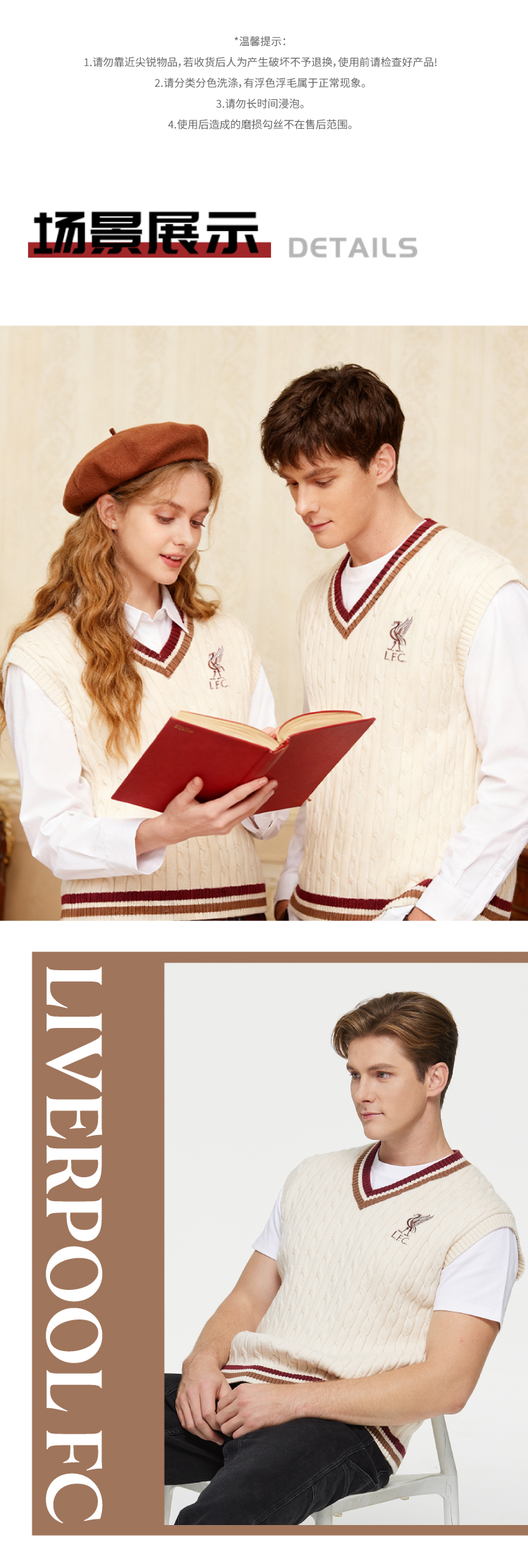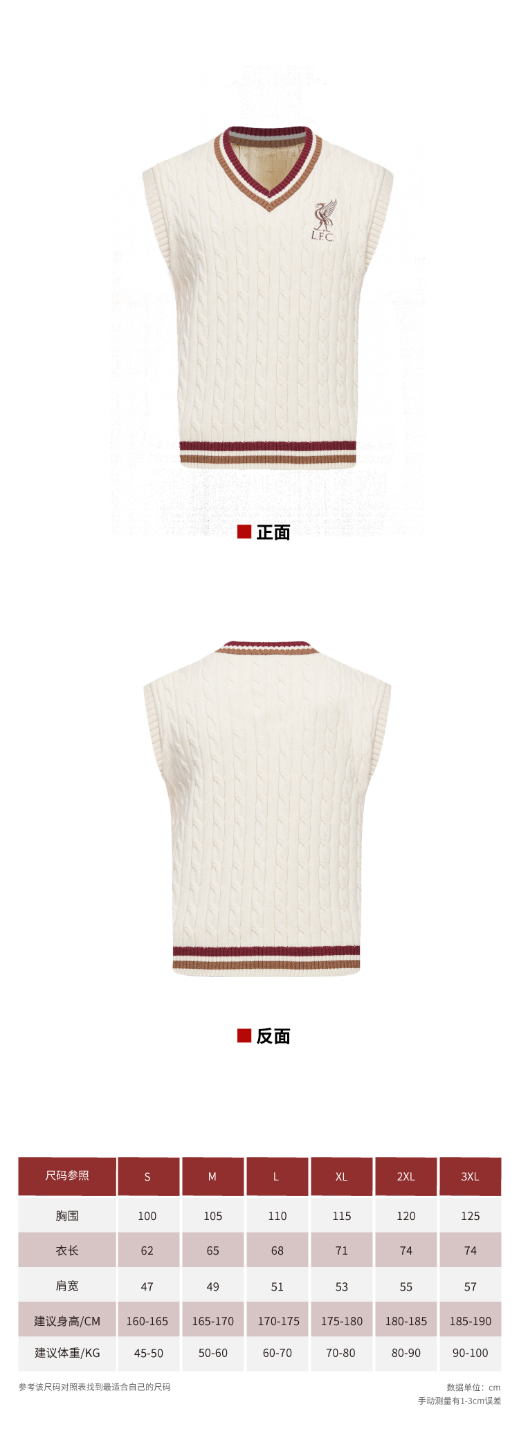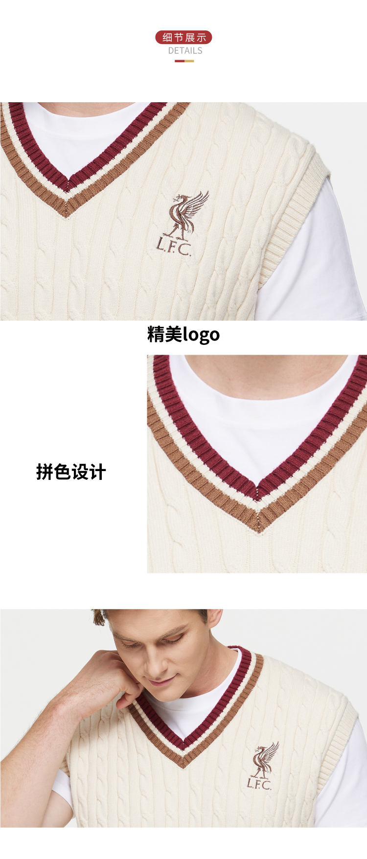 【官方正版】利物浦俱乐部 | 秋季新款V领马甲白色针织背心
