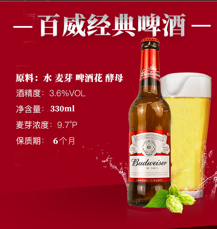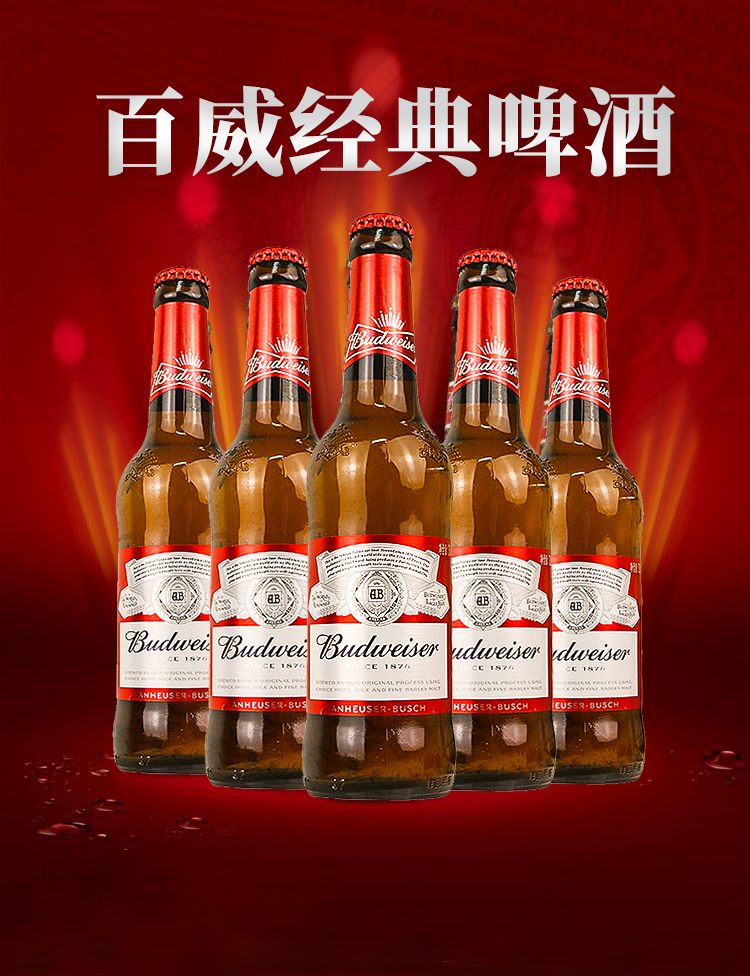 Budweiser百威瓶装啤酒美式拉格经典醇正330ml