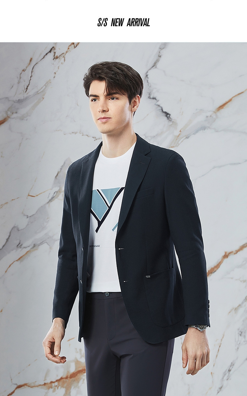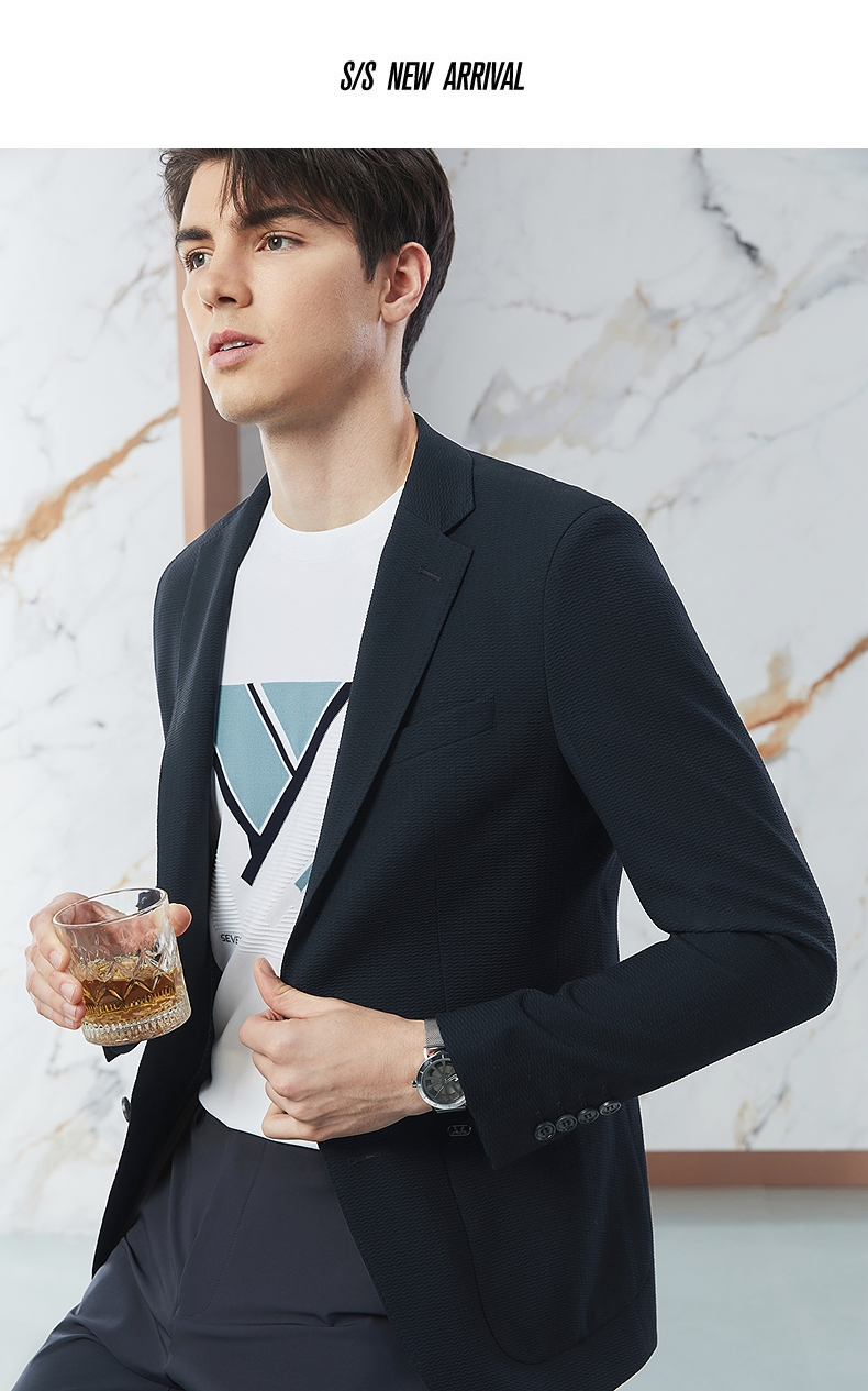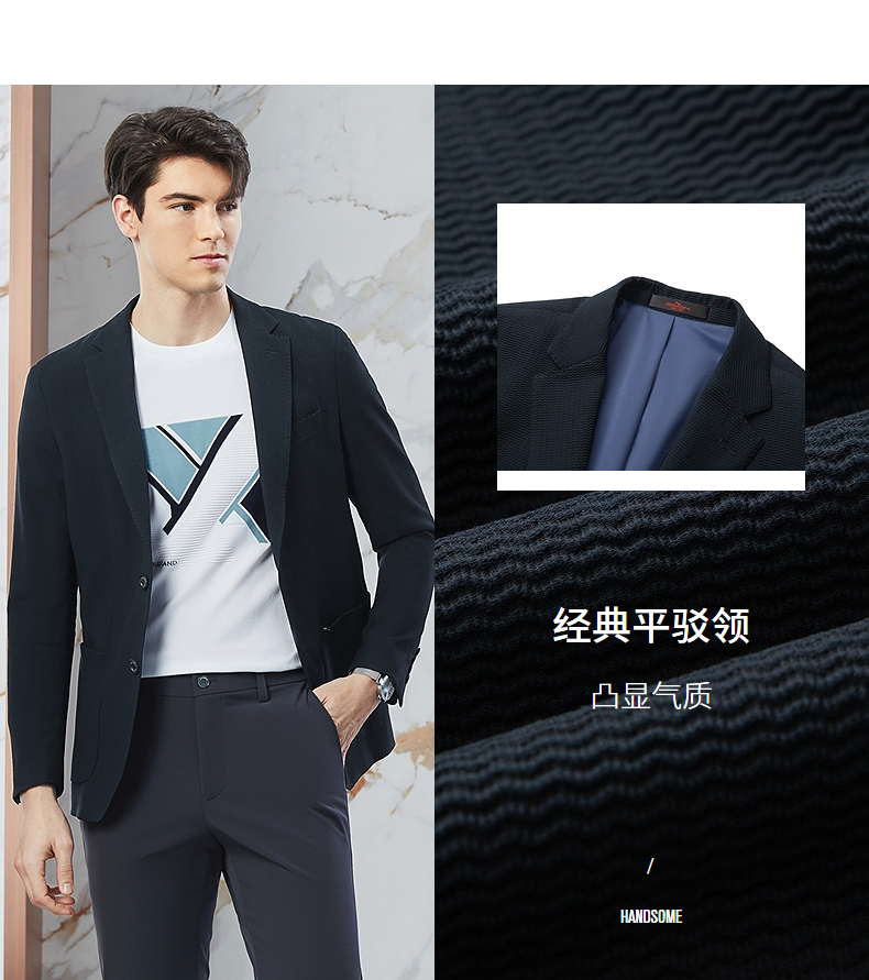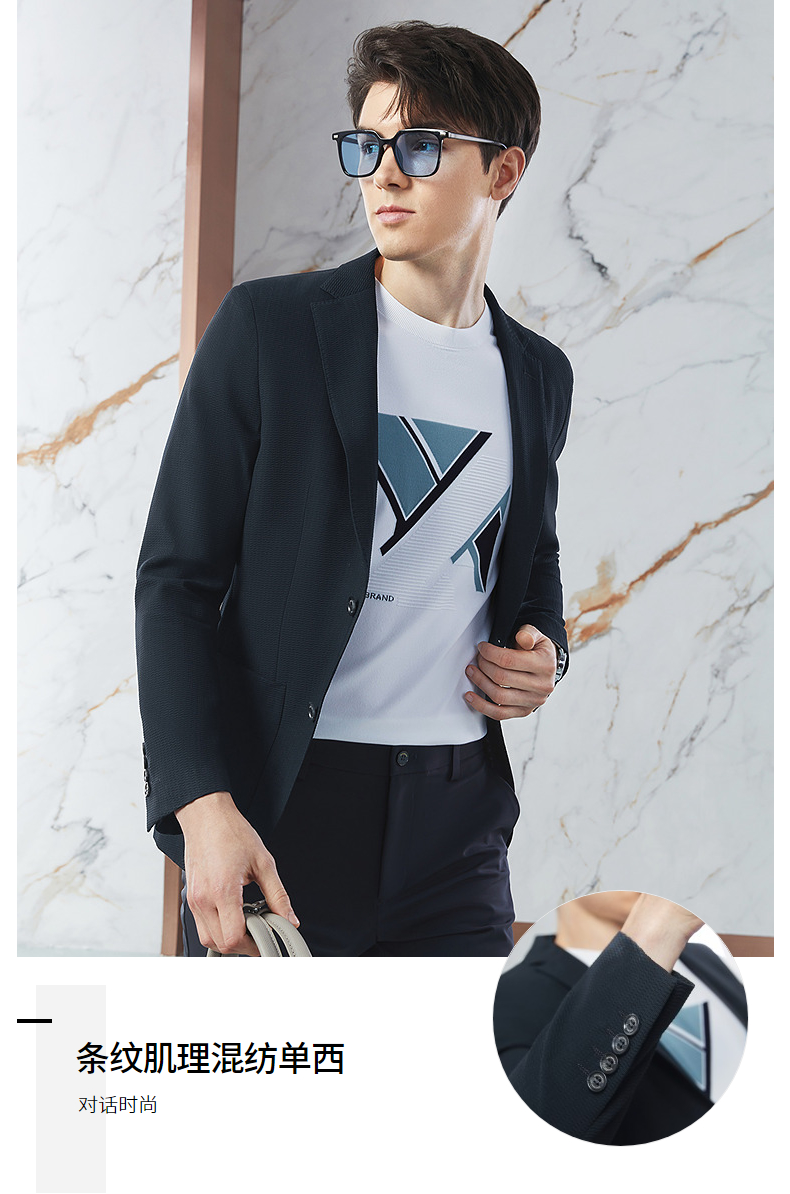 【高端系列】柒牌男装西装男春季新款平驳领商务休闲单西条纹西服 126C70990