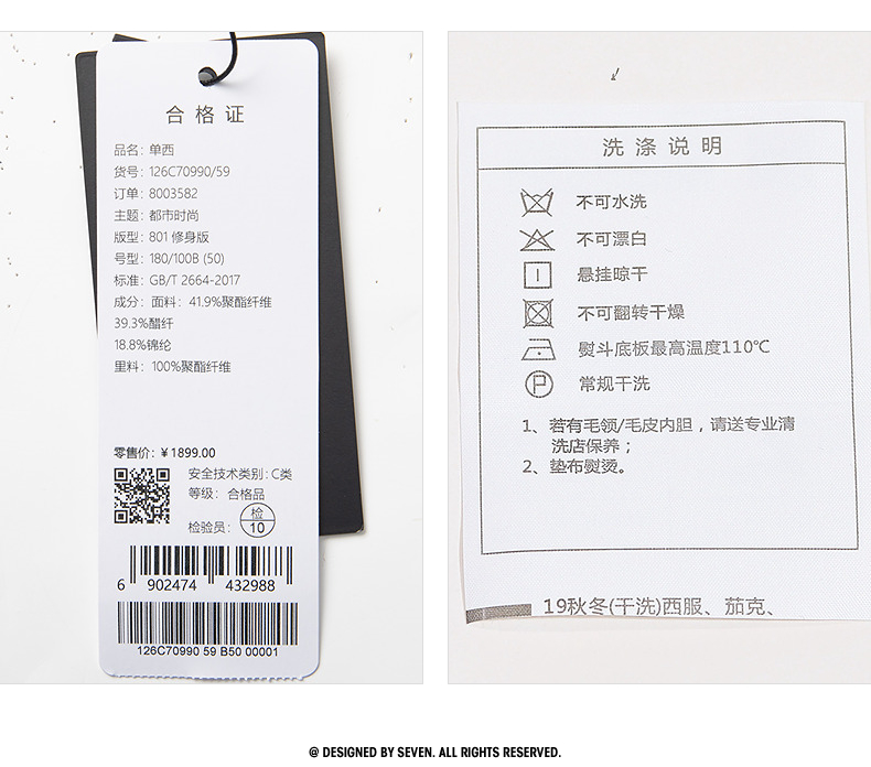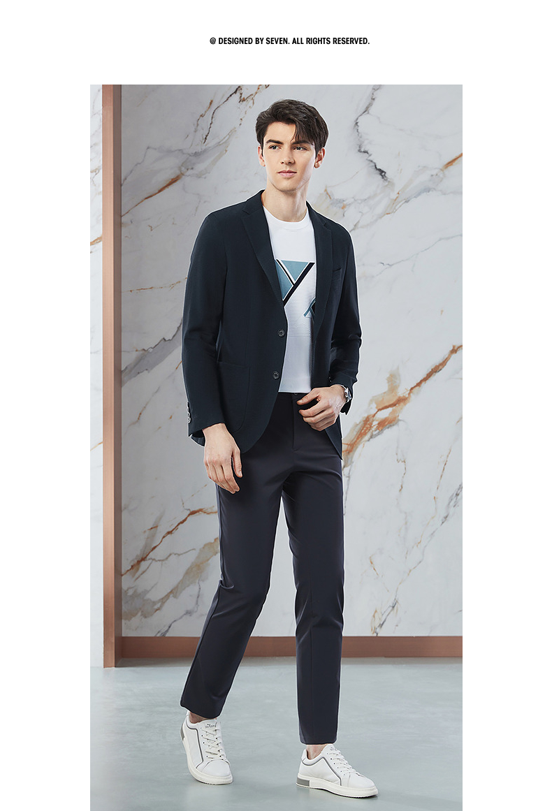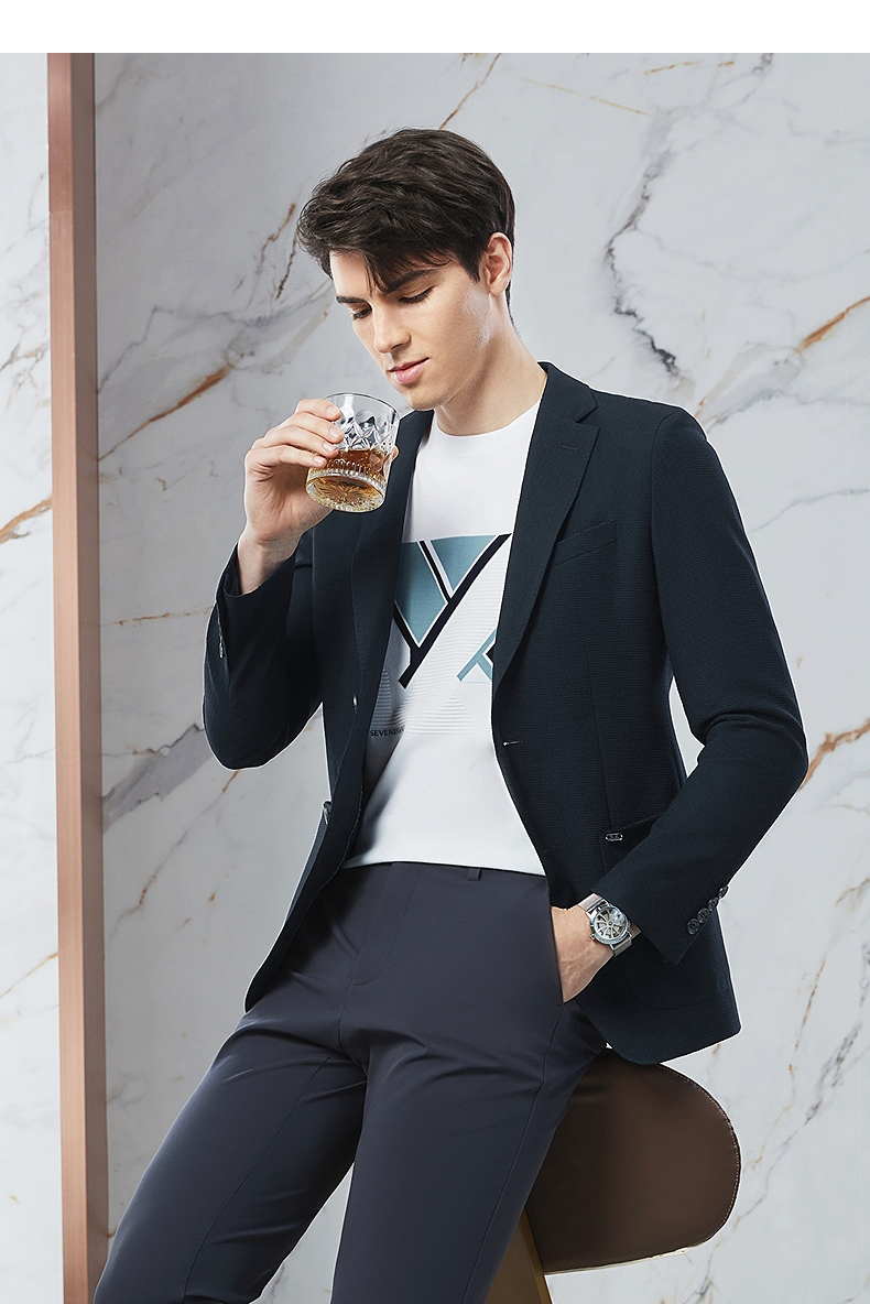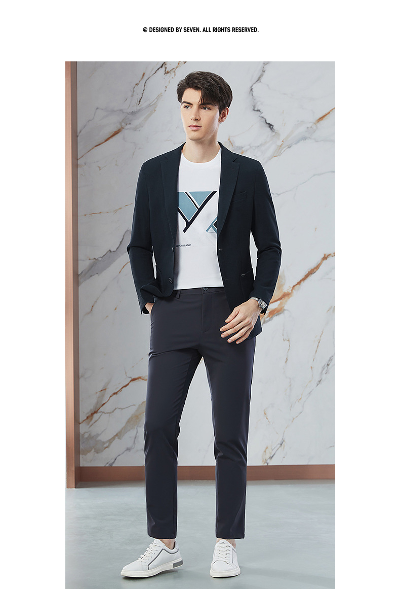 【高端系列】柒牌男装西装男春季新款平驳领商务休闲单西条纹西服 126C70990