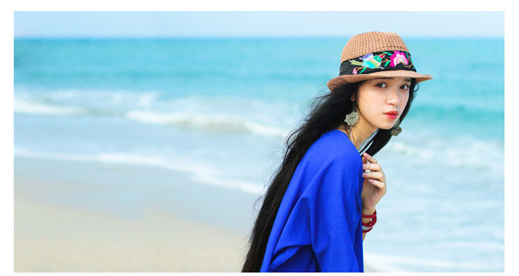 【听海】原创编织帽,手工刺绣遮阳沙滩帽YMF-1008