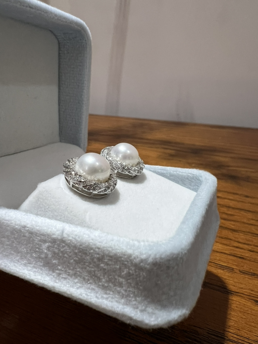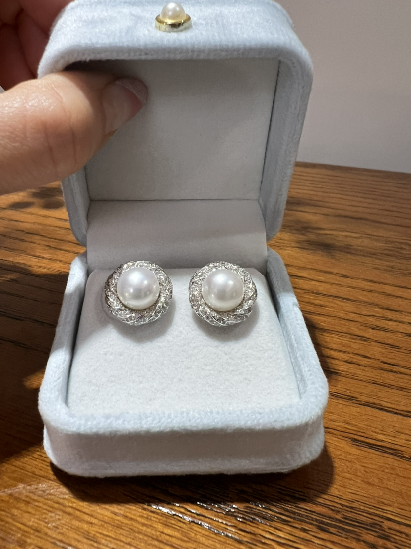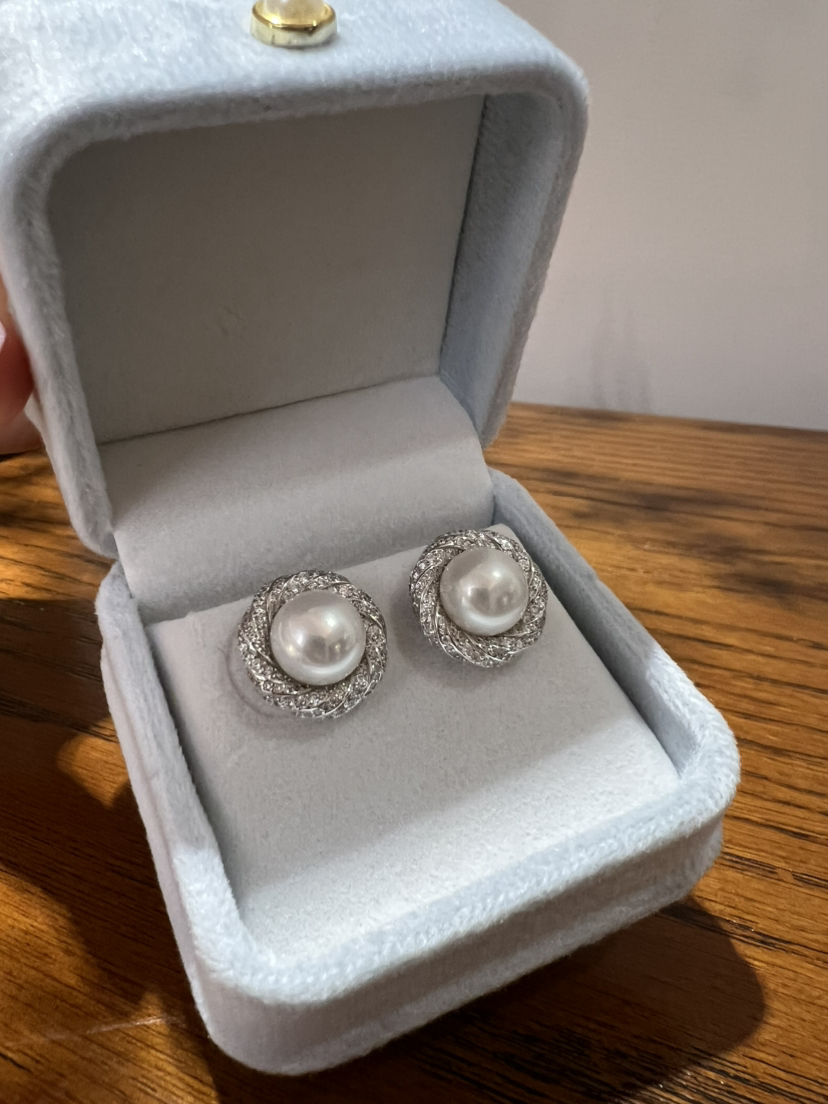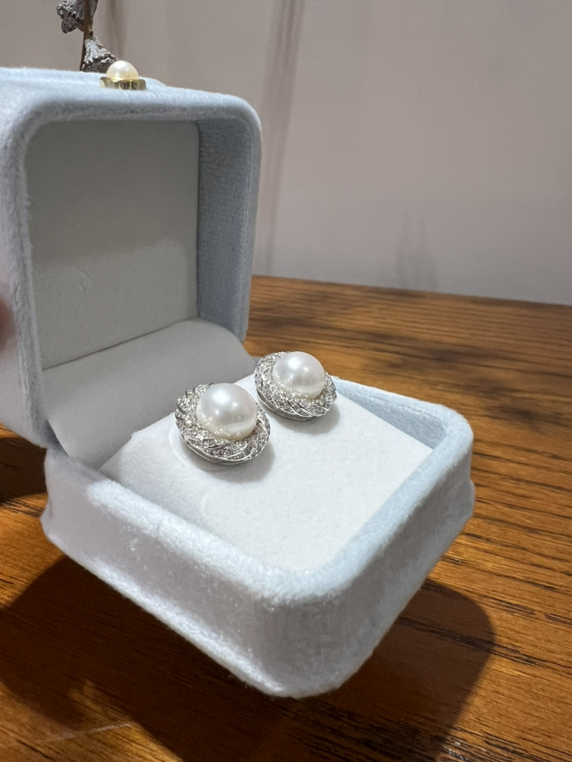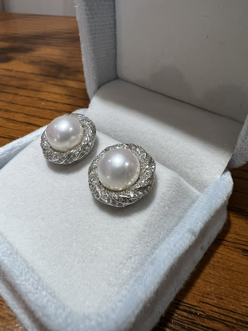 47-4 母亲节特惠 10-11mm 极光无瑕馒头珠 唯爱 重工珍珠耳钉