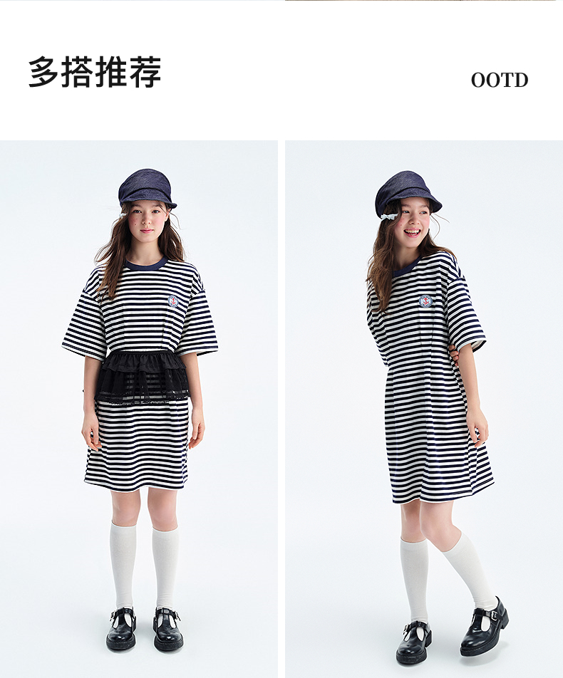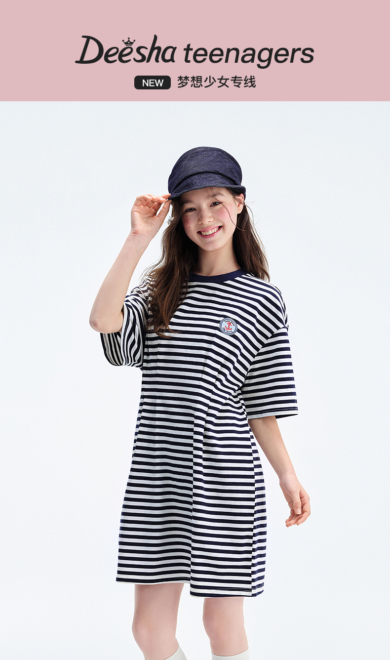 笛莎Deesha青少年女童连衣裙2025夏季女童T恤连衣裙