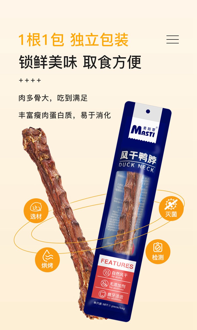 麦斯蒂风干鸭脖单支装 无添加 狗狗洁齿骨头 耐咬 网红骨头