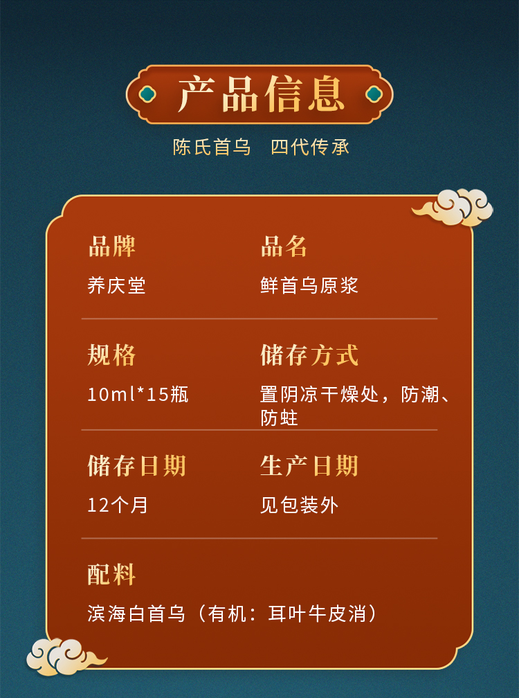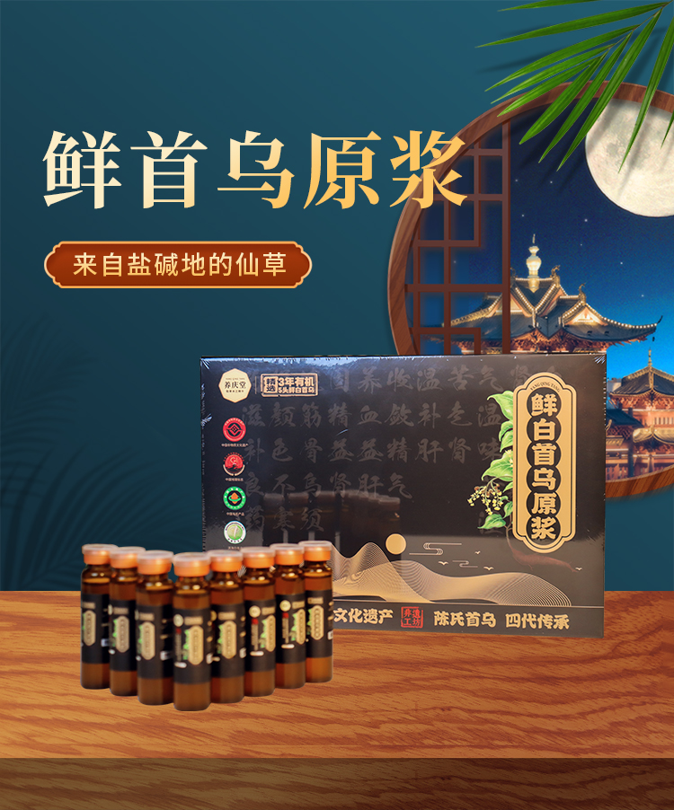 养庆堂 有机鲜白首乌原浆 3年有机5头鲜白首乌 非遗文化遗产 地标产品 150ml(10mlX15瓶)