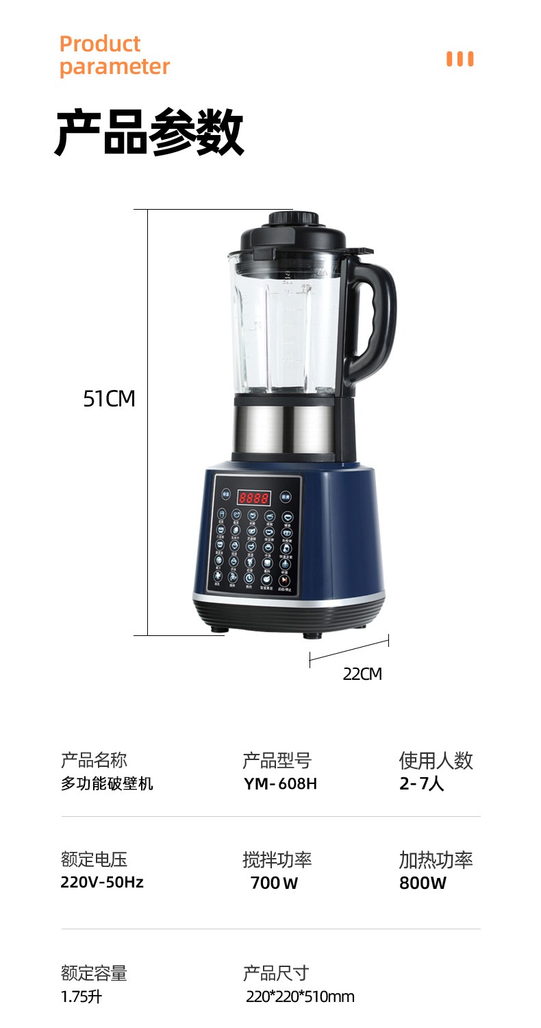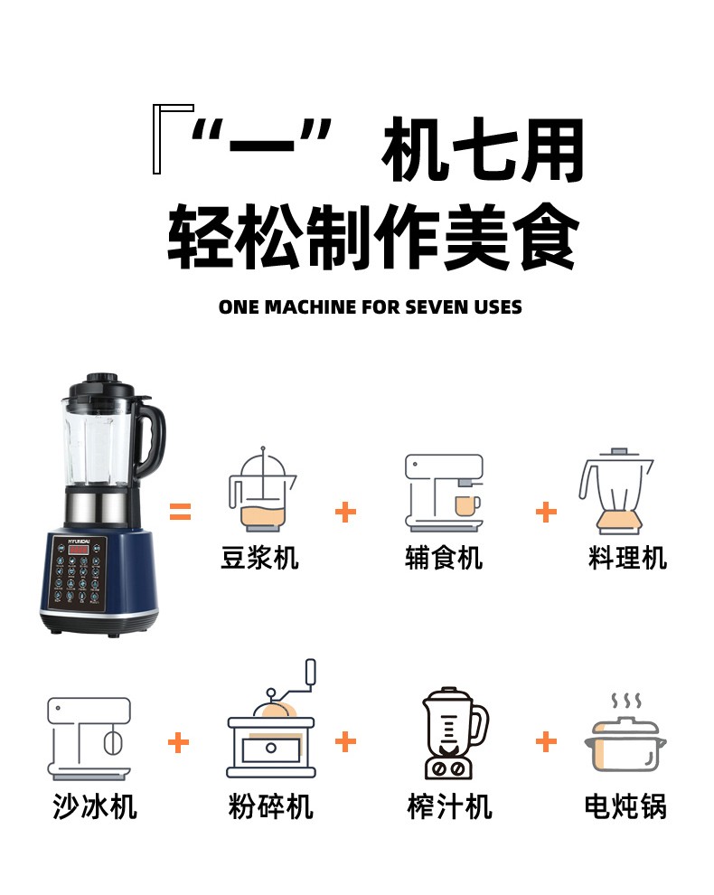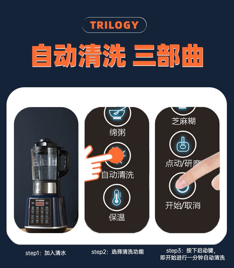 HYUDANI韩国现代破壁机 家用多功能加热破壁料理机果汁机早餐机辅食机绞肉馅机榨汁机智能豆浆机