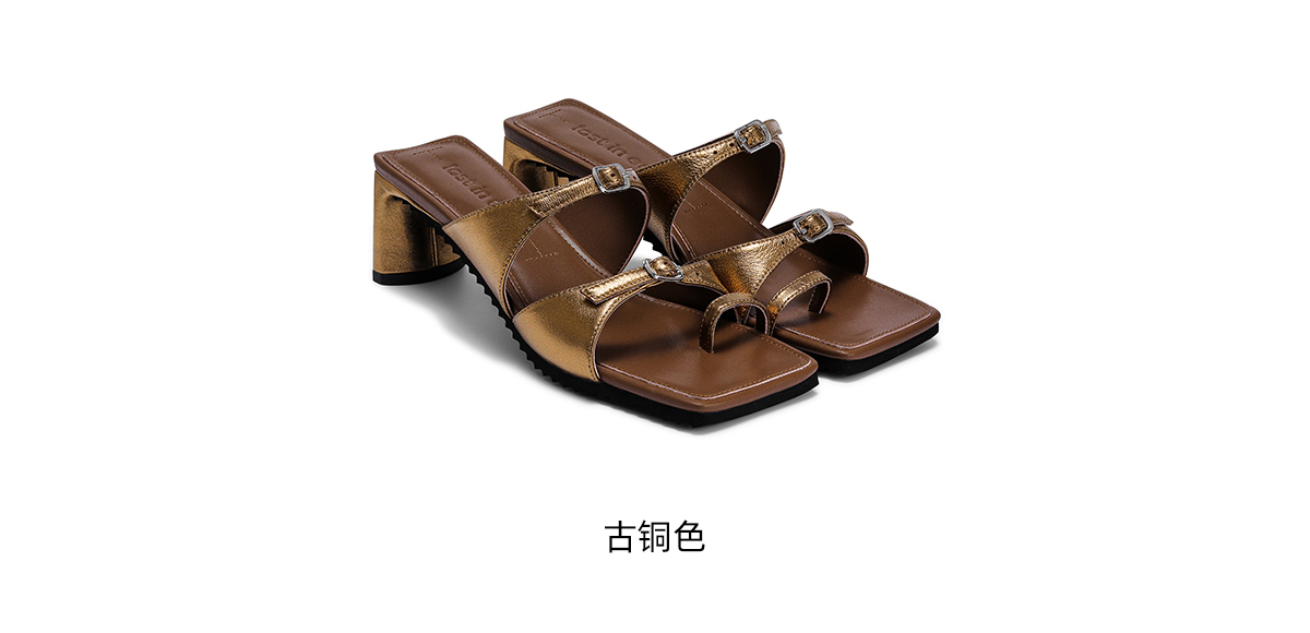 [断码]lost in echo设计师品牌小众休闲时尚方头双扣带低跟小高跟凉拖女