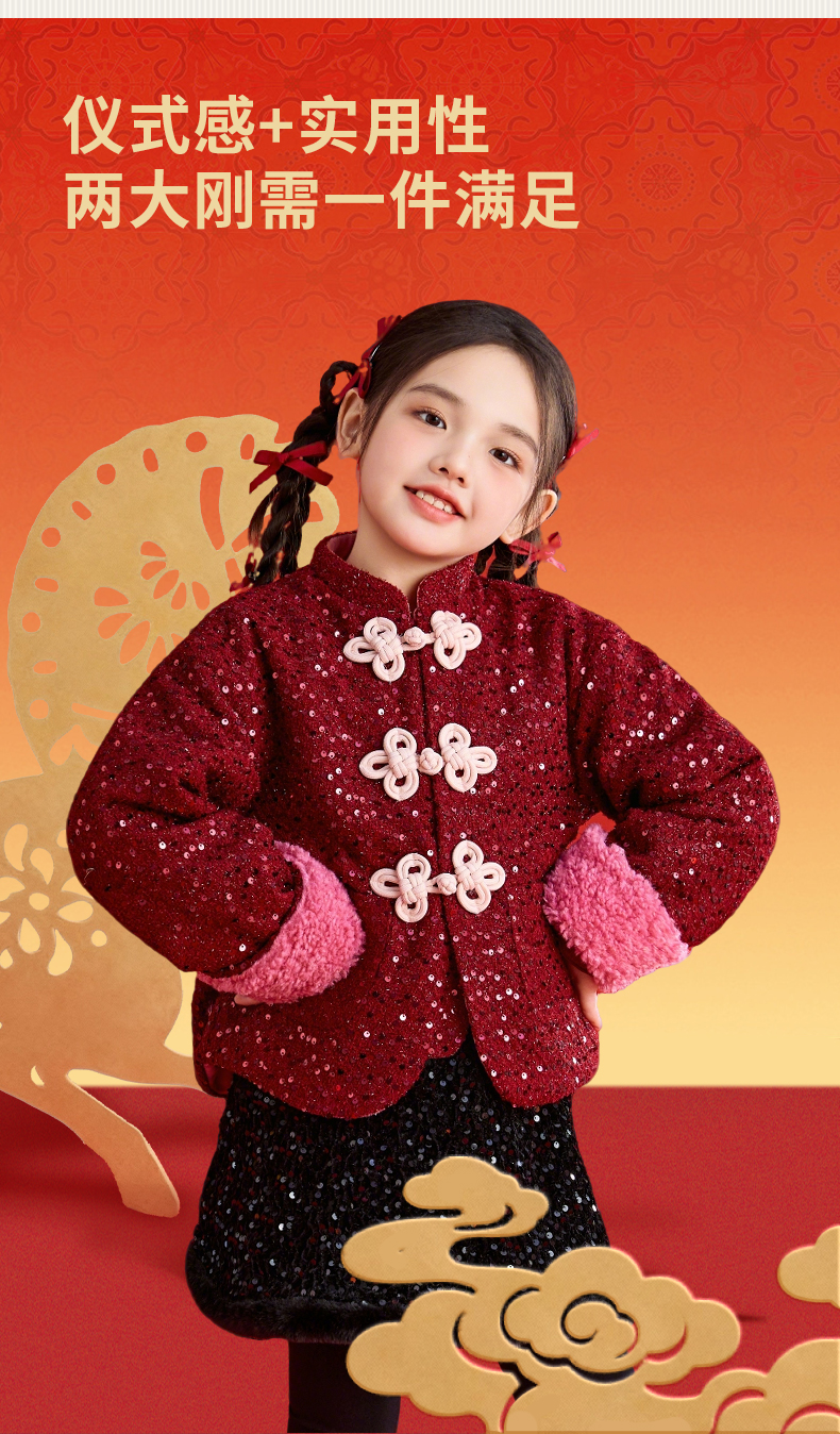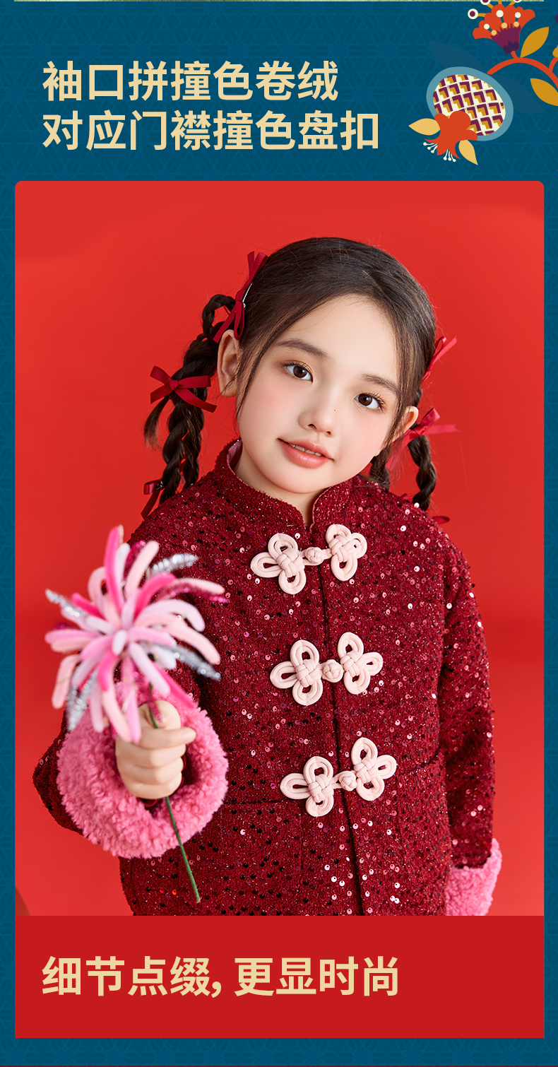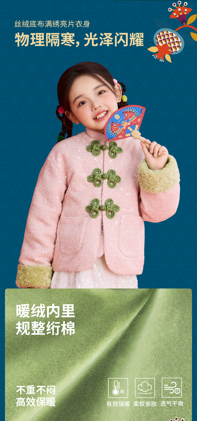 【年衣品牌团】年衣童装儿童中式唐装外套冬季新品女童加棉摩登时代唐装 1207