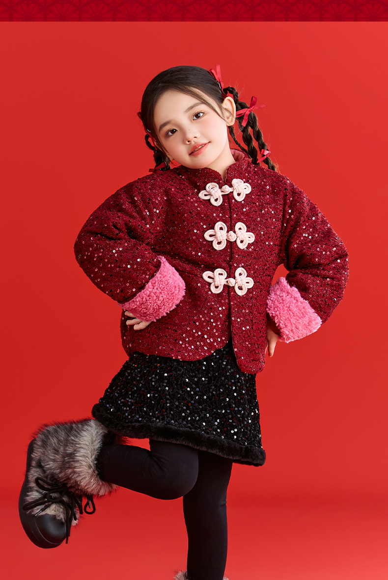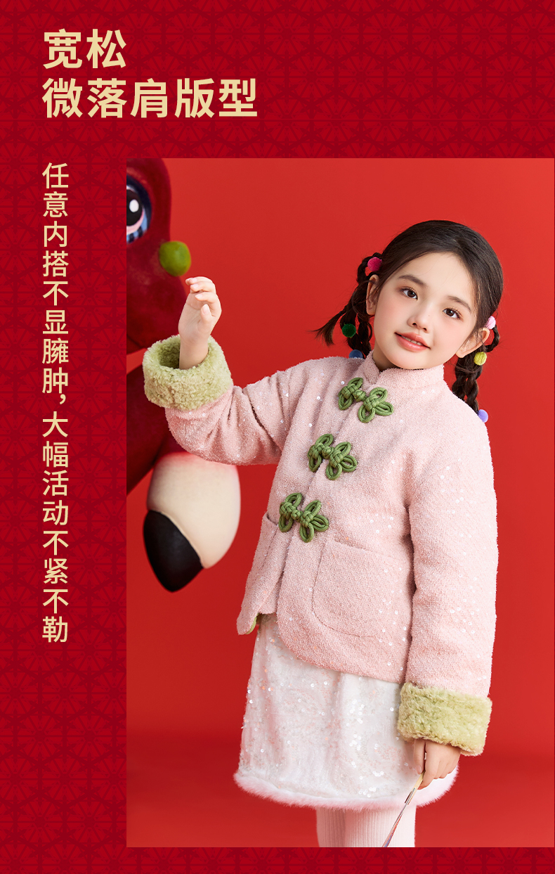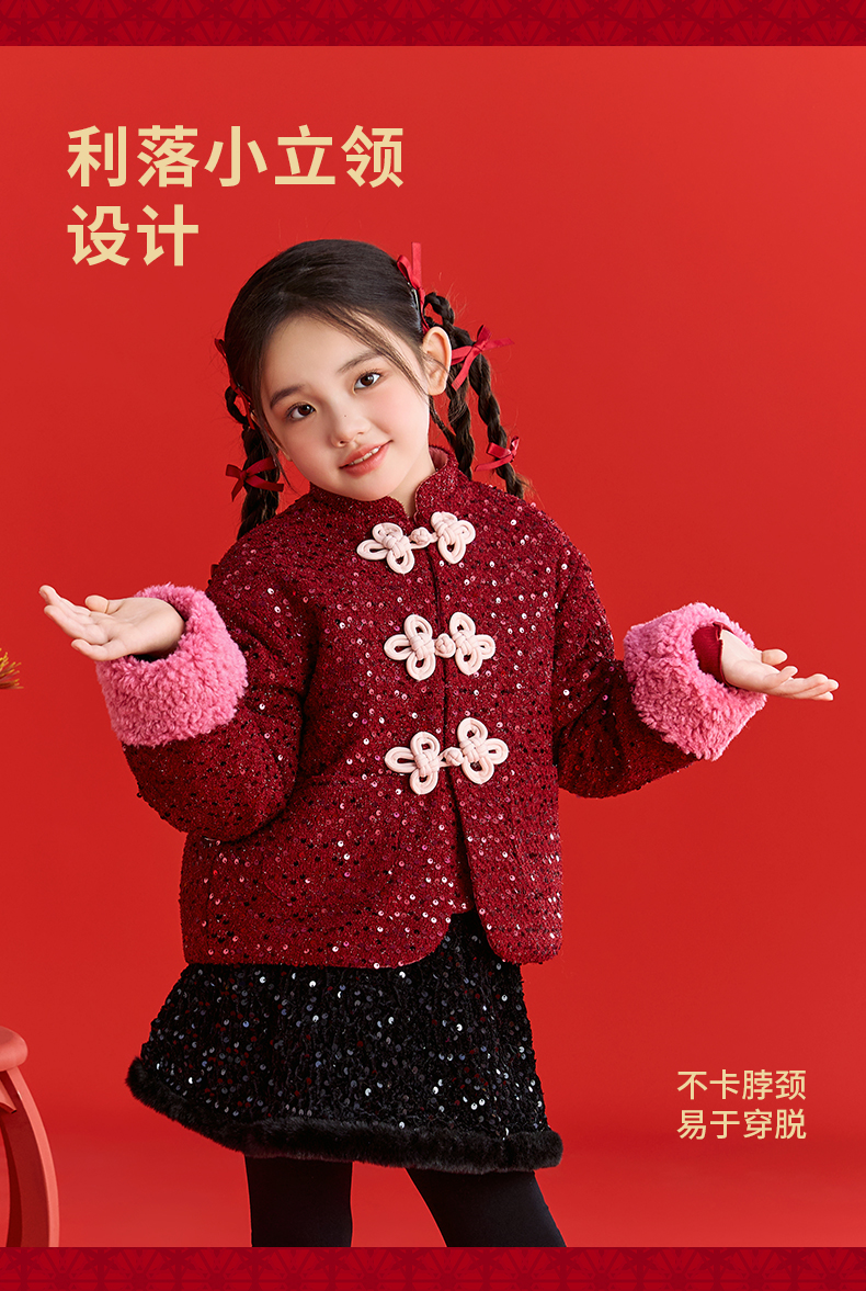【年衣品牌团】年衣童装儿童中式唐装外套冬季新品女童加棉摩登时代唐装 1207