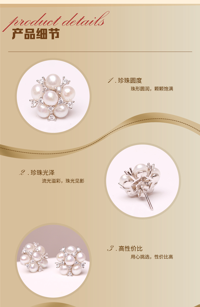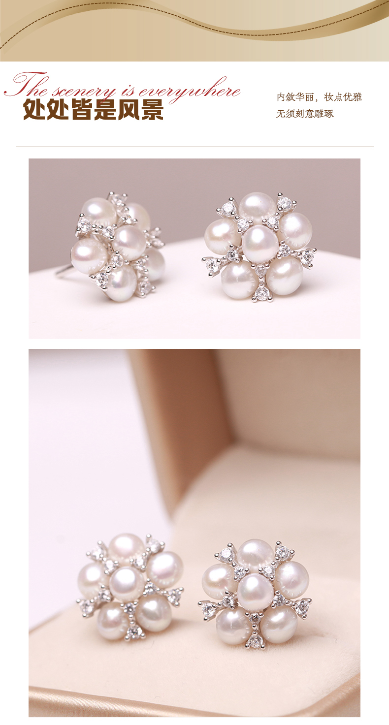 美裕 雪花925银淡水珍珠耳钉3-4mm 107850