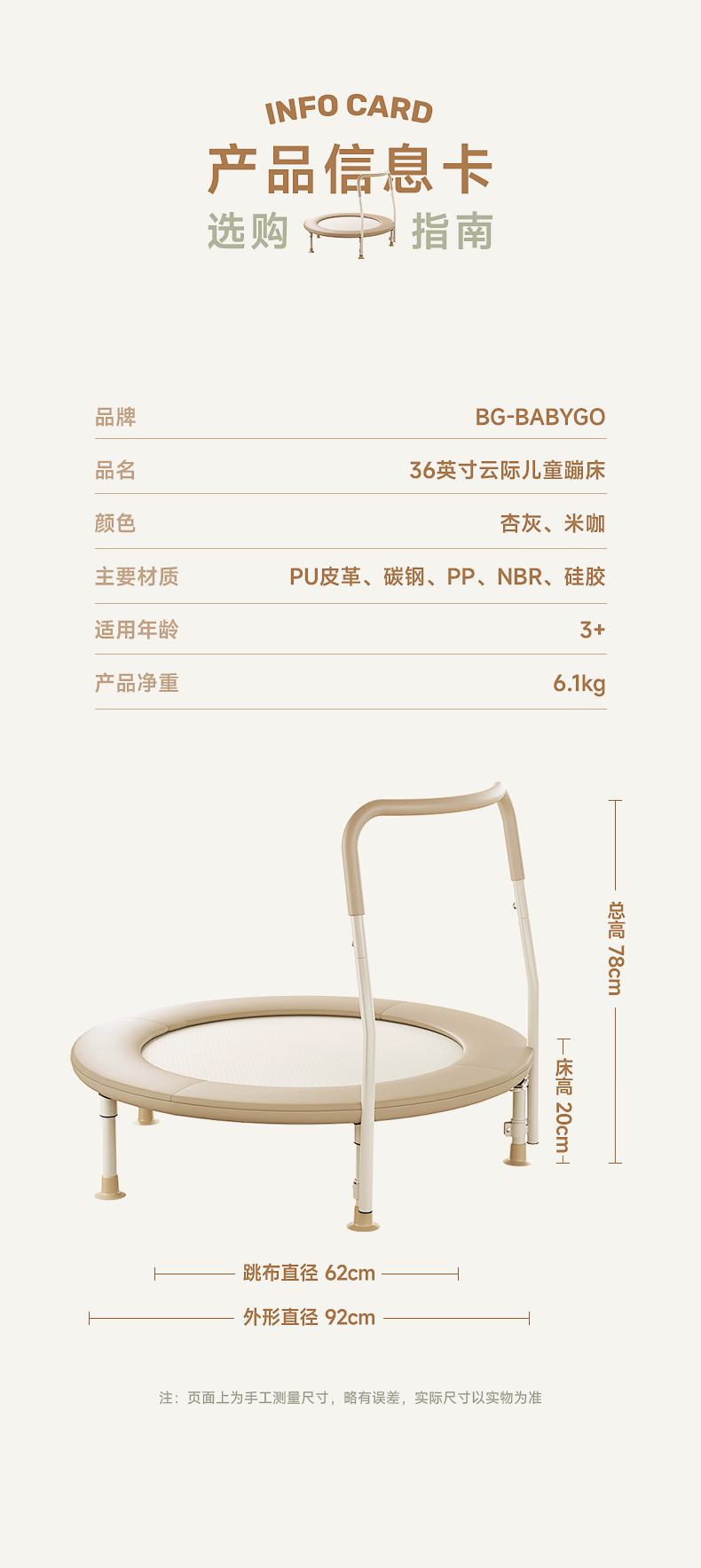 BABYGO蹦蹦床家用室内家庭弹跳床跳床