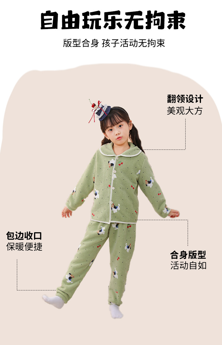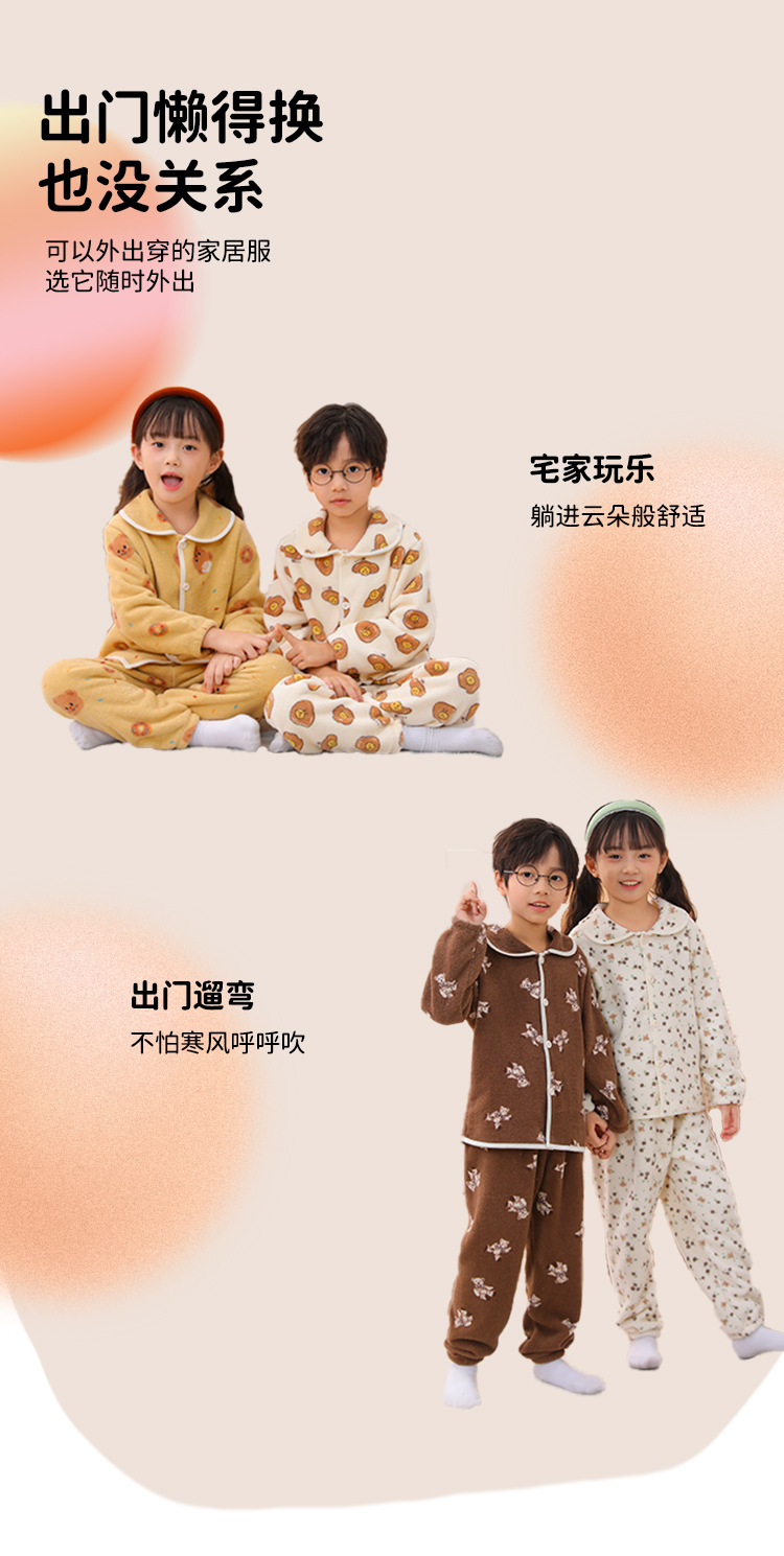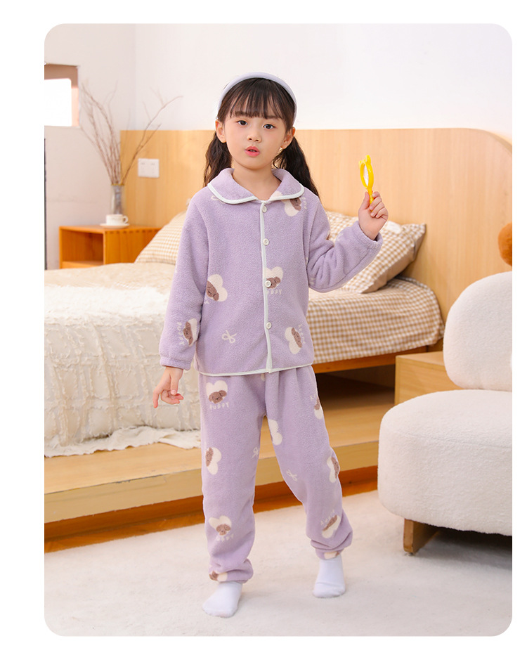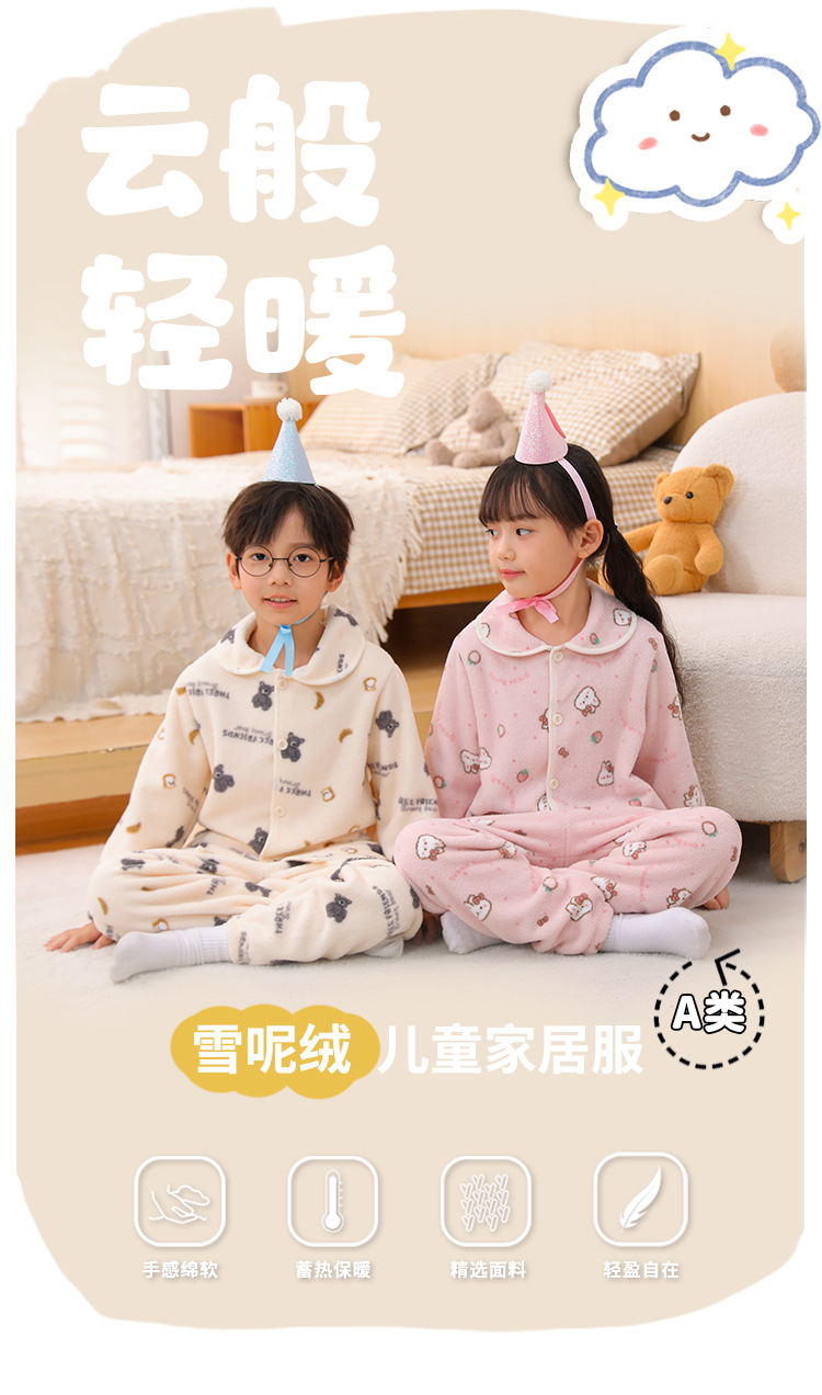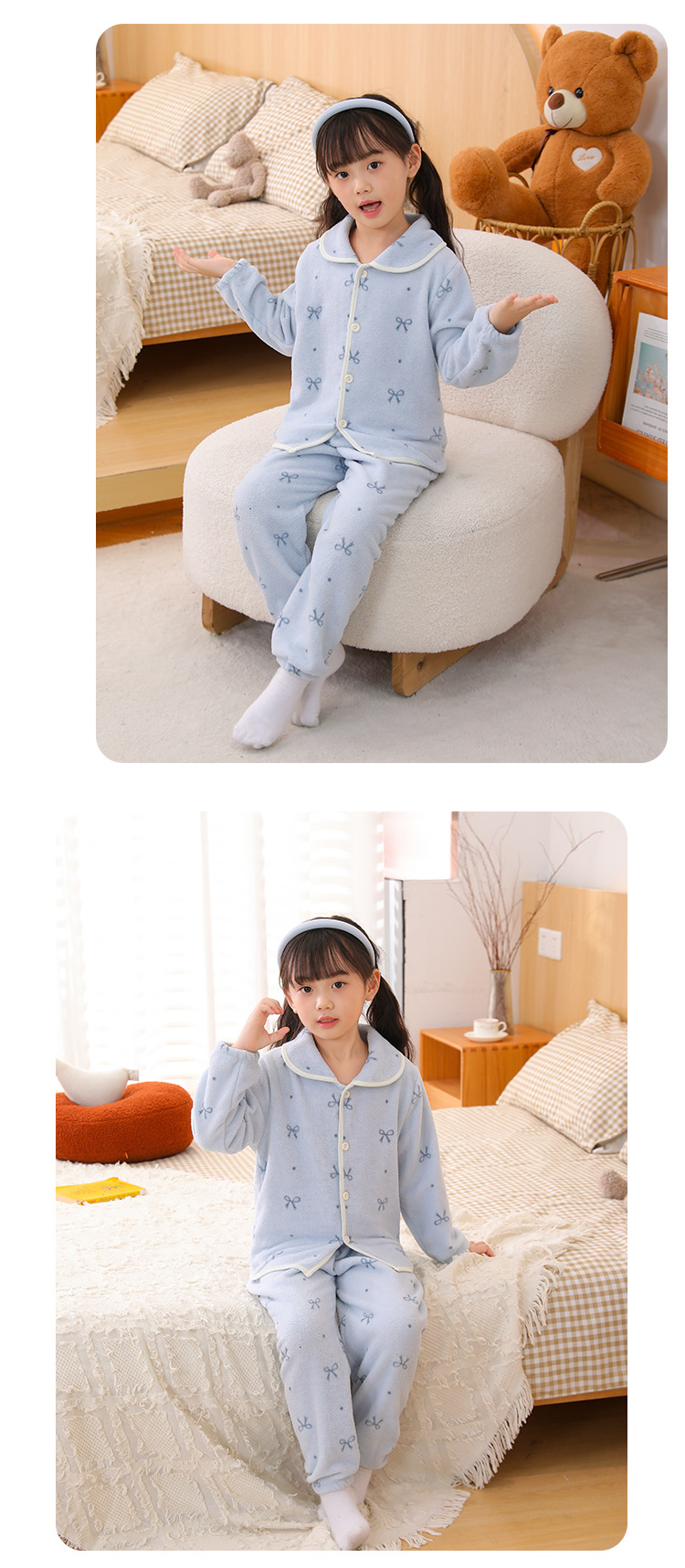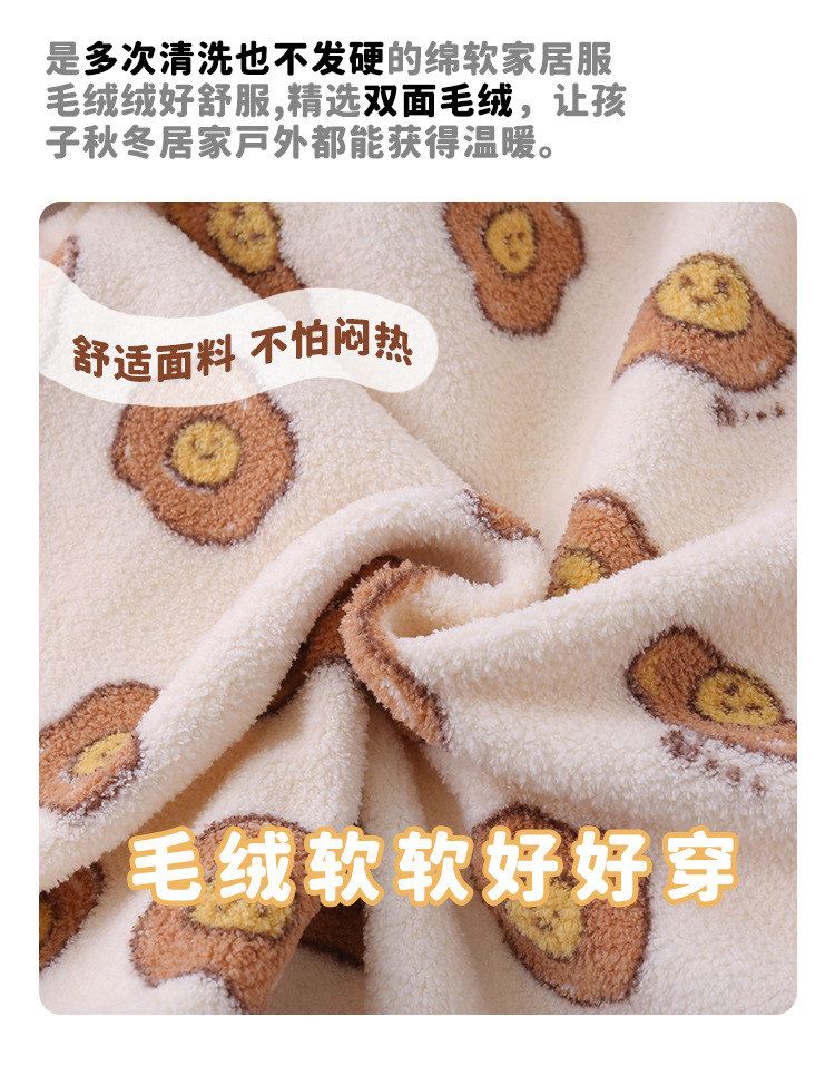 儿童雪呢绒开衫翻领家居服套装 S1065 100%
