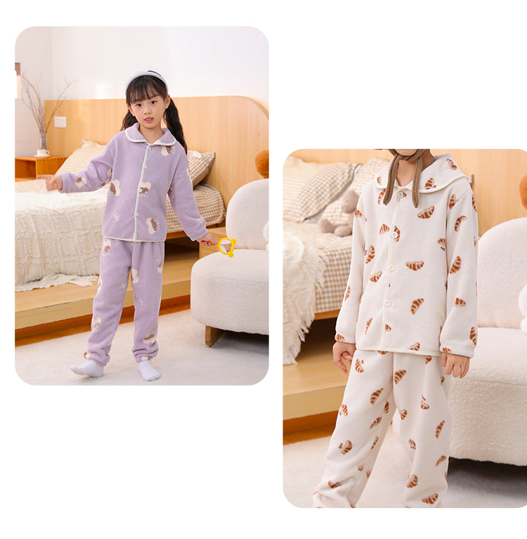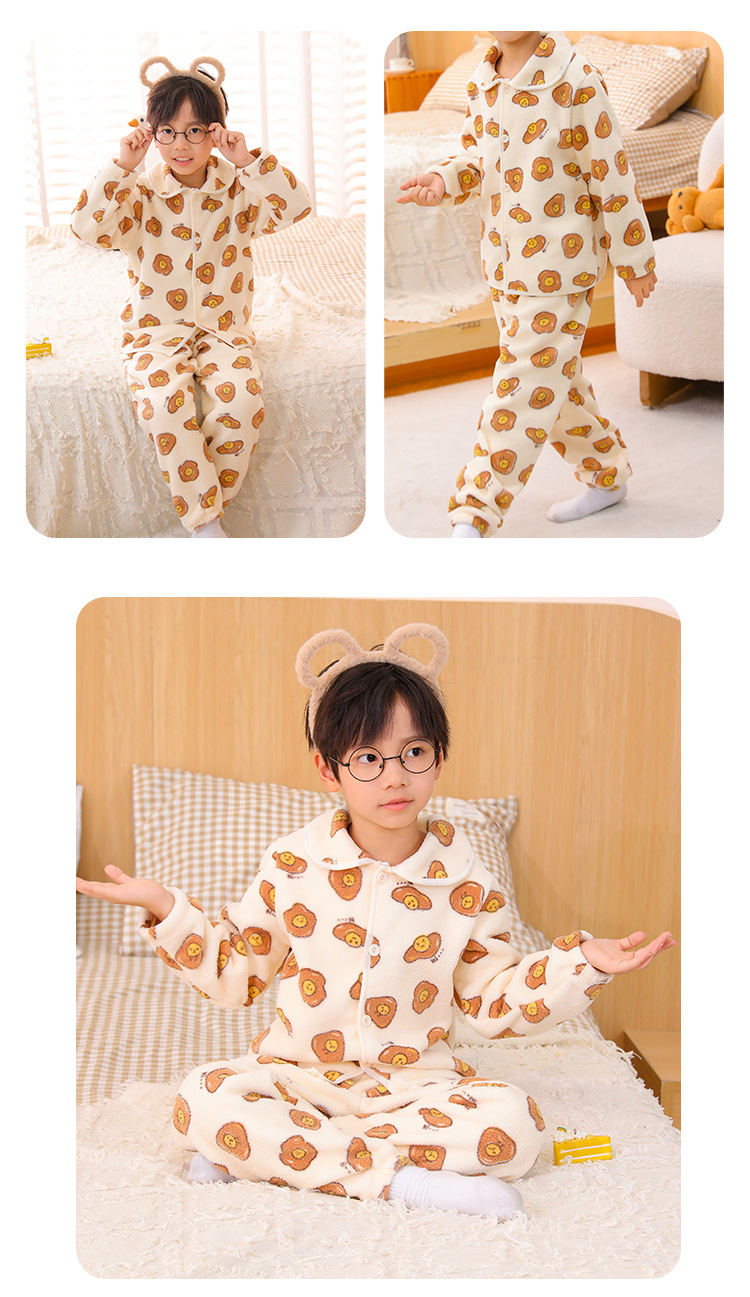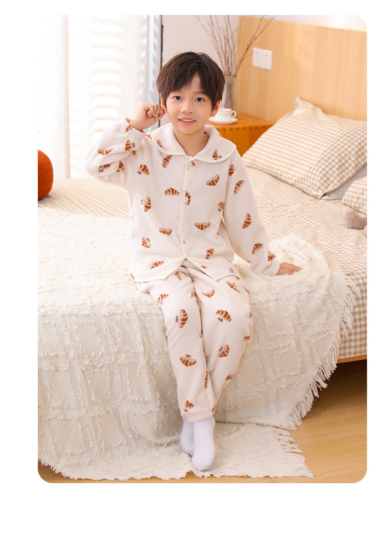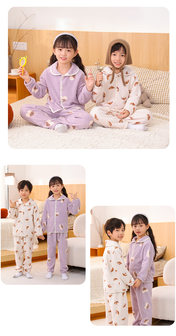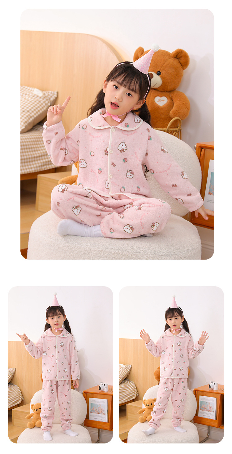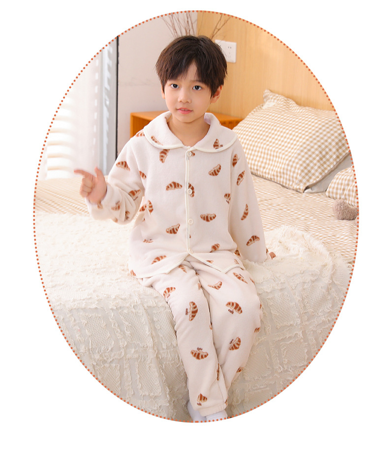 儿童雪呢绒开衫翻领家居服套装 S1065 100%