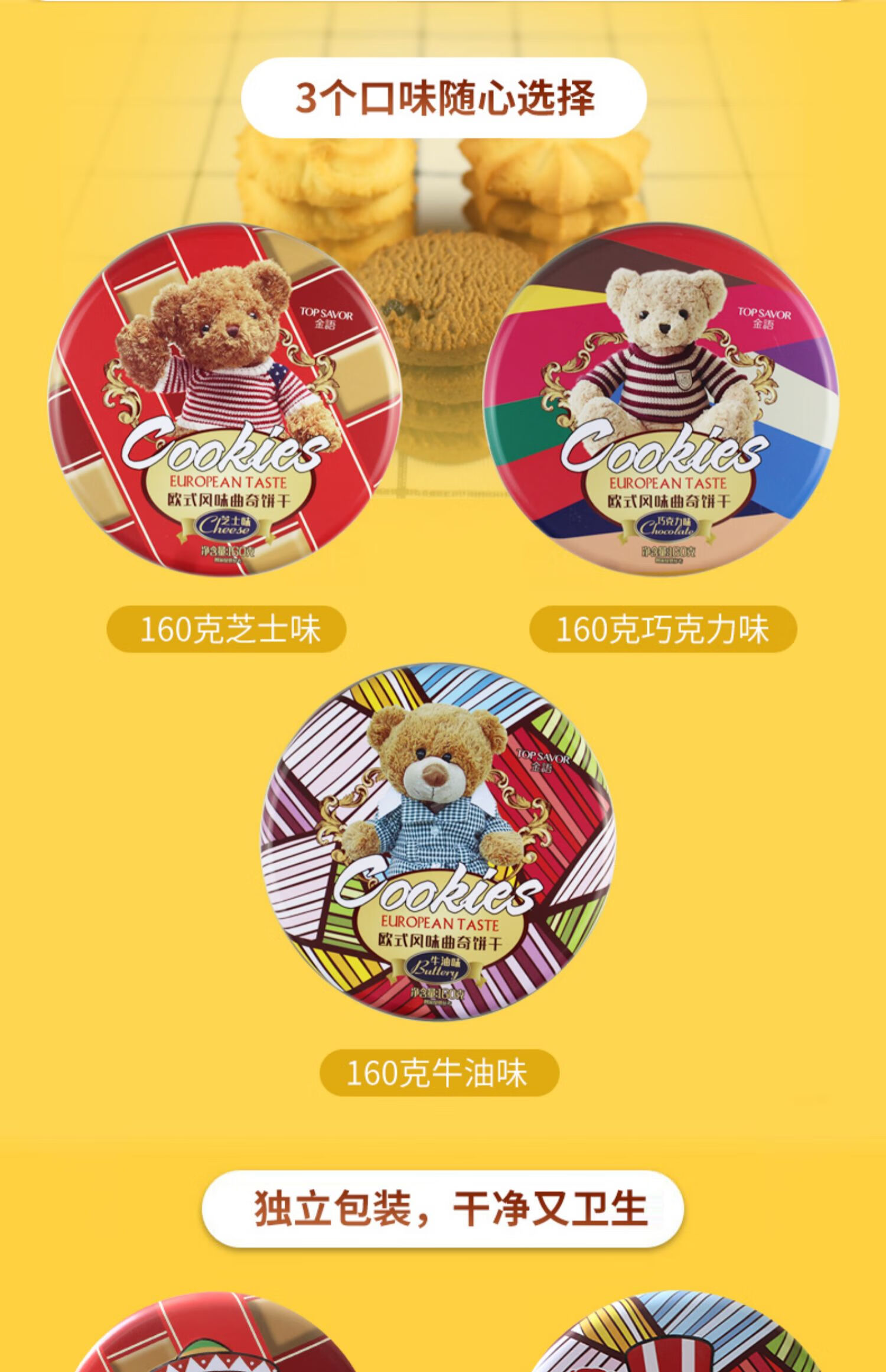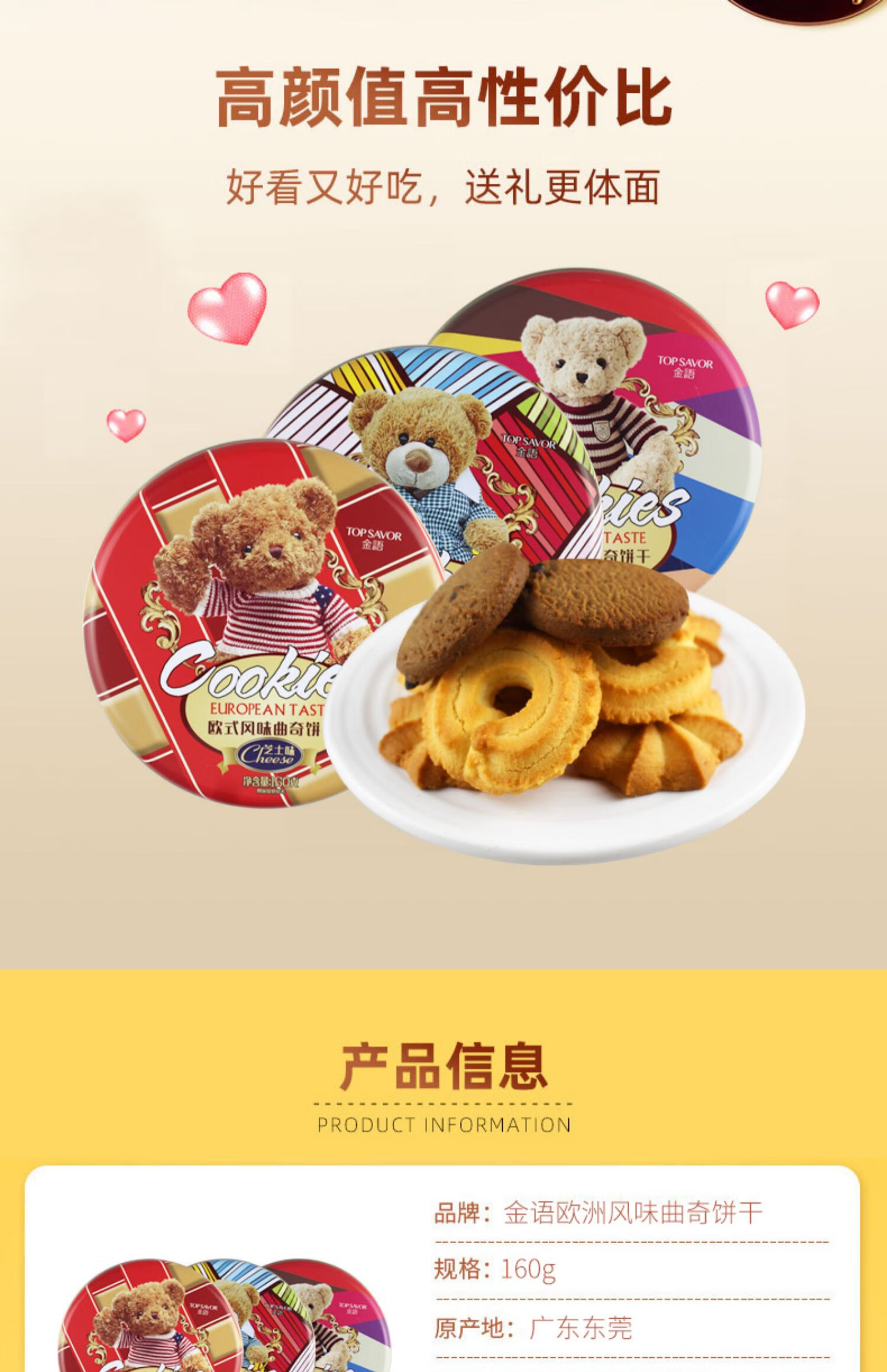 金语欧式风味小熊曲奇饼干160g(芝士味)