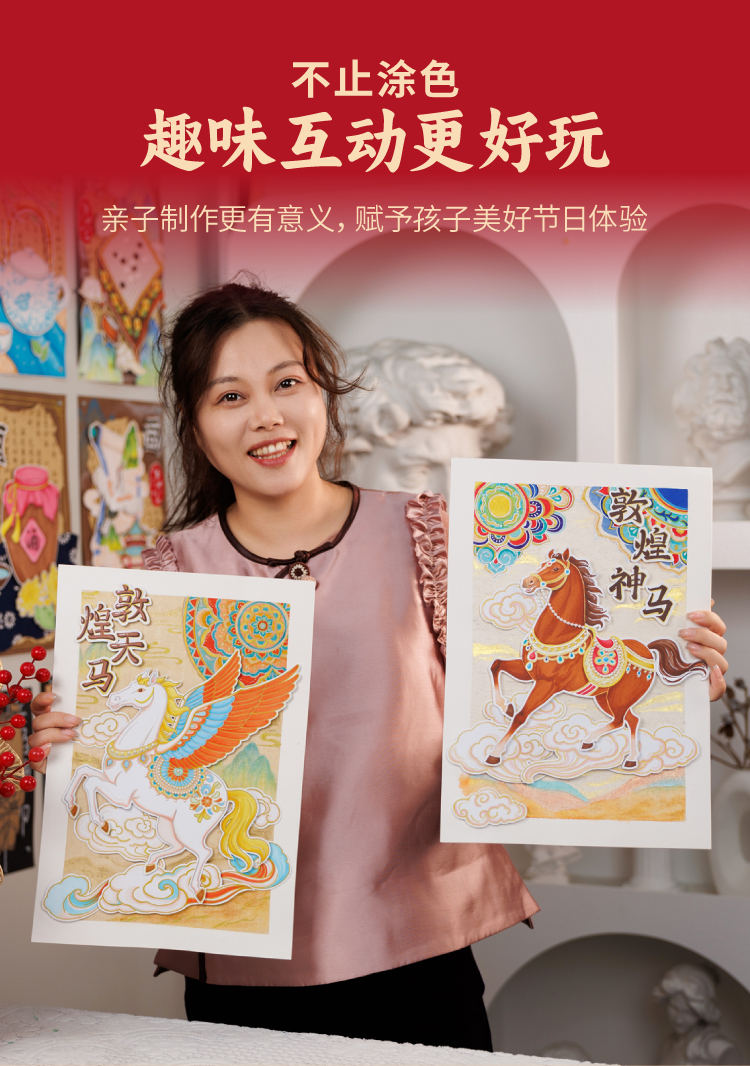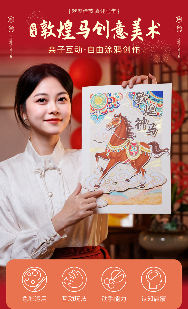 马年新年春节元旦国风敦煌马创意美术手工diy儿童制作材料幼儿园