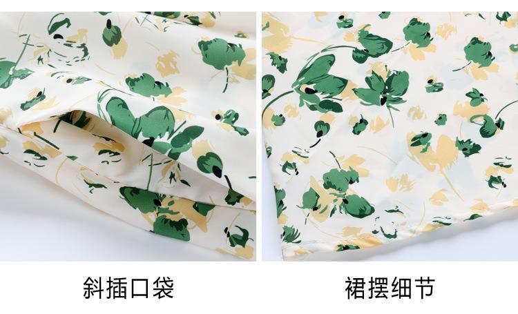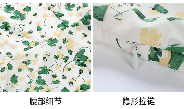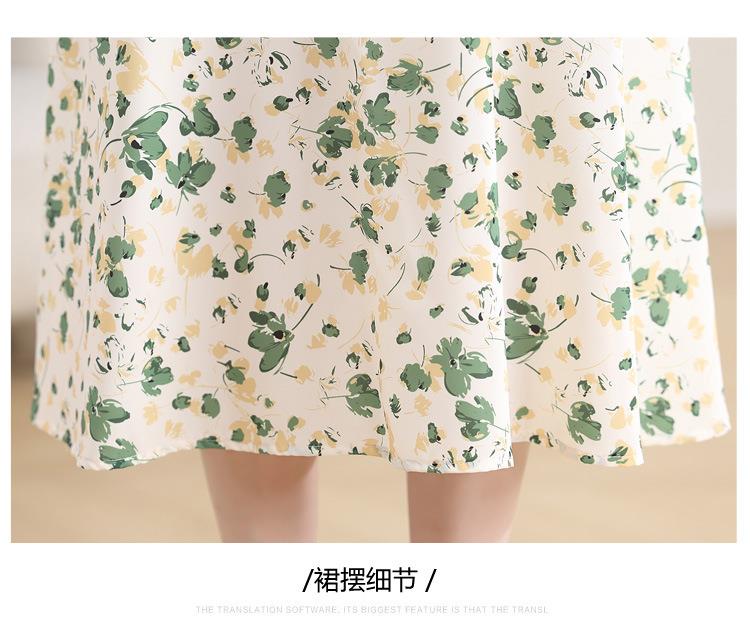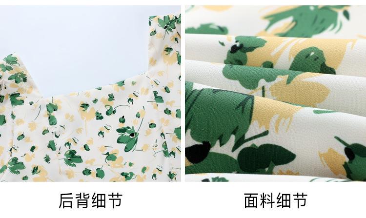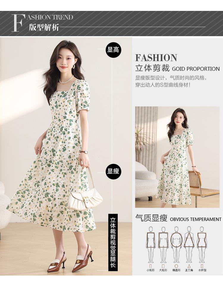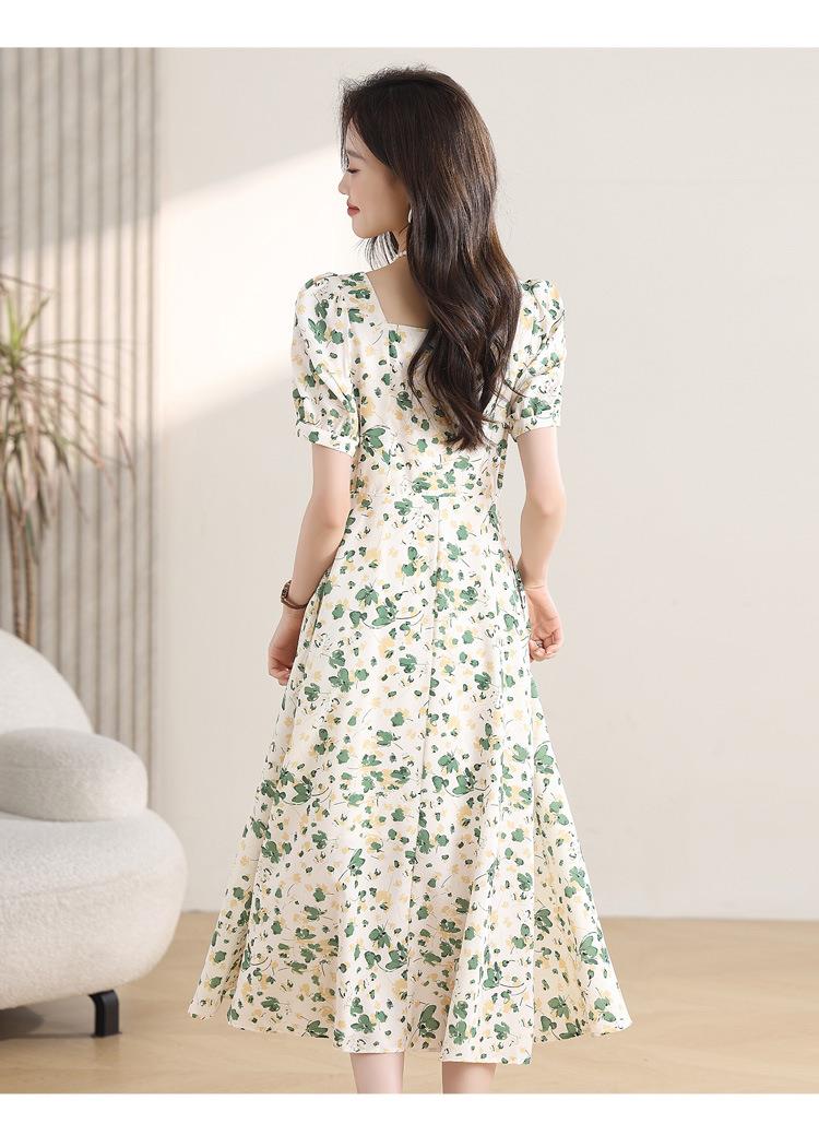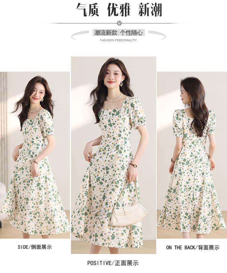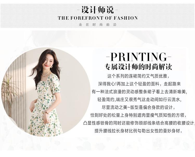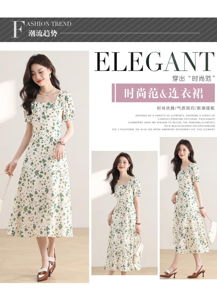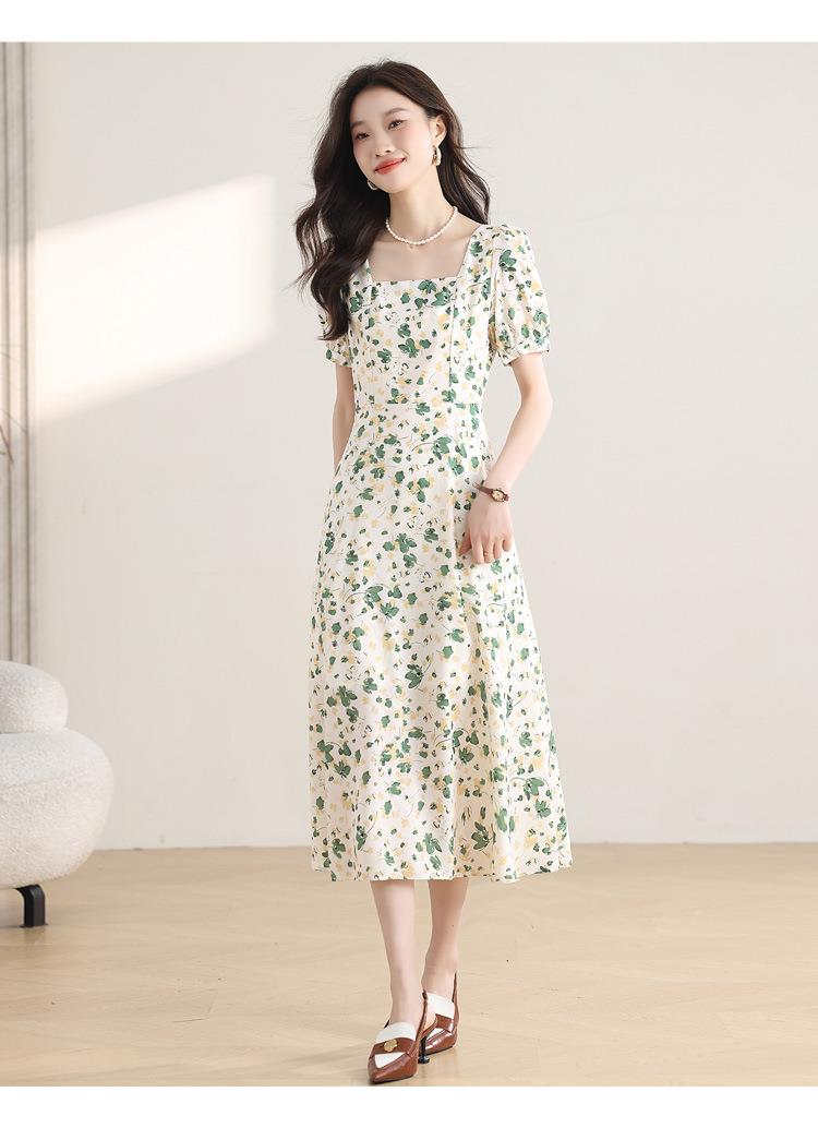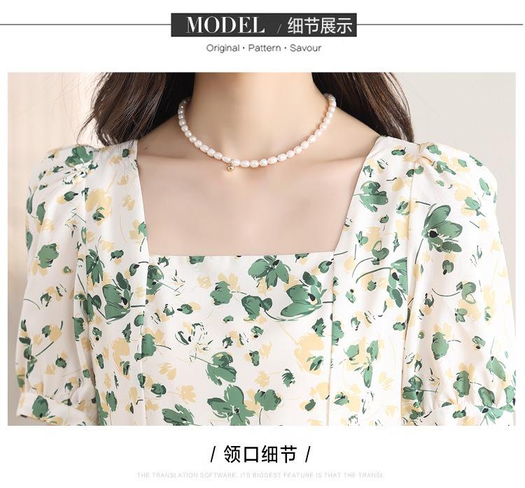 绿色碎花连衣裙女夏2024新款小个子显瘦气质方领a字雪纺仙女裙子