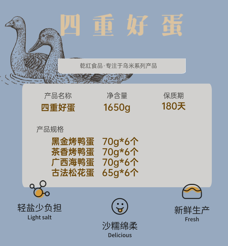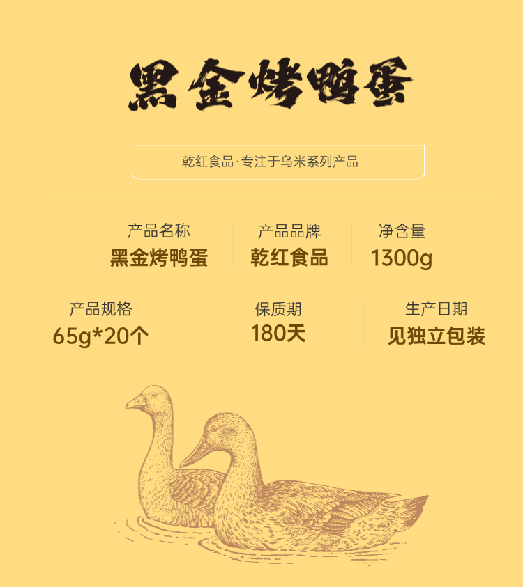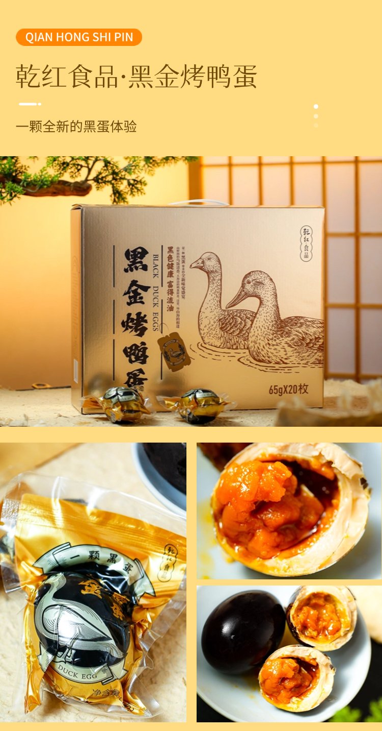 热卖!香流油!乾红食品黑金烤鸭蛋/四重好蛋 试吃装/礼盒装 黑色健康 富得流油 节日送礼咸鸭蛋