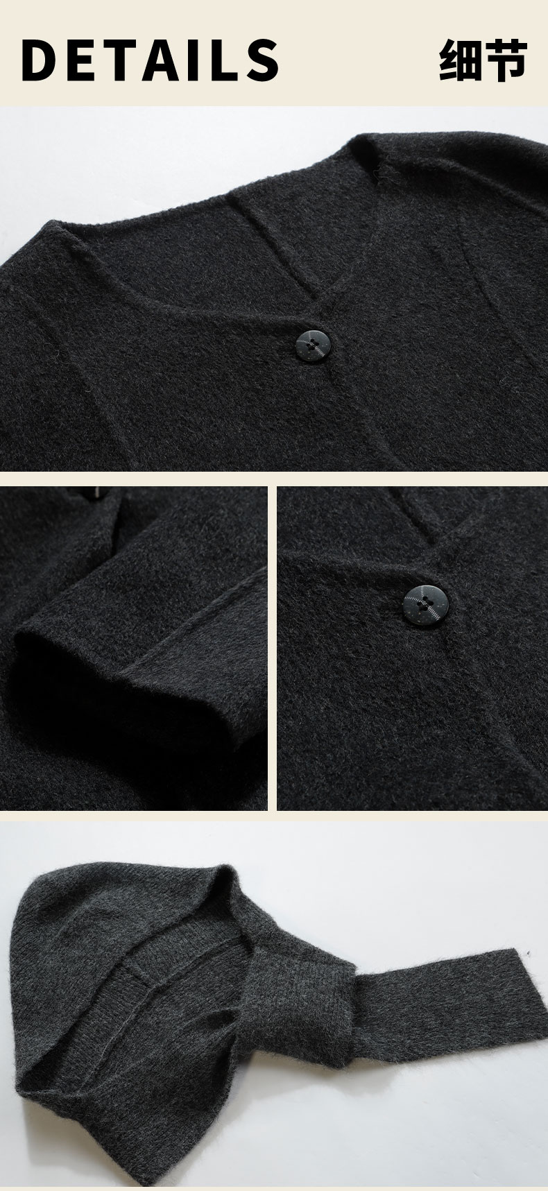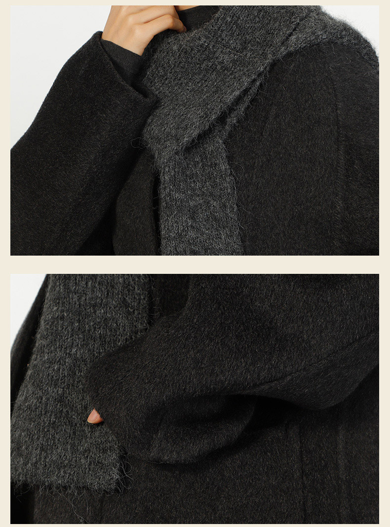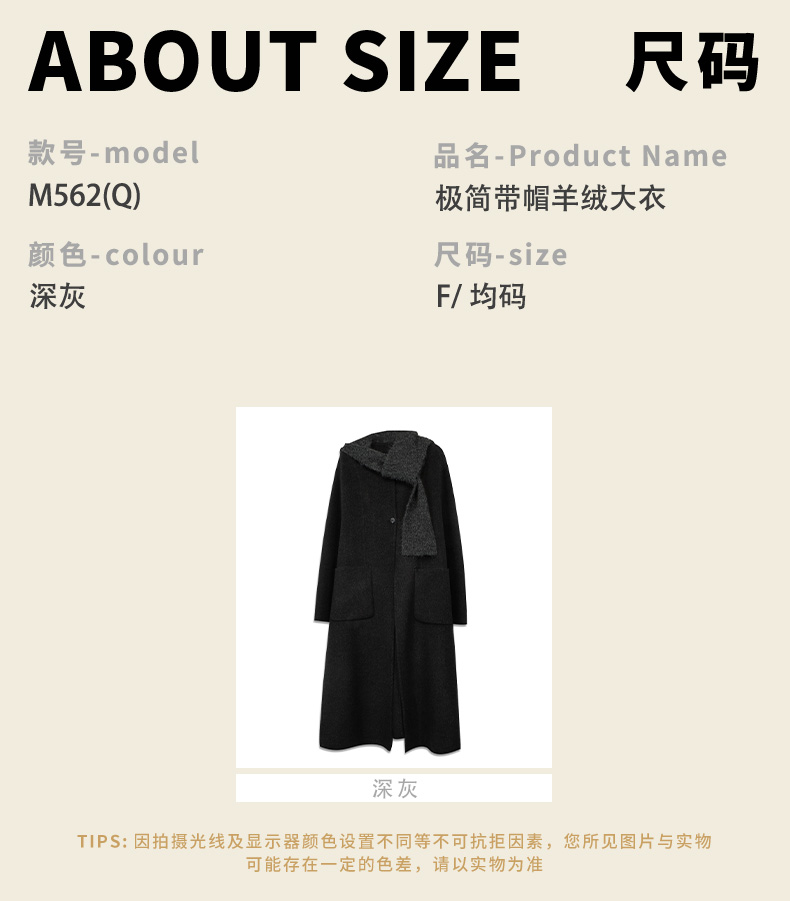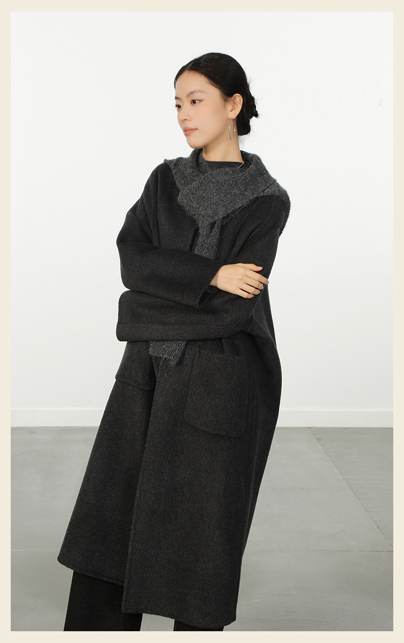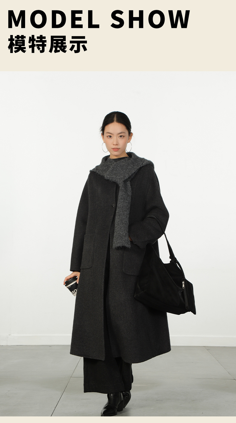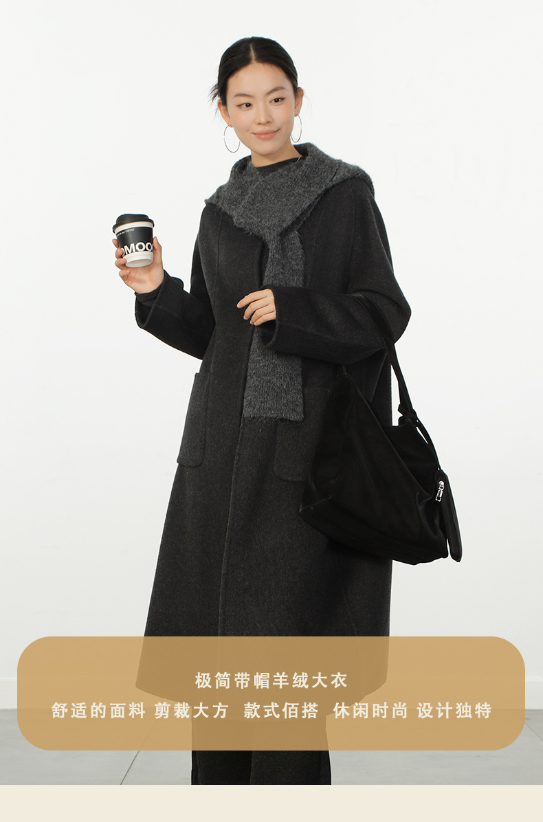 极简款灰色系带帽羊绒长款大衣-纪念日百货门店同款167095398