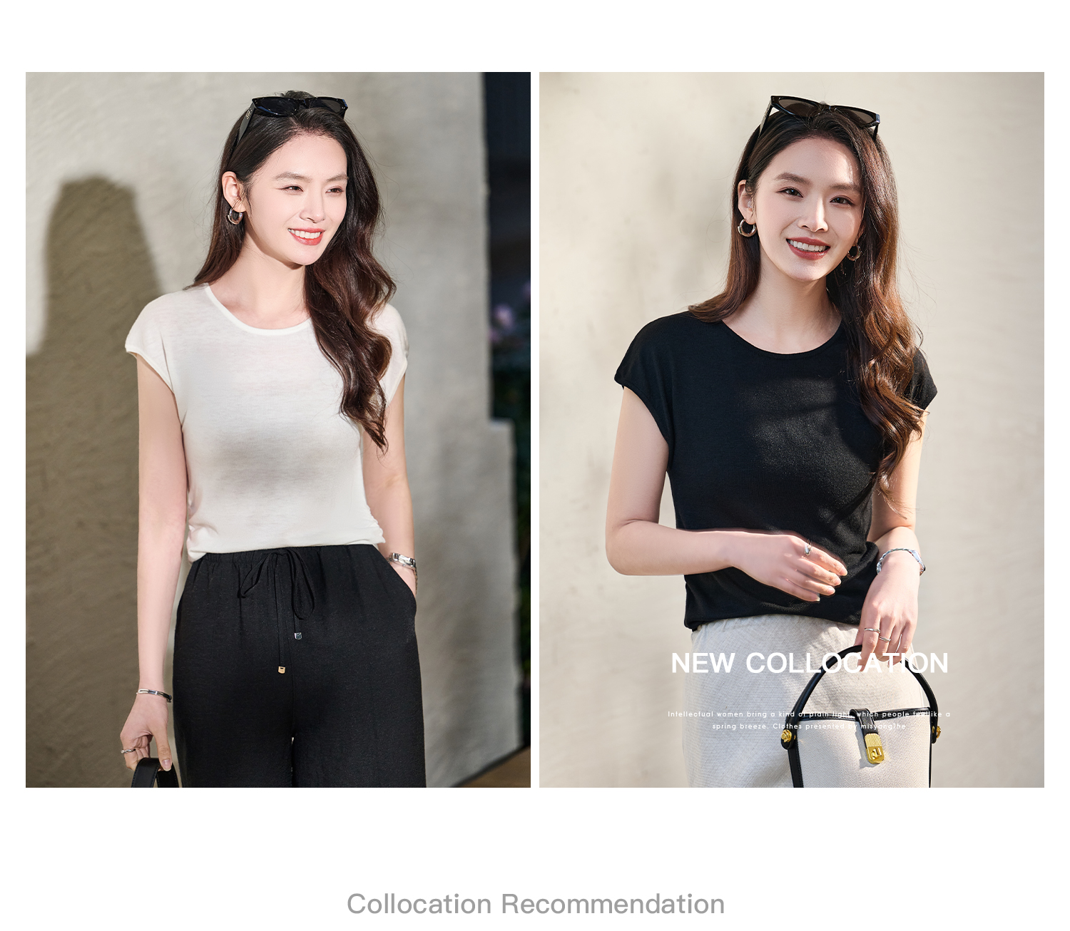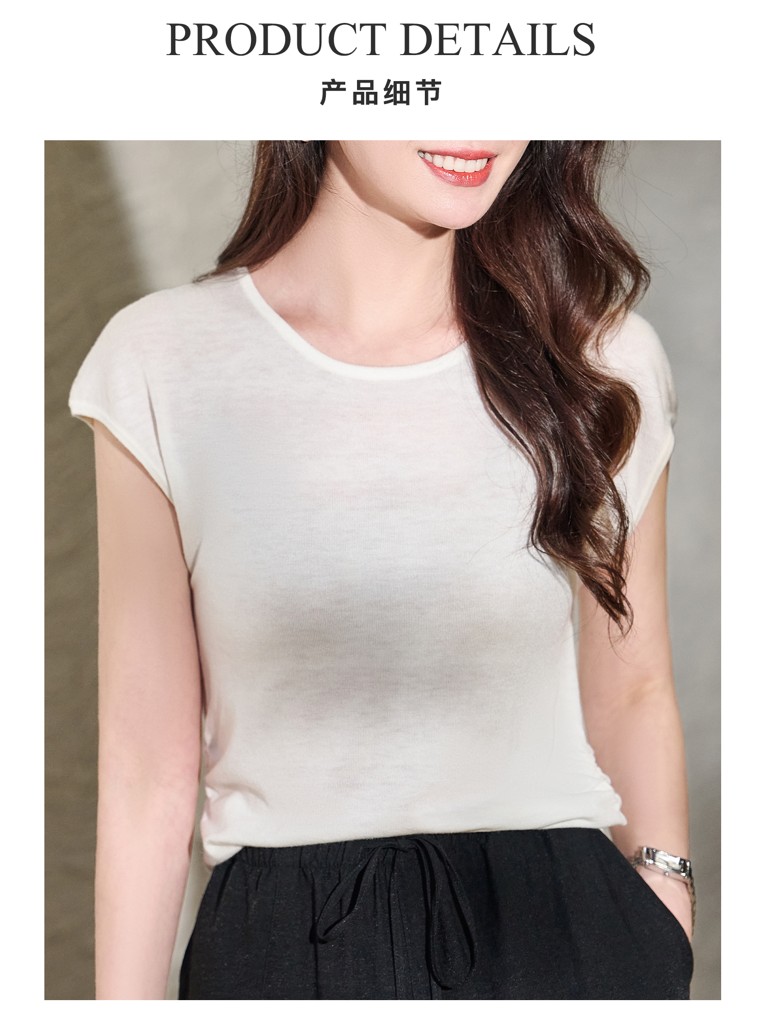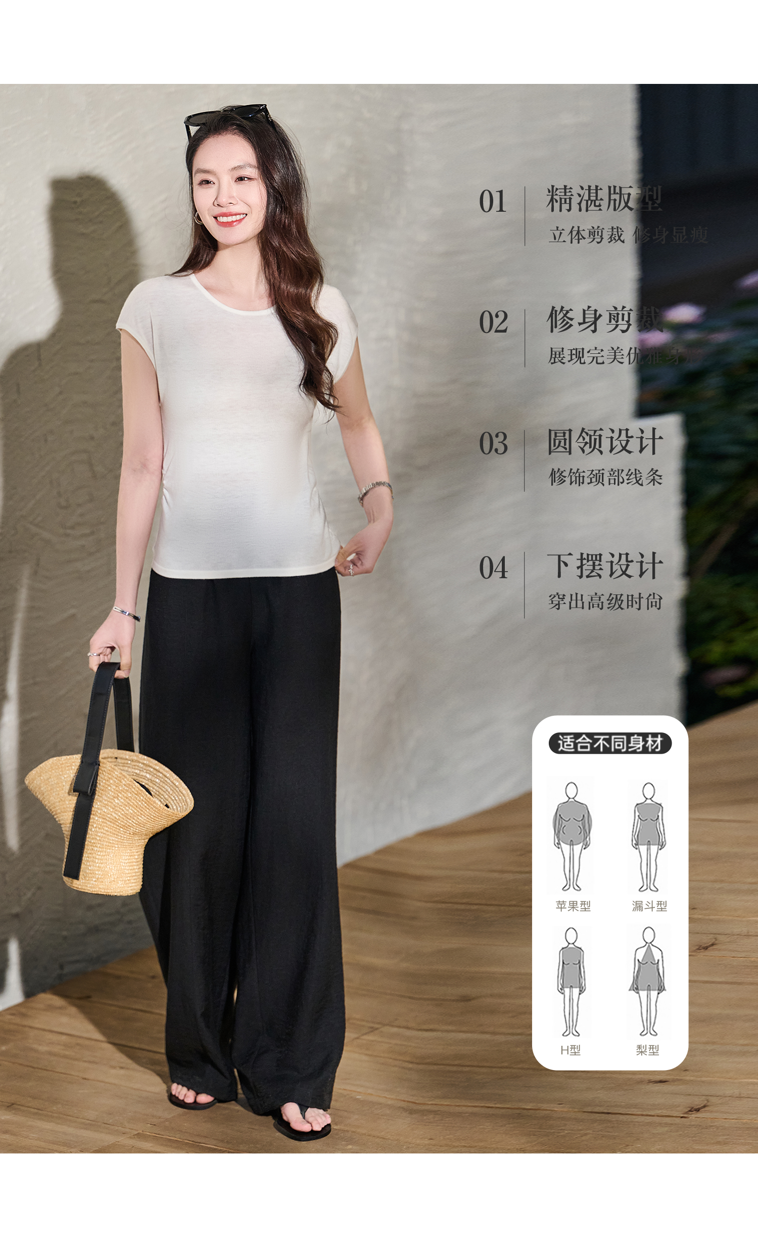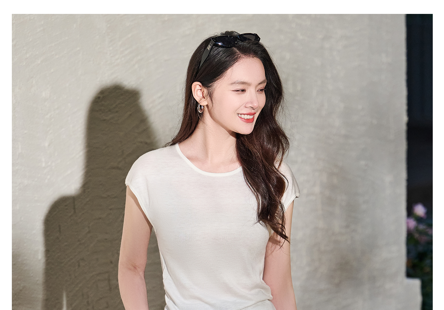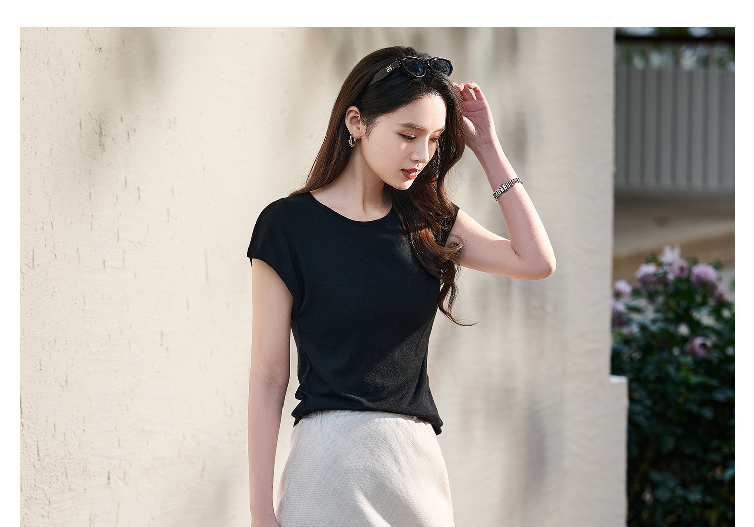 舒适天丝桑蚕丝针织衫 米思阳2026春夏新款休闲感T恤上衣女2110
