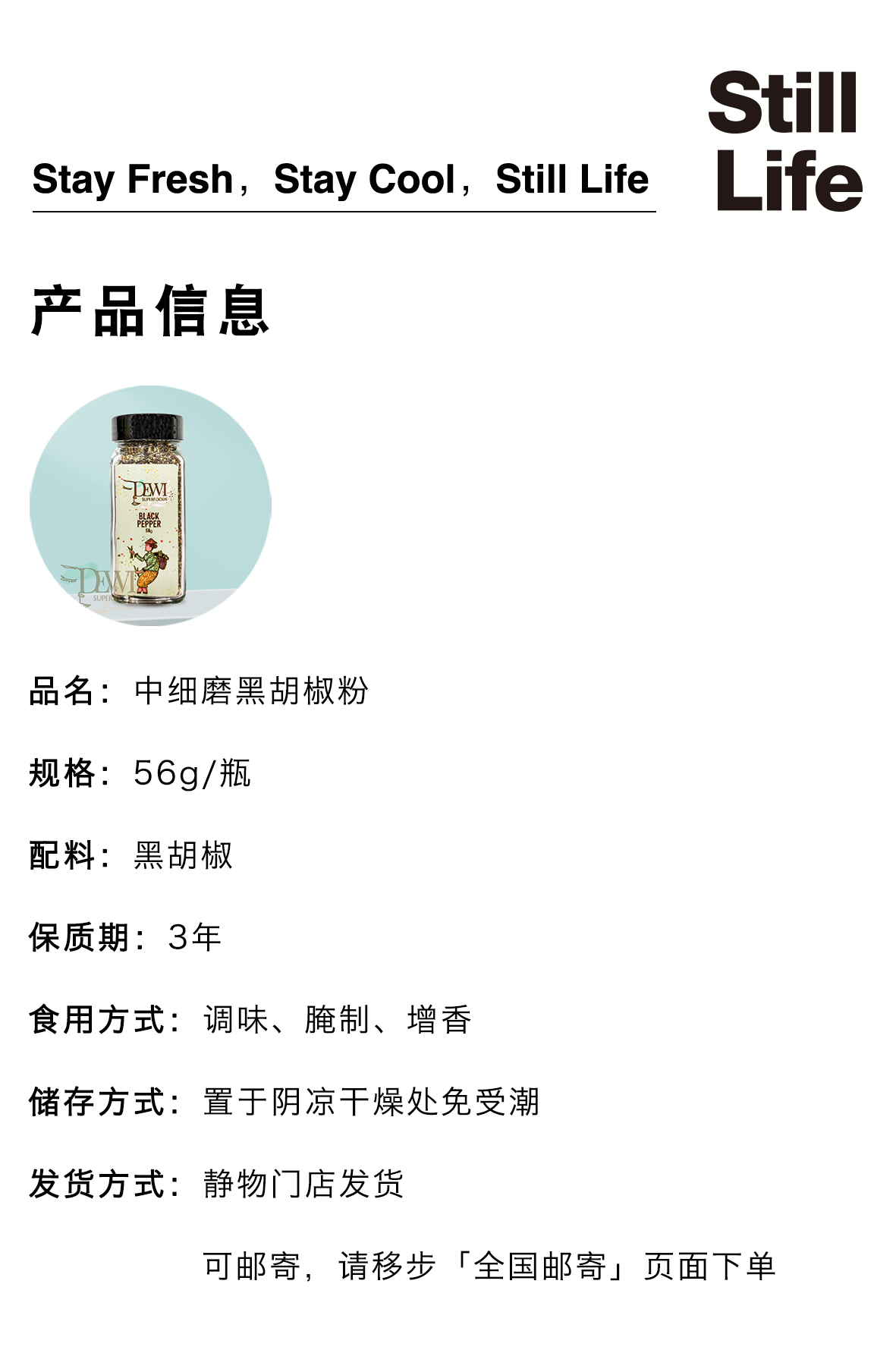 有机中细磨黑胡椒粉56g
