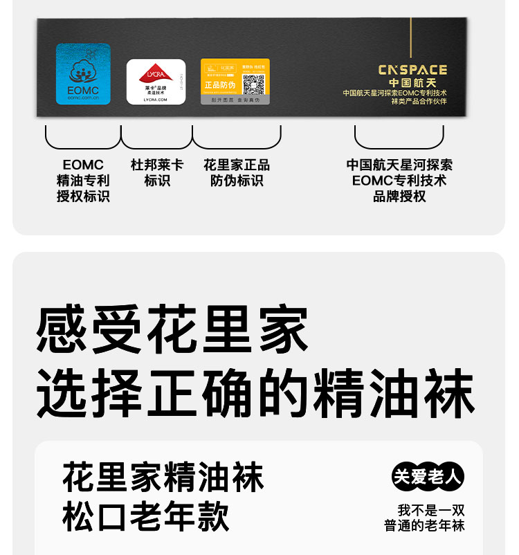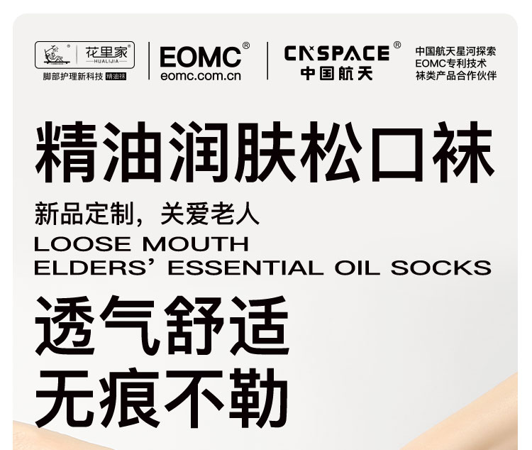 花里家松口袜防臭精油袜男女同款宽松老年人袜子肿胖脚大码棉袜