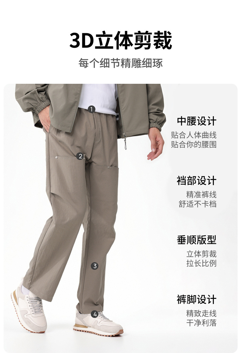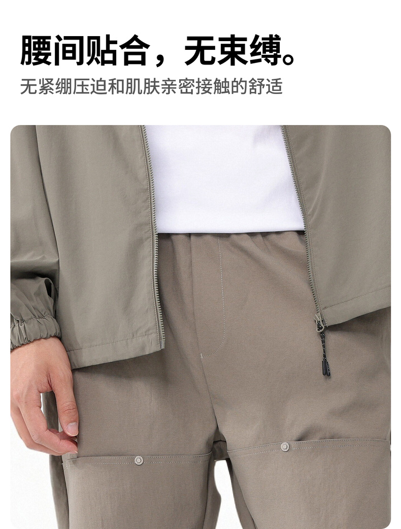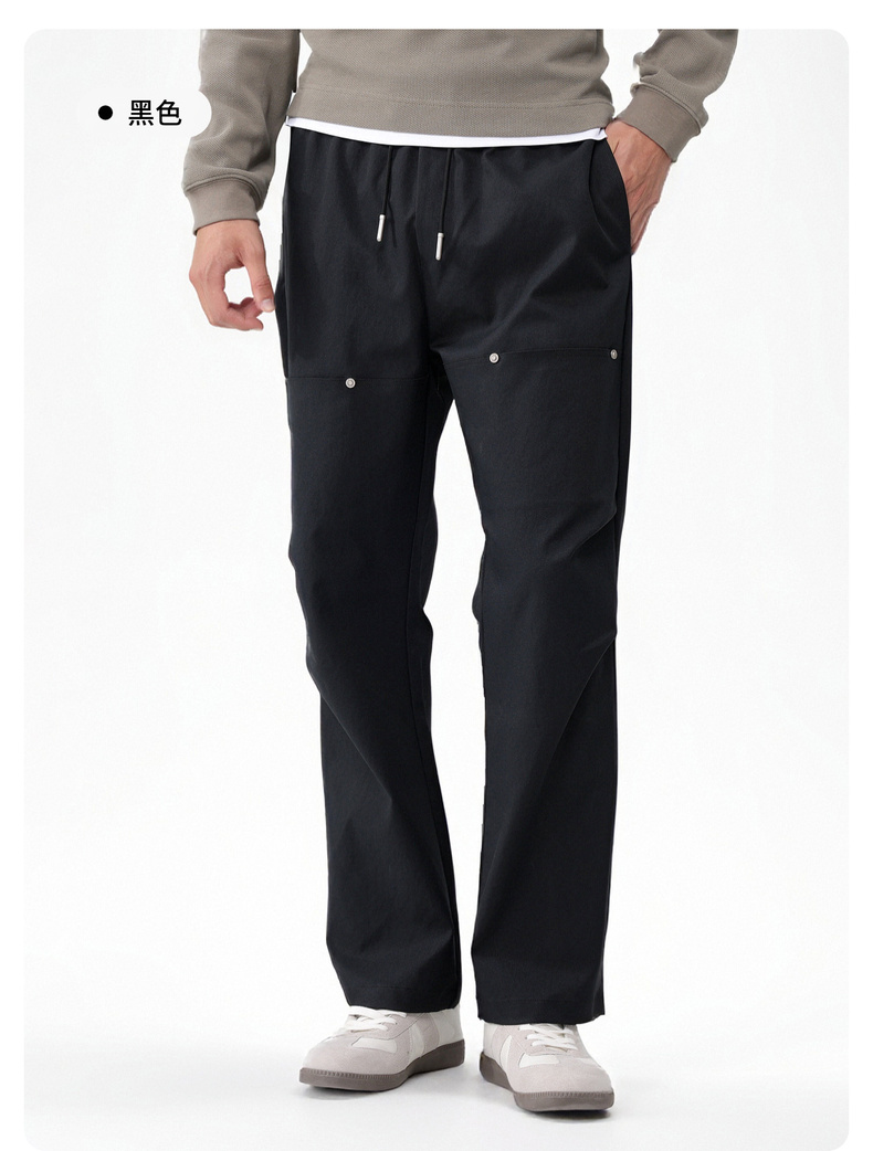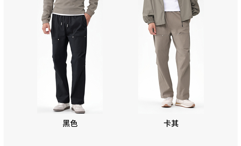 圣得西男士户外工装休闲裤2025年秋季新款纯色时尚松紧抽绳直筒裤