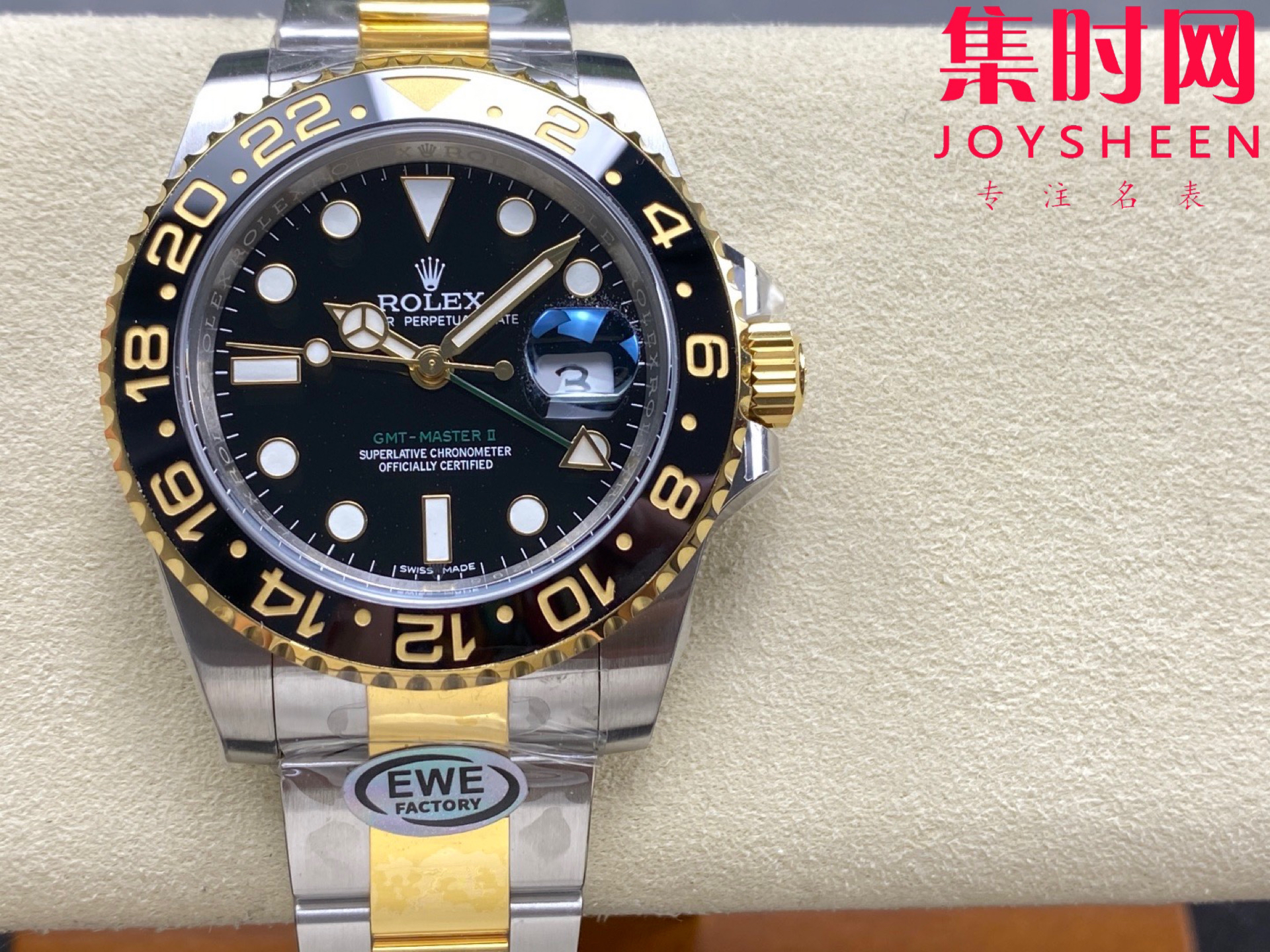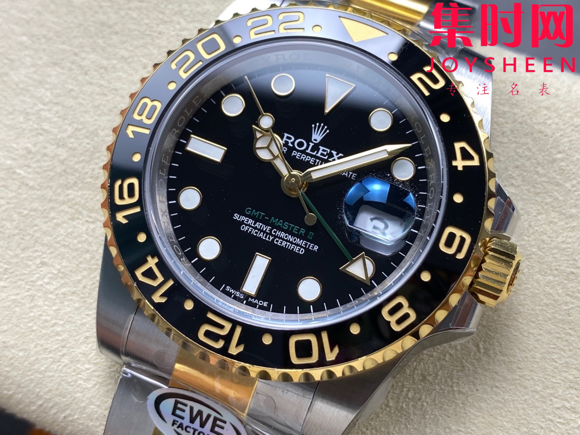 劳力士EWE格林尼治型系列 皮蛋圈 间金格林尼治GMT 3186机 五珠带 男士腕表