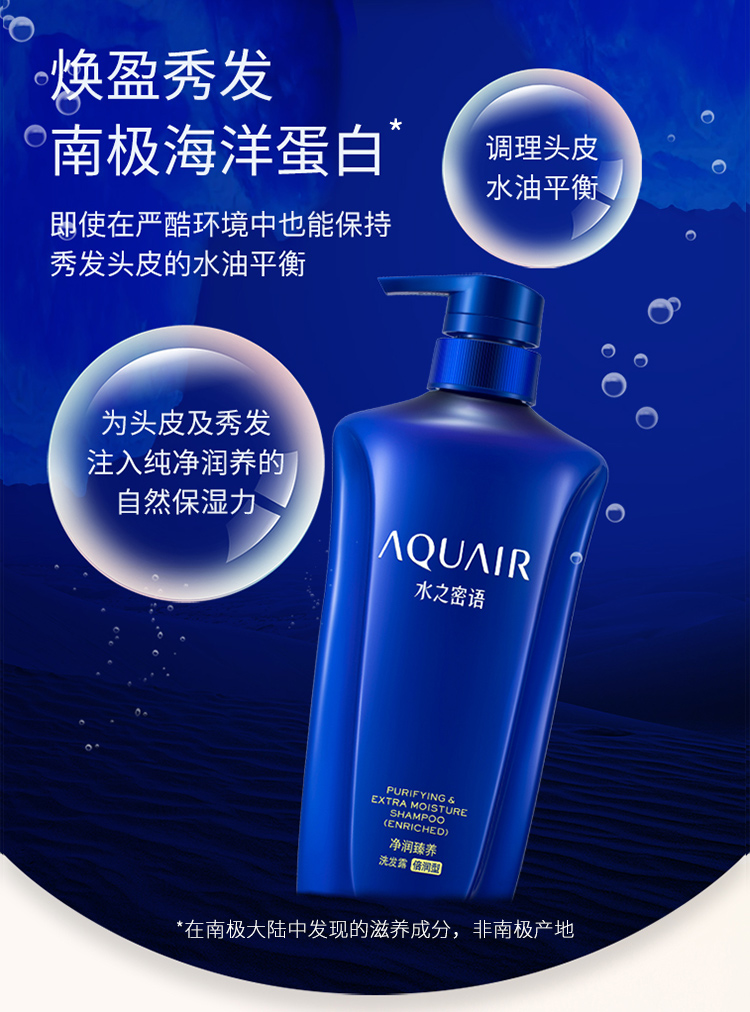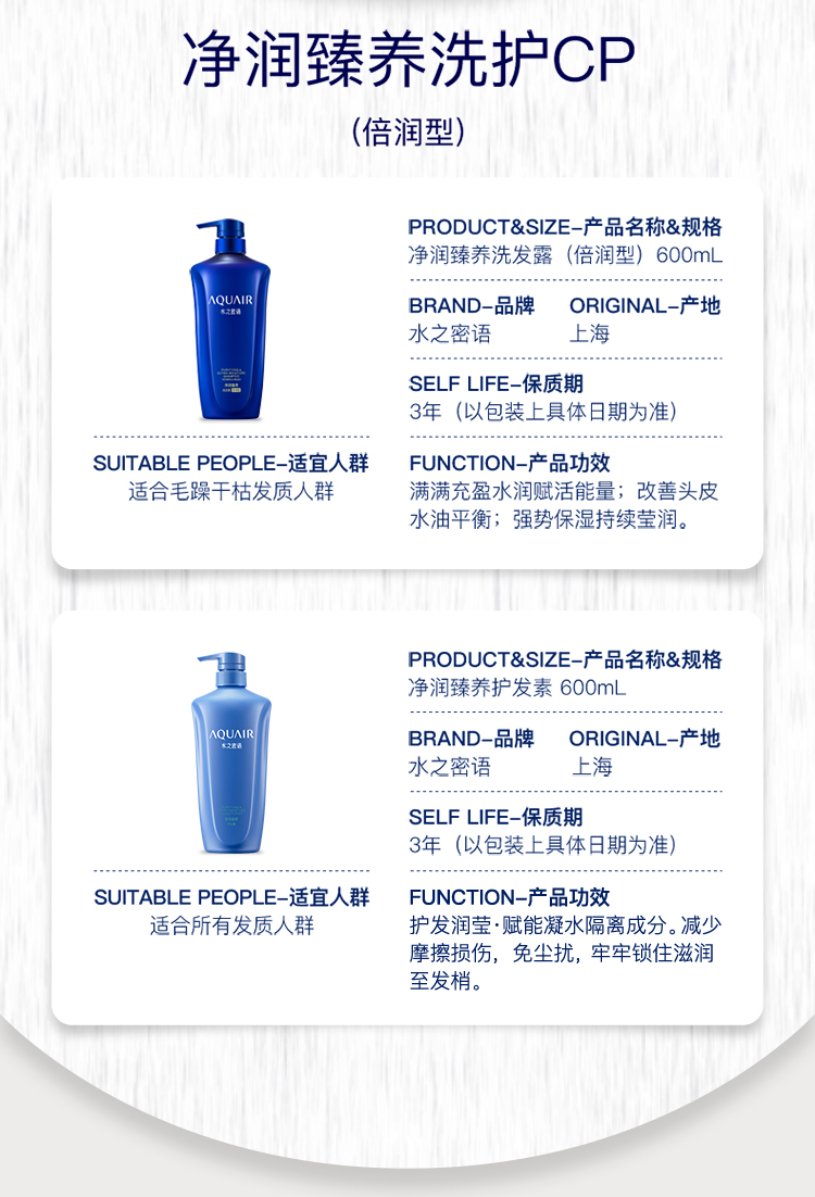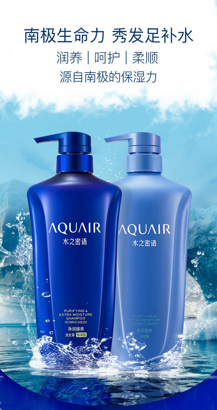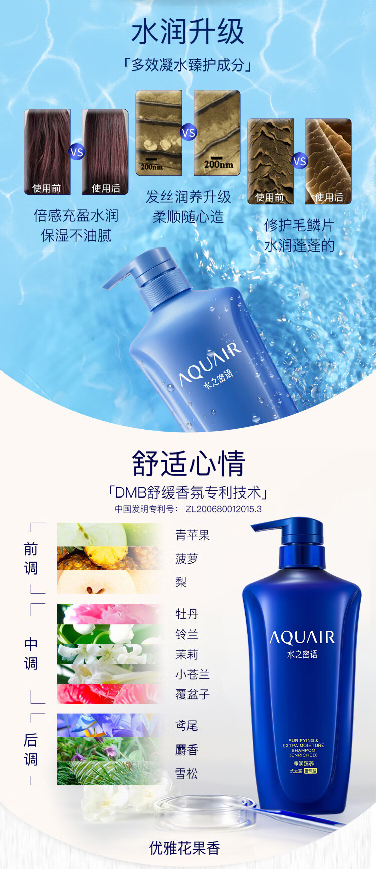 水之密语(AQUAIR)滋养保湿洗发水净润臻养洗发露(倍润型)600ml 水润柔顺修护
