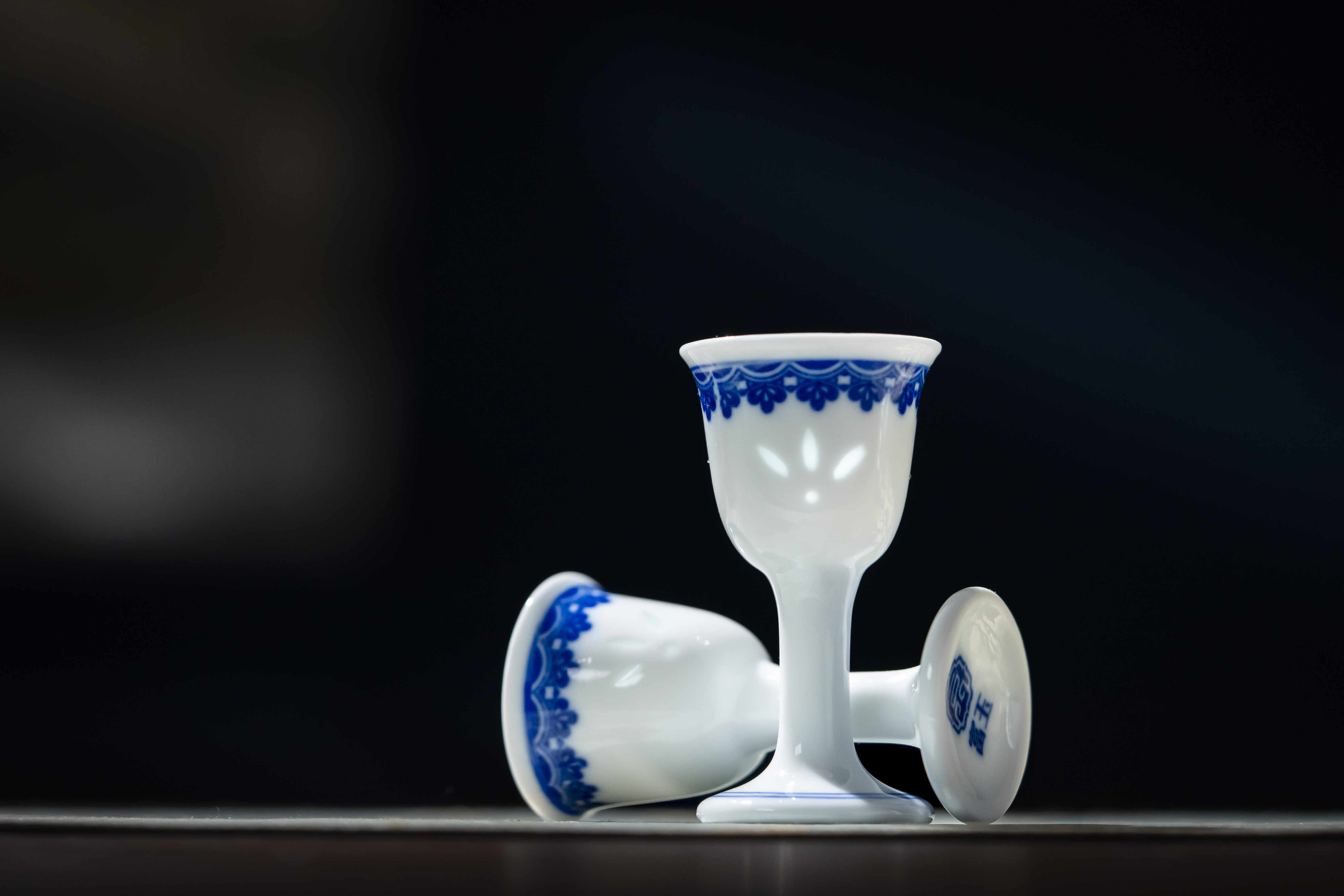 富玉窑 景德镇全手工青花玲珑三多福手作茶器品茗杯主人杯