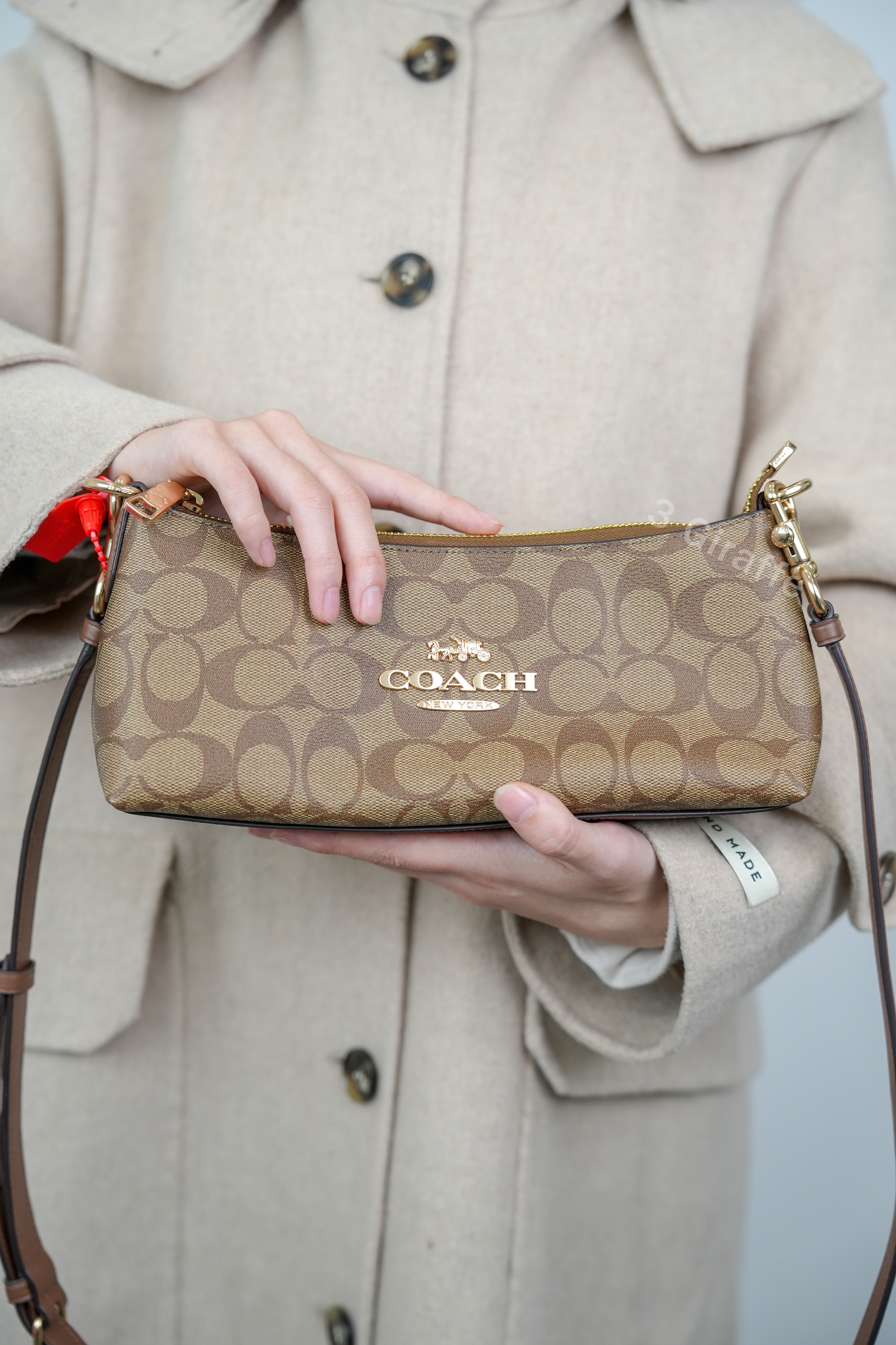COACH蔻驰 棕色老花法棍包腋下包单肩手提包 女士CL405 #美国直邮