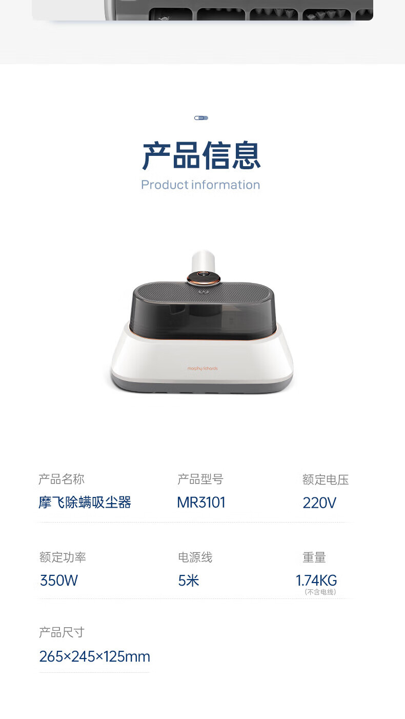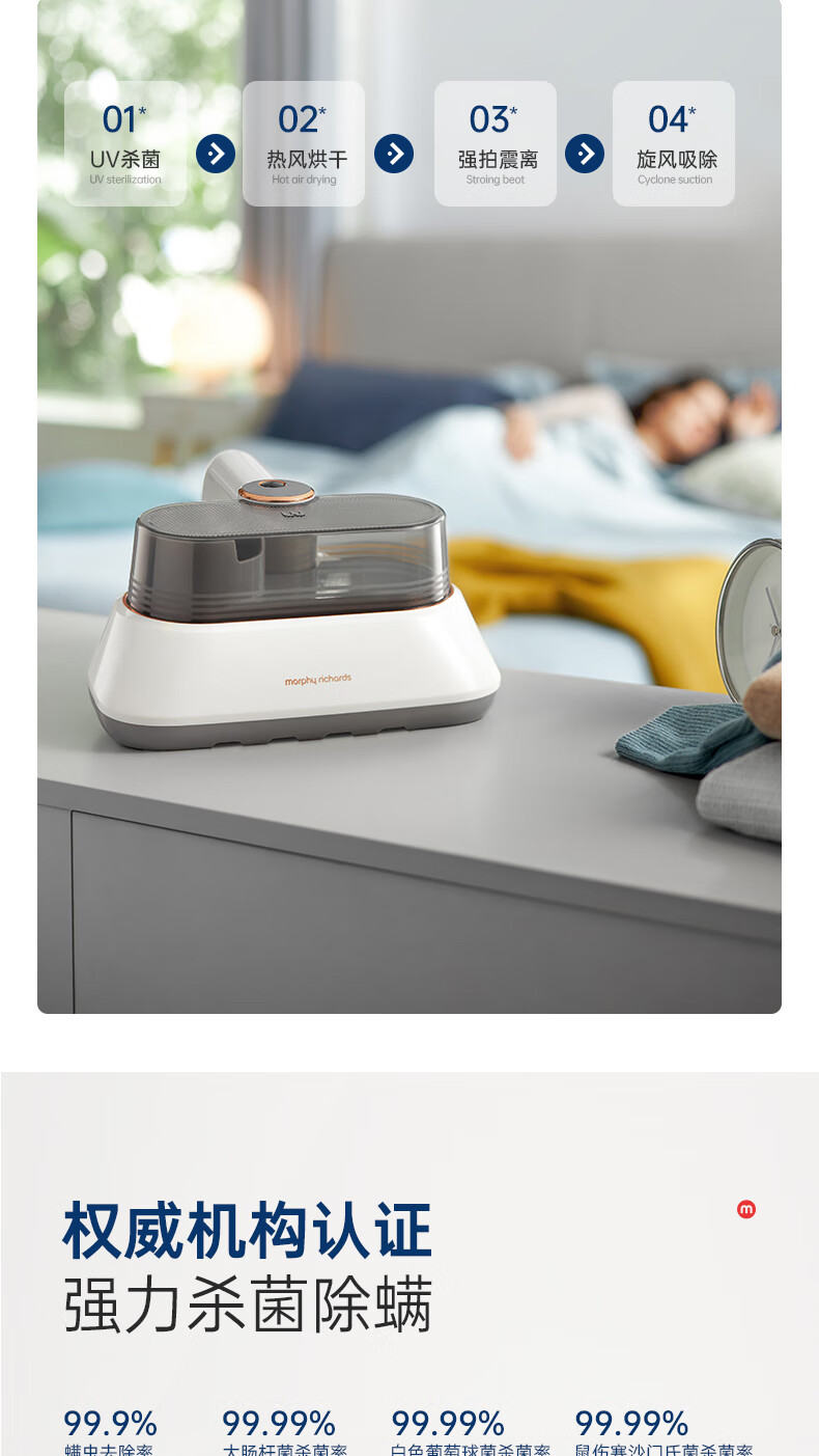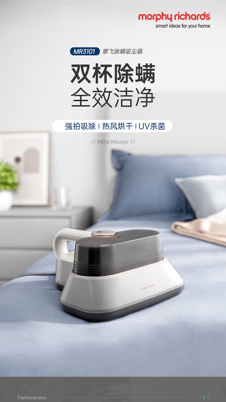 摩飞电器(Morphyrichards) 除螨仪家用床上吸尘器 大吸力除螨仪 吸尘除螨 紫外线除螨仪 MR3101 白色