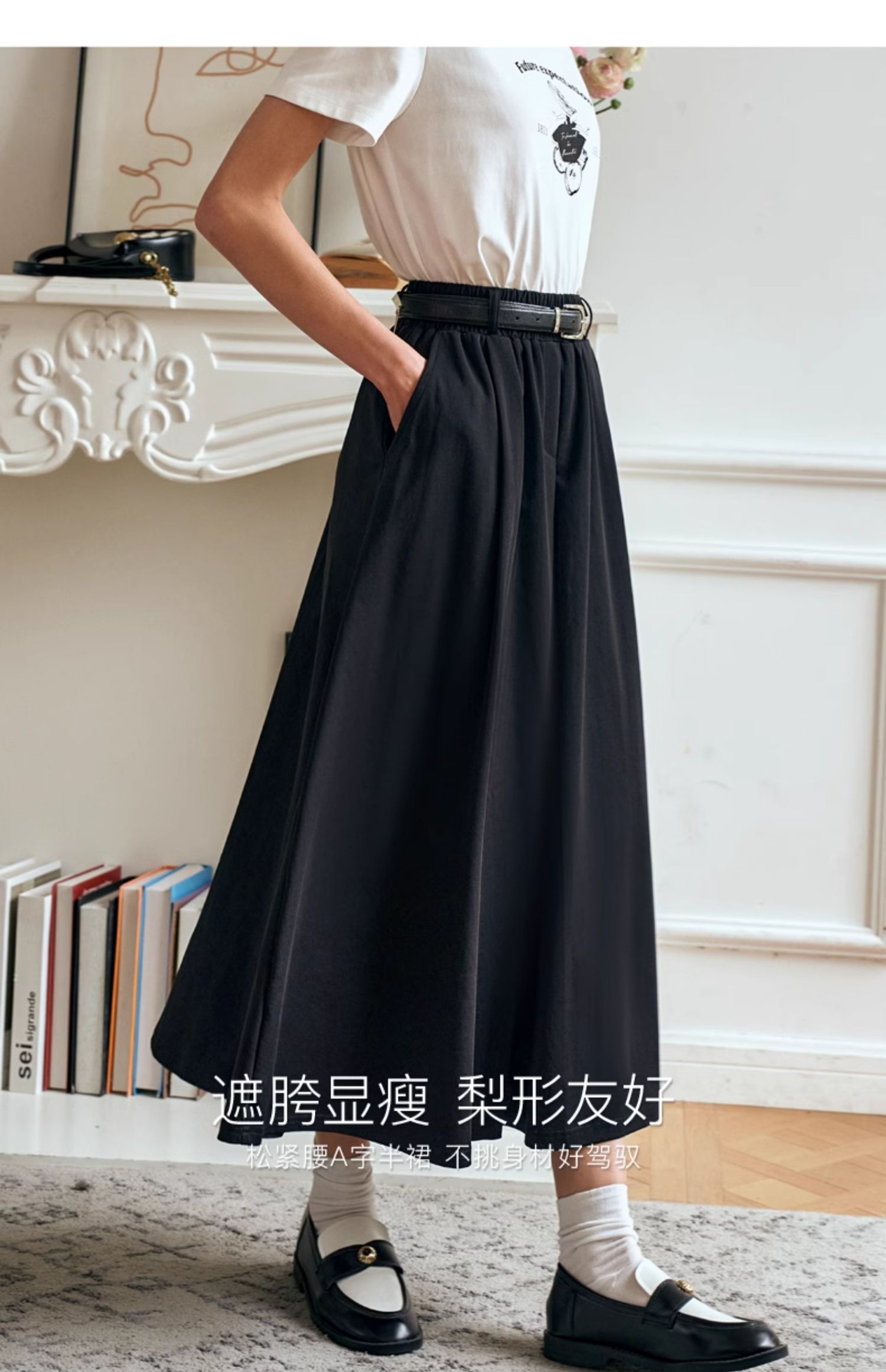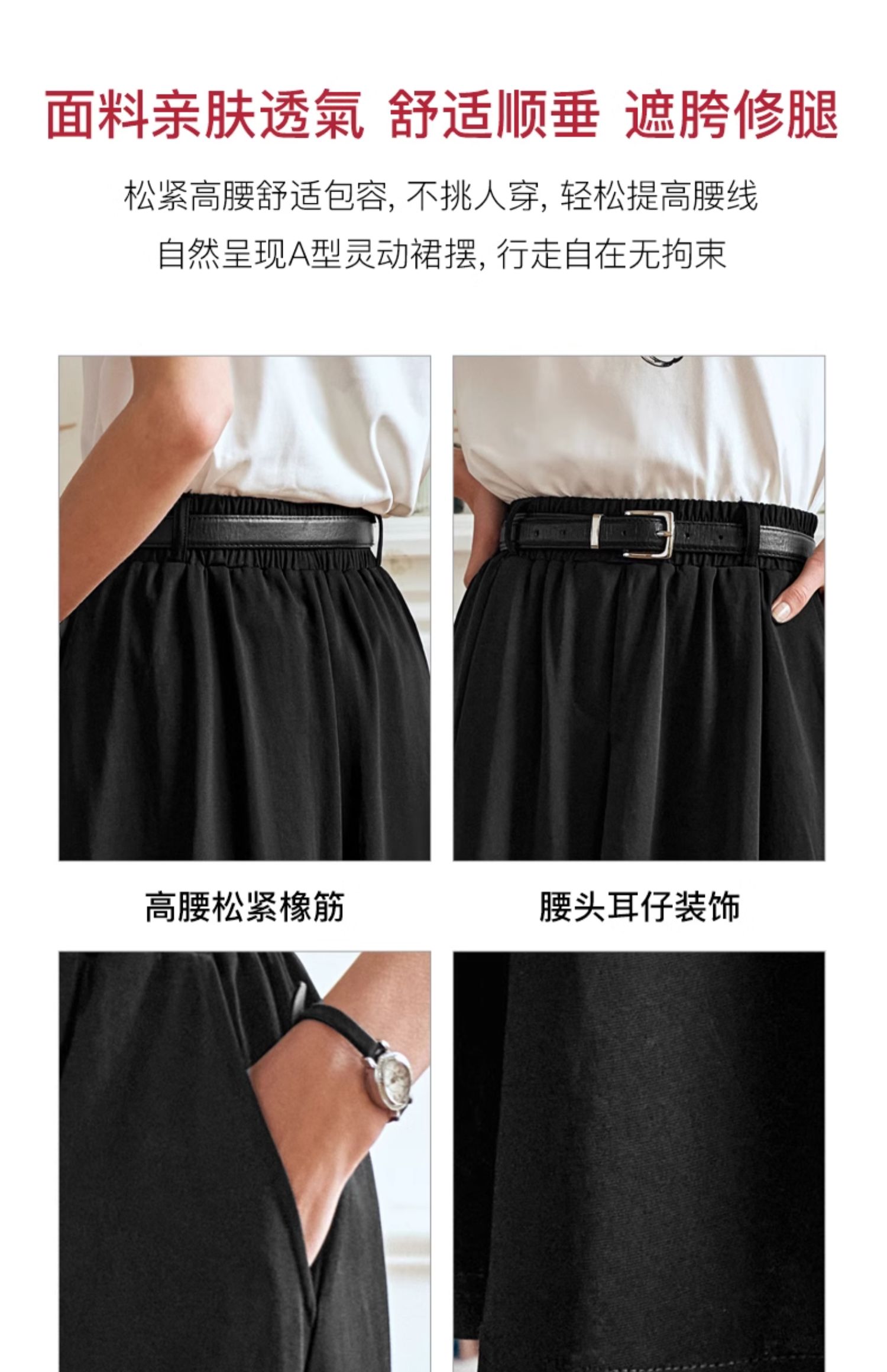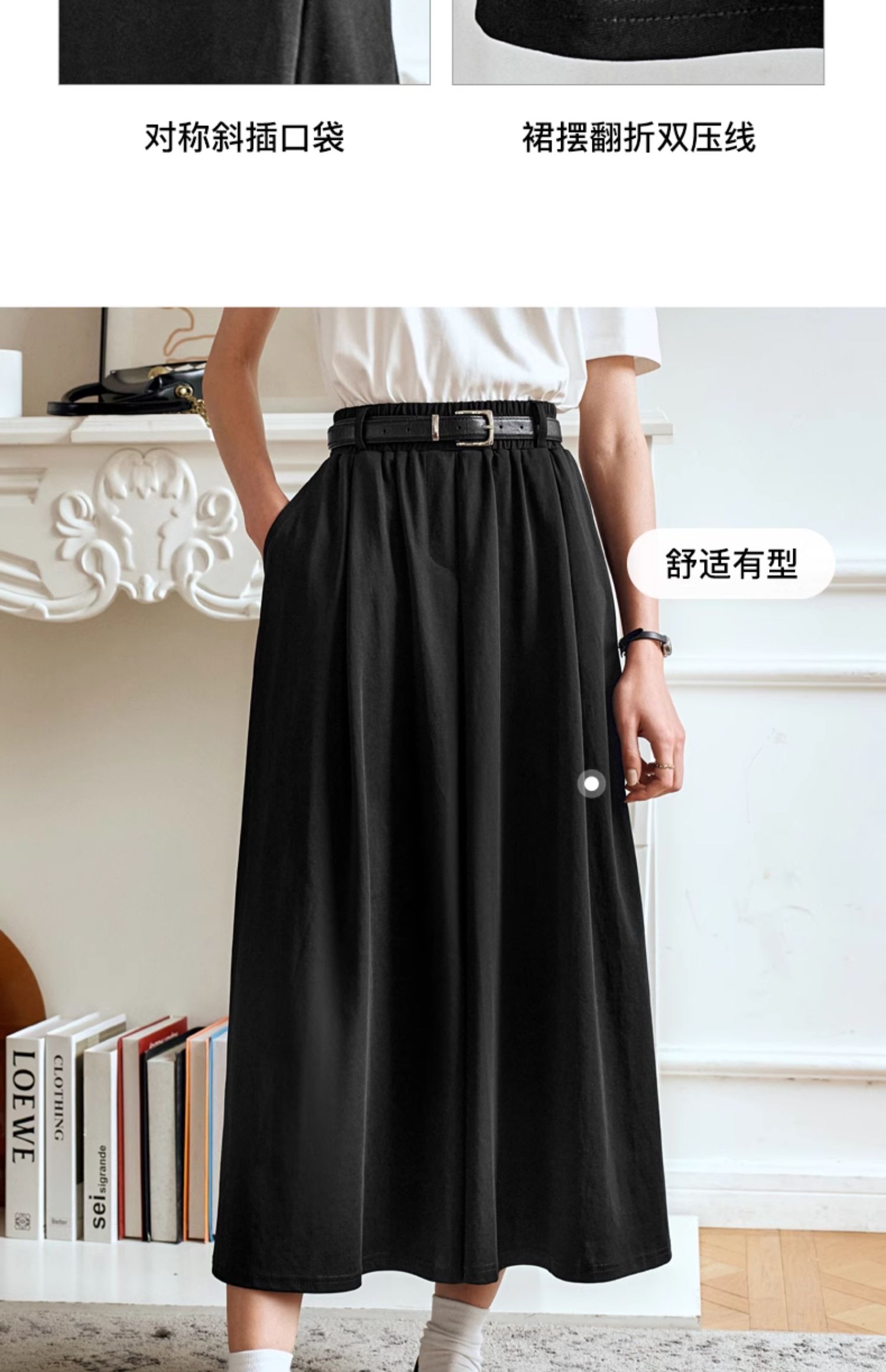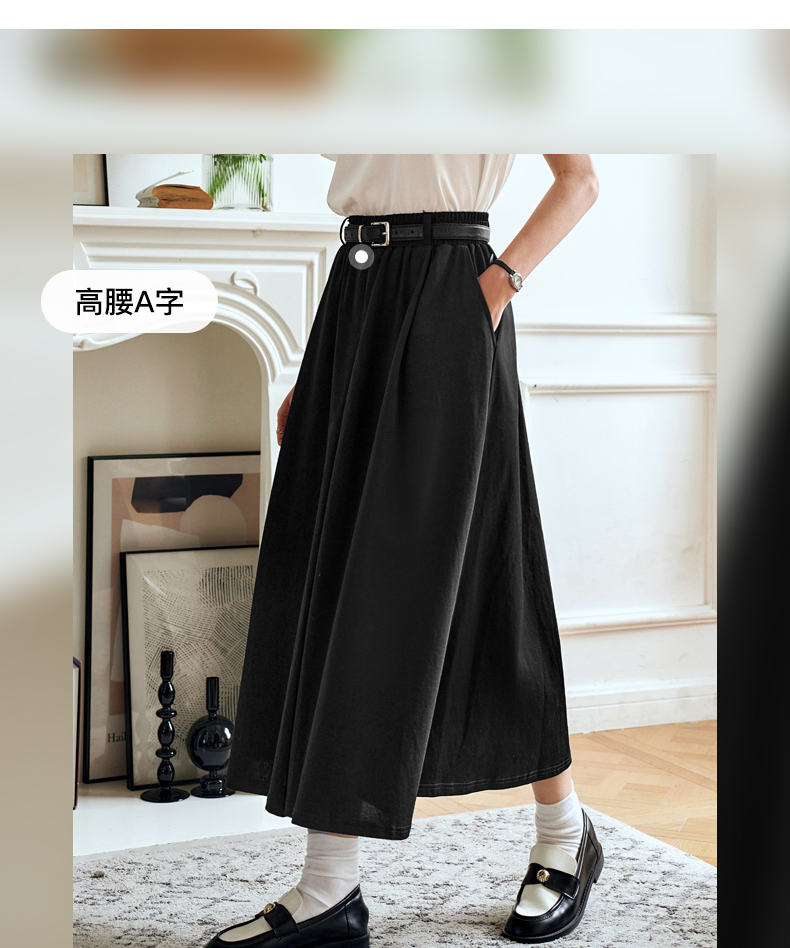 OLrain欧芮儿黑色半身裙女夏季2024年新款通勤百搭气质A字中长裙