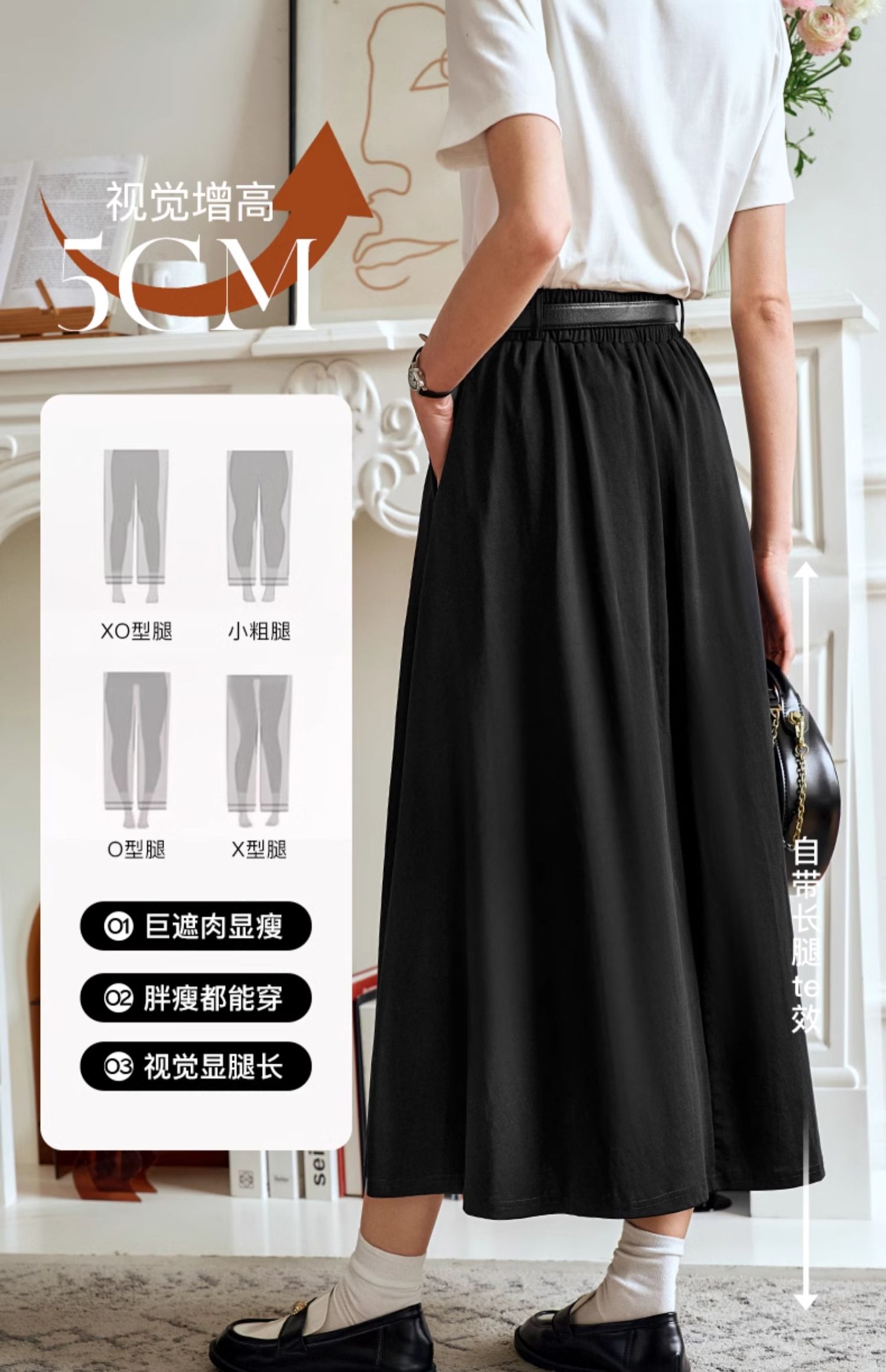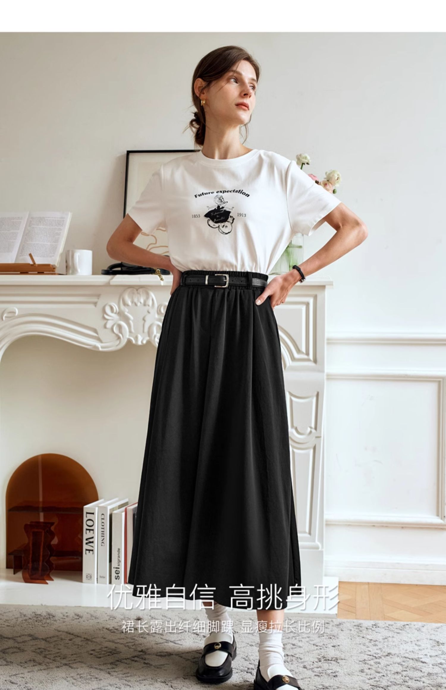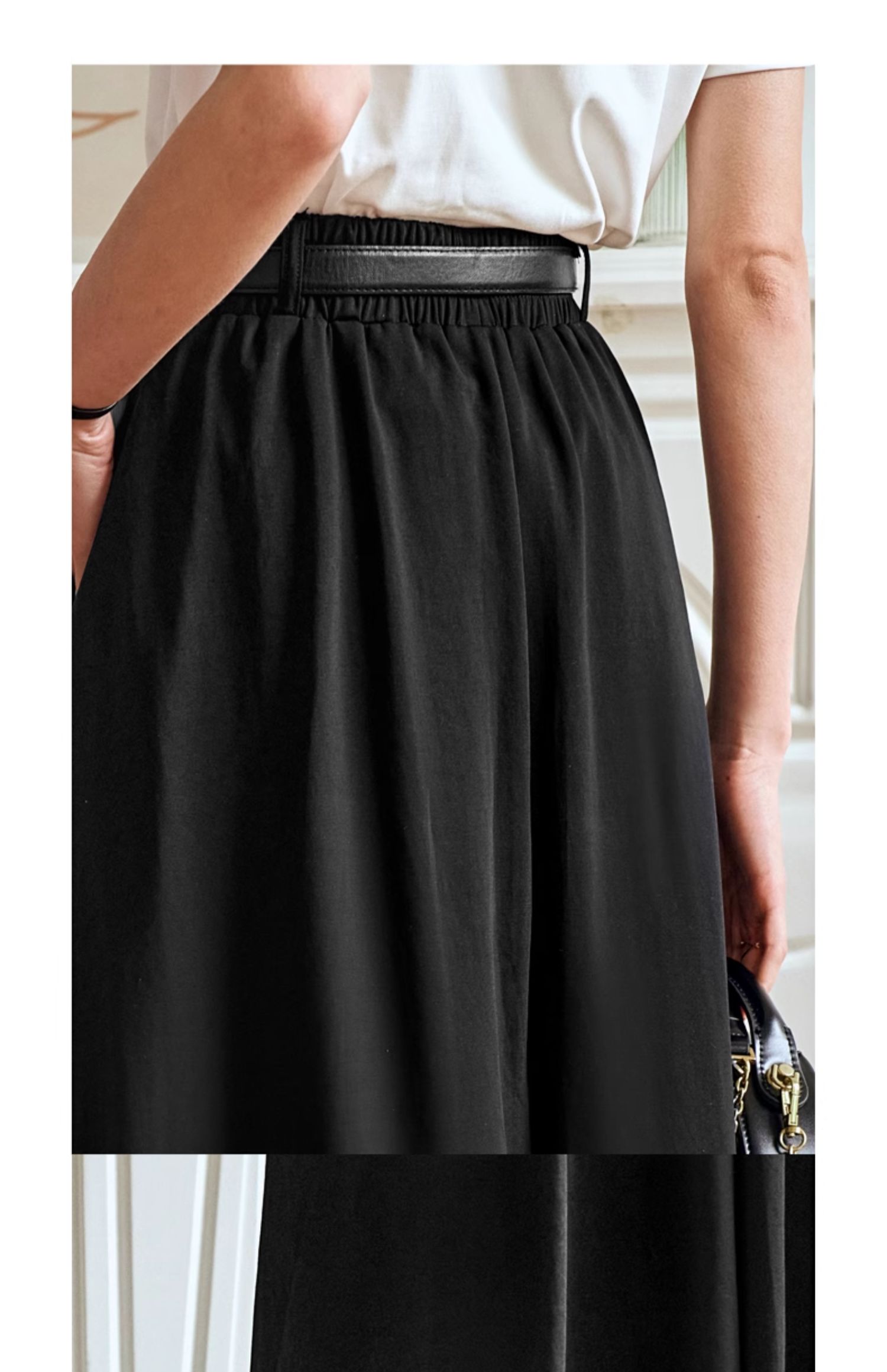 OLrain欧芮儿黑色半身裙女夏季2024年新款通勤百搭气质A字中长裙