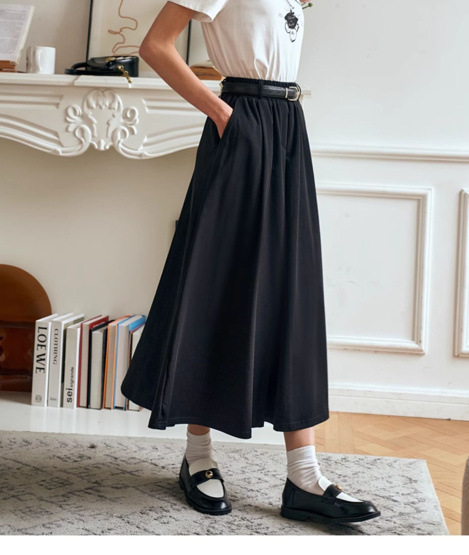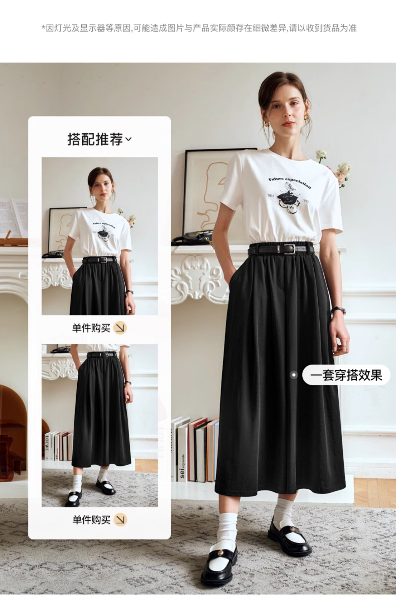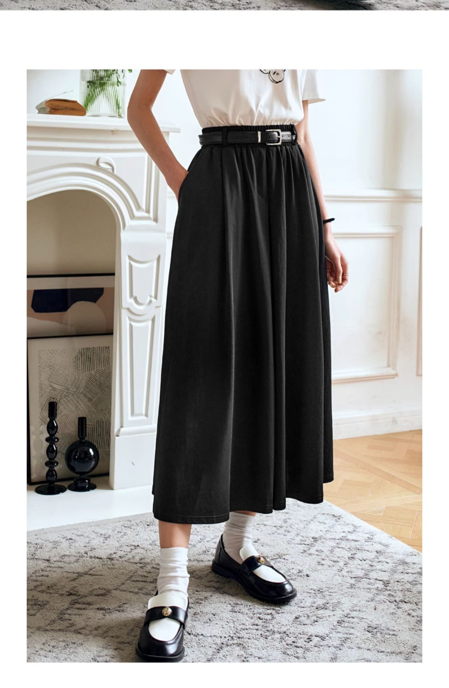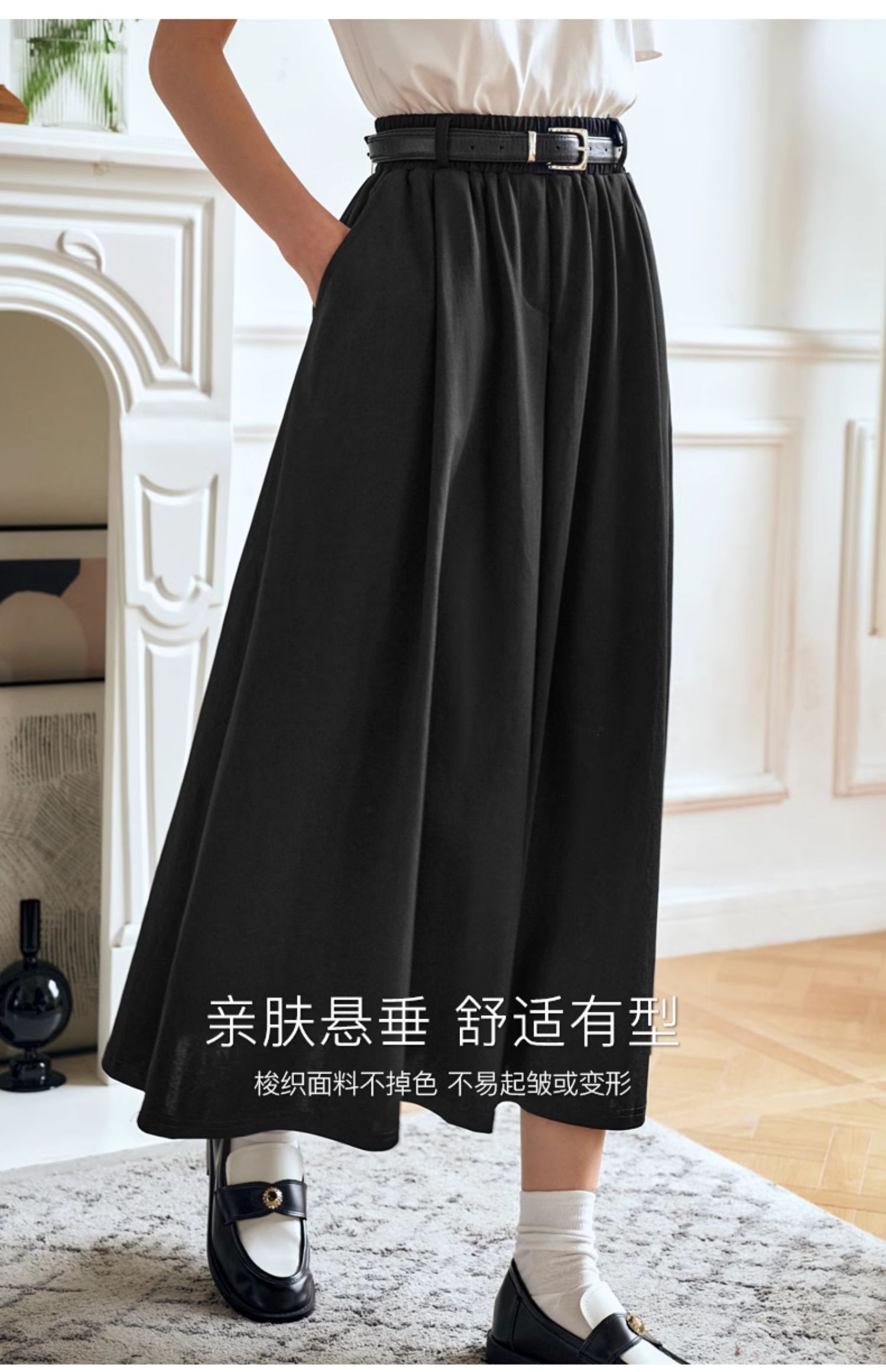 OLrain欧芮儿黑色半身裙女夏季2024年新款通勤百搭气质A字中长裙