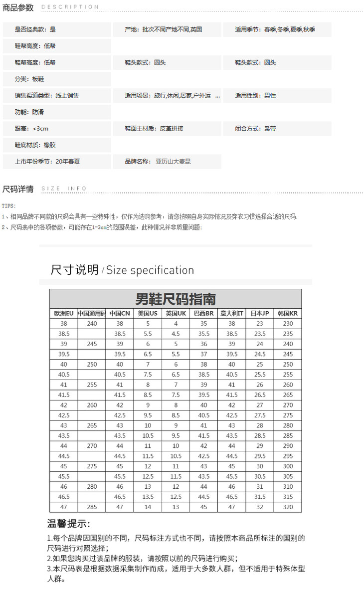 Alexander McQueen 亚历山大麦昆 春夏 纯色白色男士休闲运动鞋 553680 WHGP5 9000