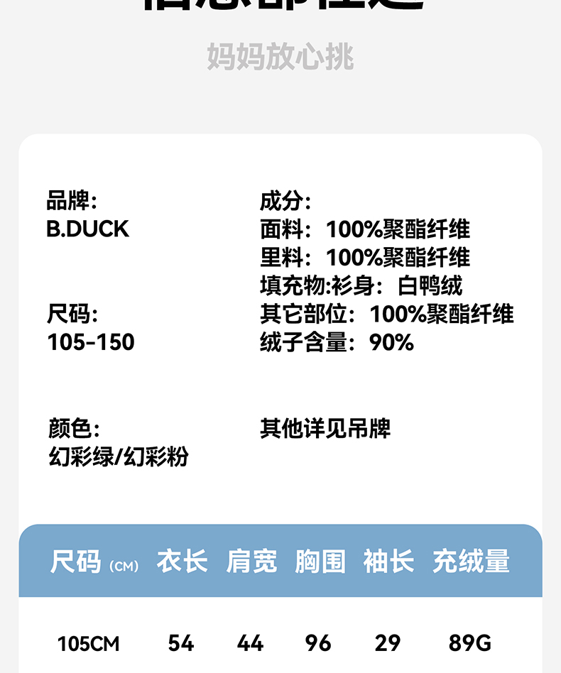 B.Duck小黄鸭童装冬季羽绒服105-150 BF5516009