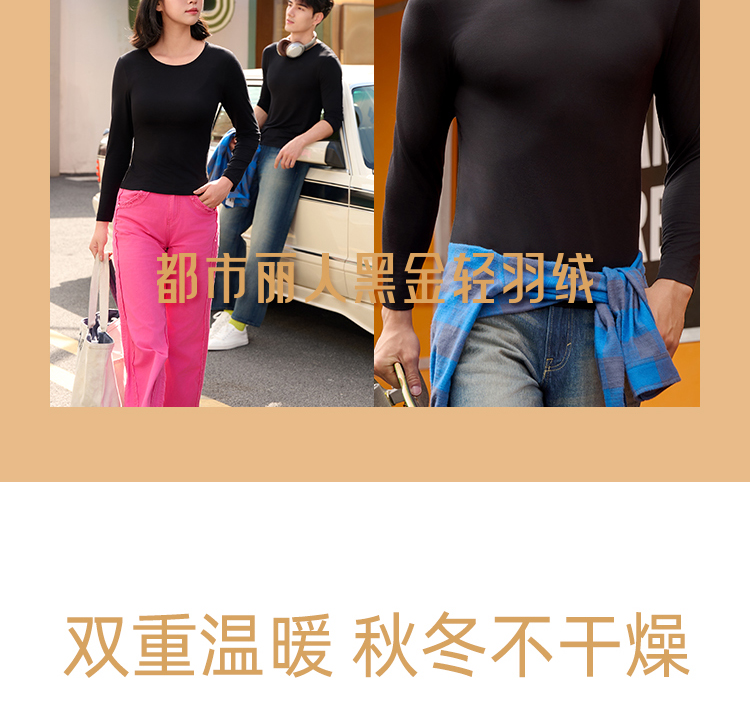 都市丽人黑金.轻羽绒3.0百搭保暖衣套装轻暖超薄轻羽绒长袖长裤男士特殊面料套装FWT1D8
