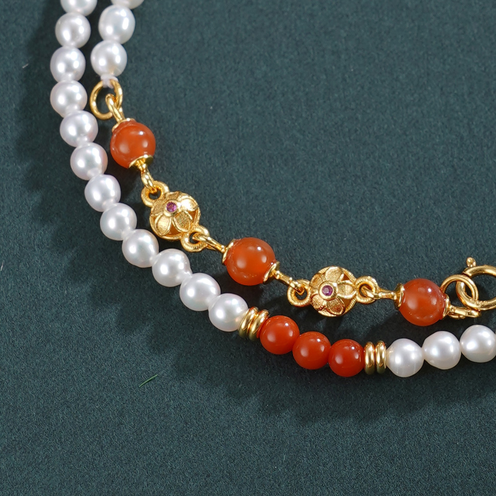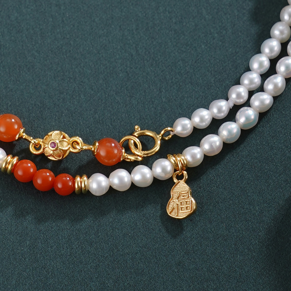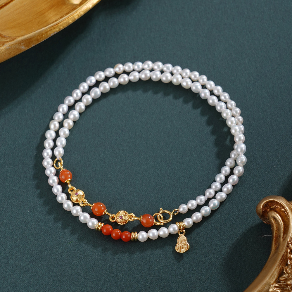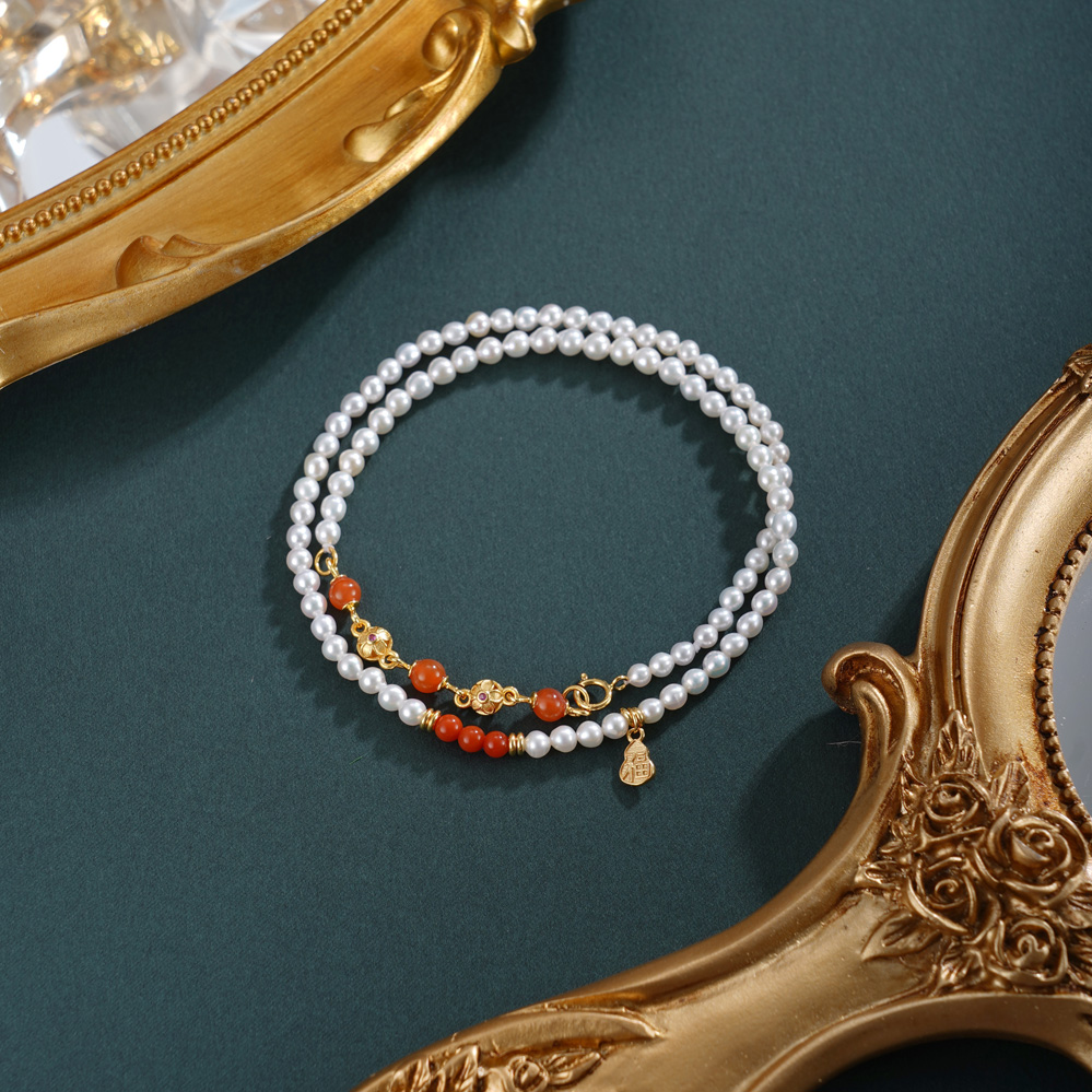 子佩集【福华之遇】银S925珍珠惜王妃手链【QNS0009】3mm珠镀金葫芦南红2601