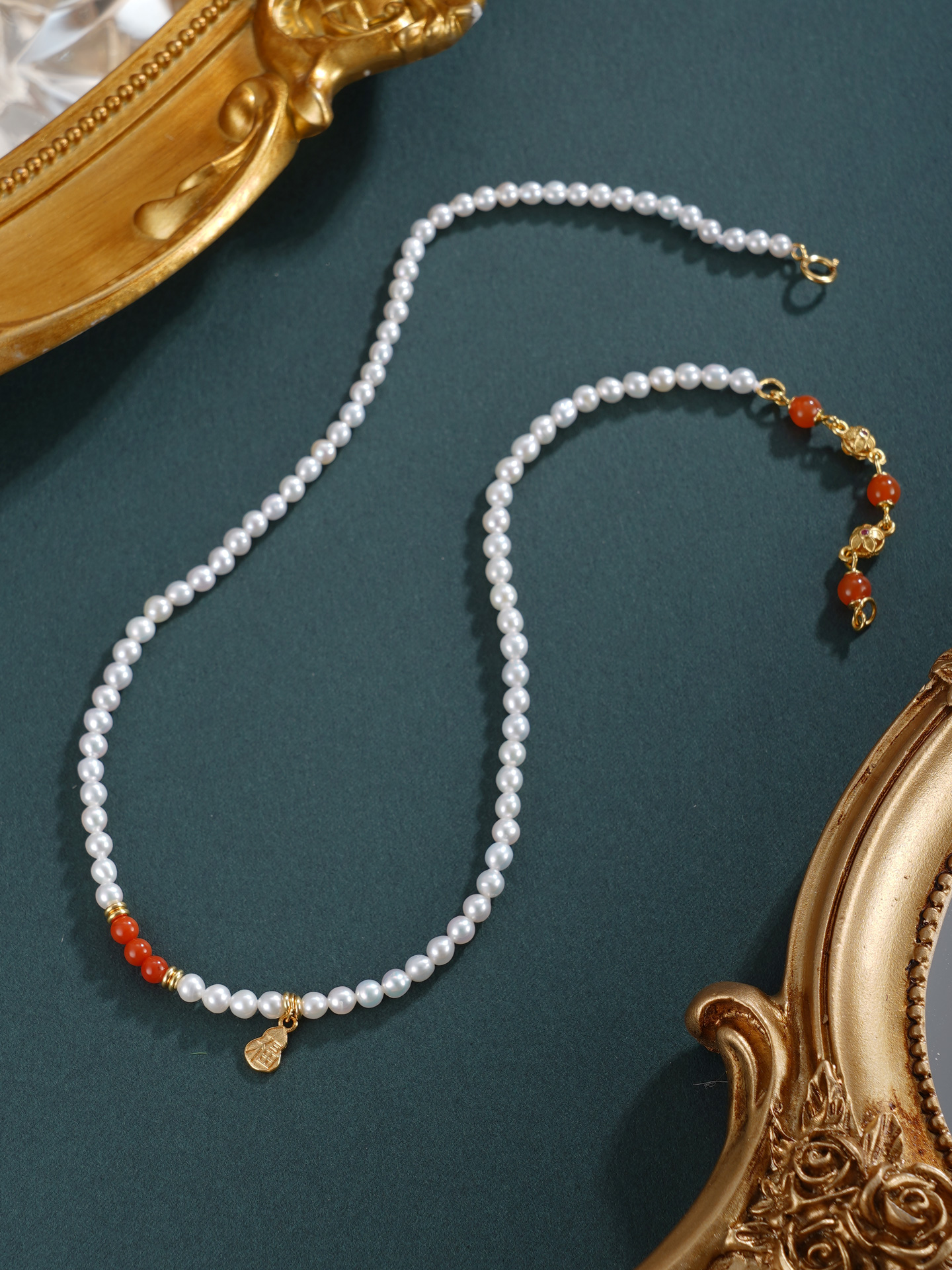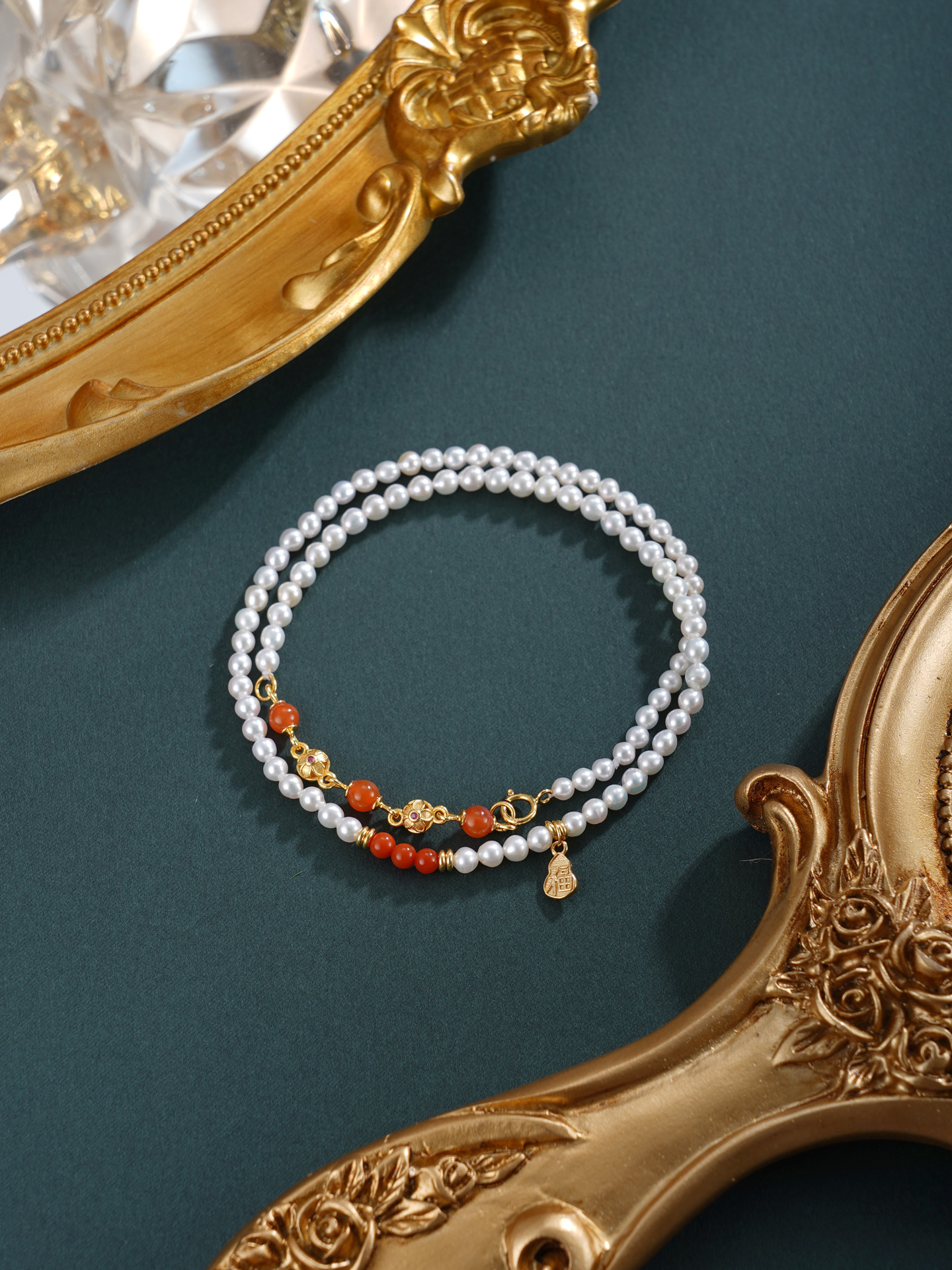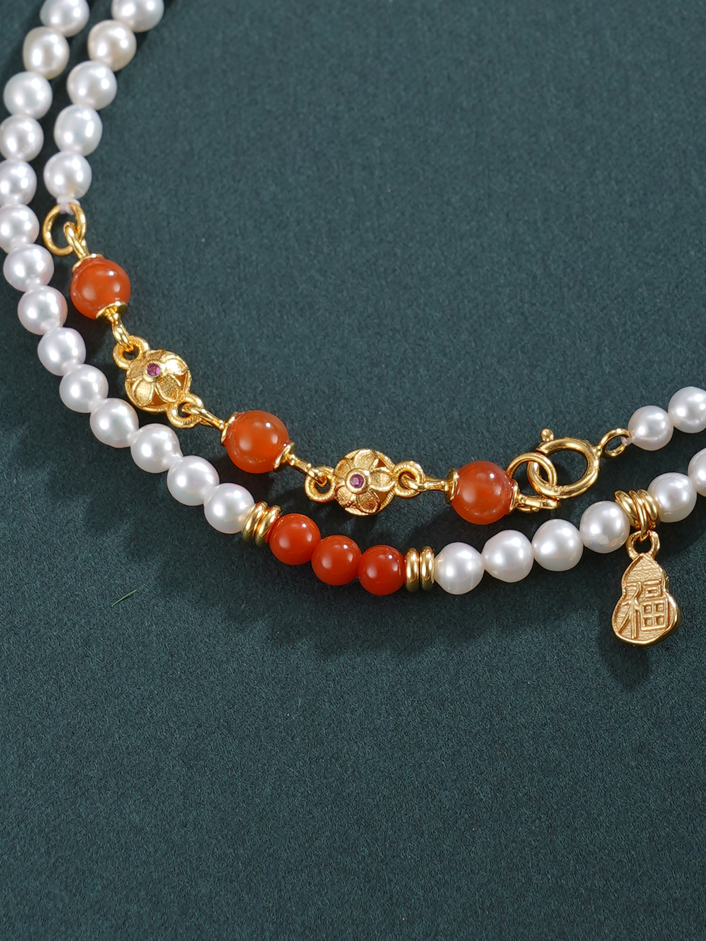 子佩集【福华之遇】银S925珍珠惜王妃手链【QNS0009】3mm珠镀金葫芦南红2601