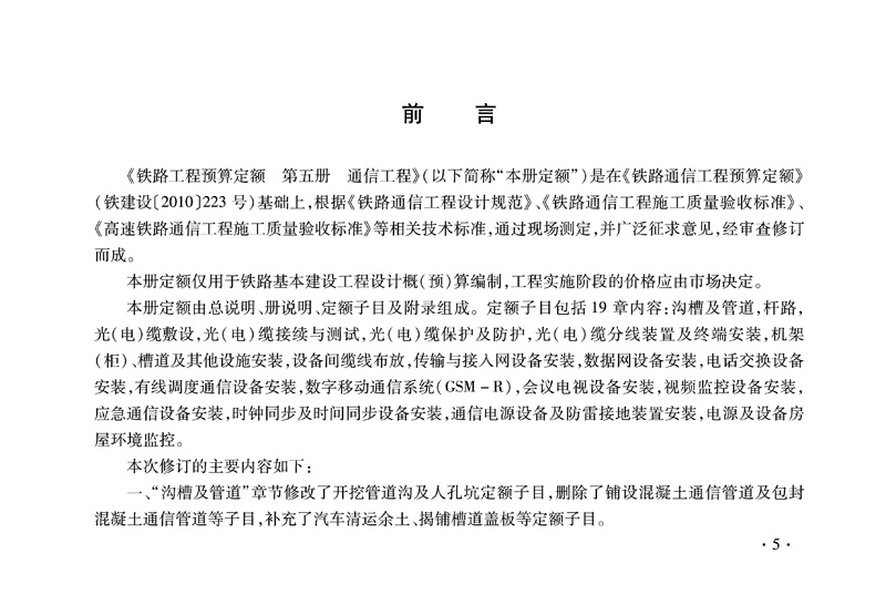 15113.5046 铁路工程预算定额 第五册 通信工程