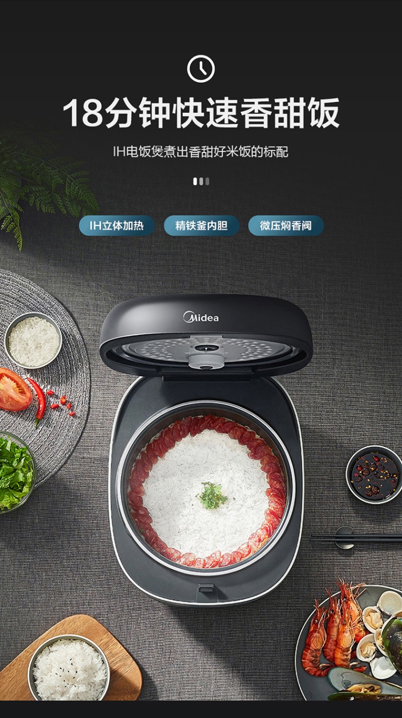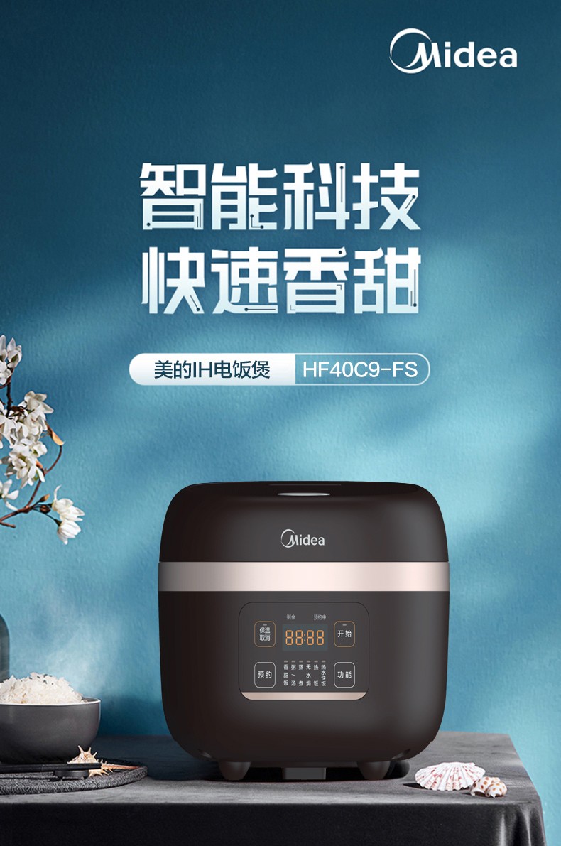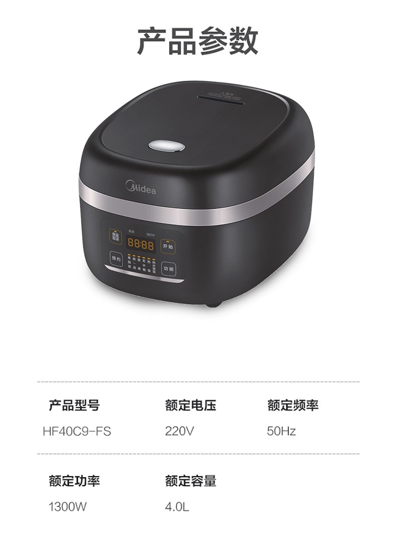 美的电饭煲4L/MB-HF40C9-FS 家用4L智能IH加热多功能24H预约精铁釜胆电饭锅