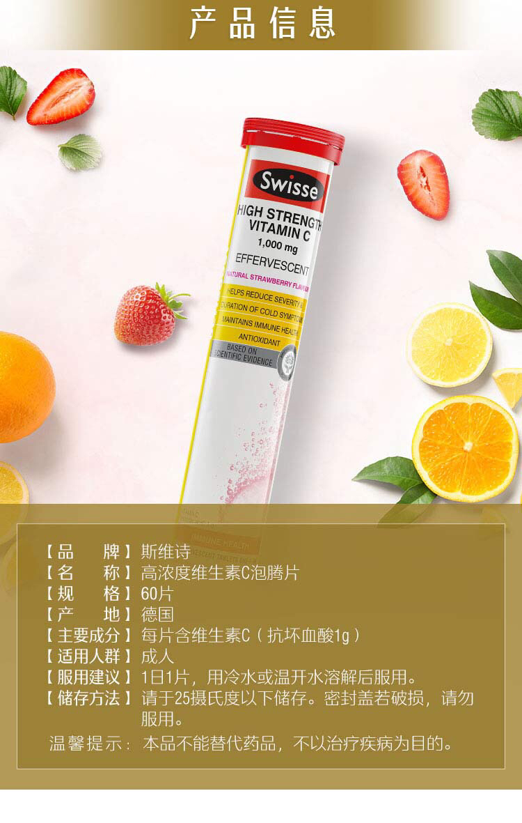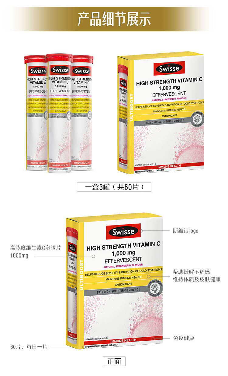 澳洲Swisse 斯维诗泡腾vc片 澳洲保健品 高浓度维生素C无糖3支装-会员6折