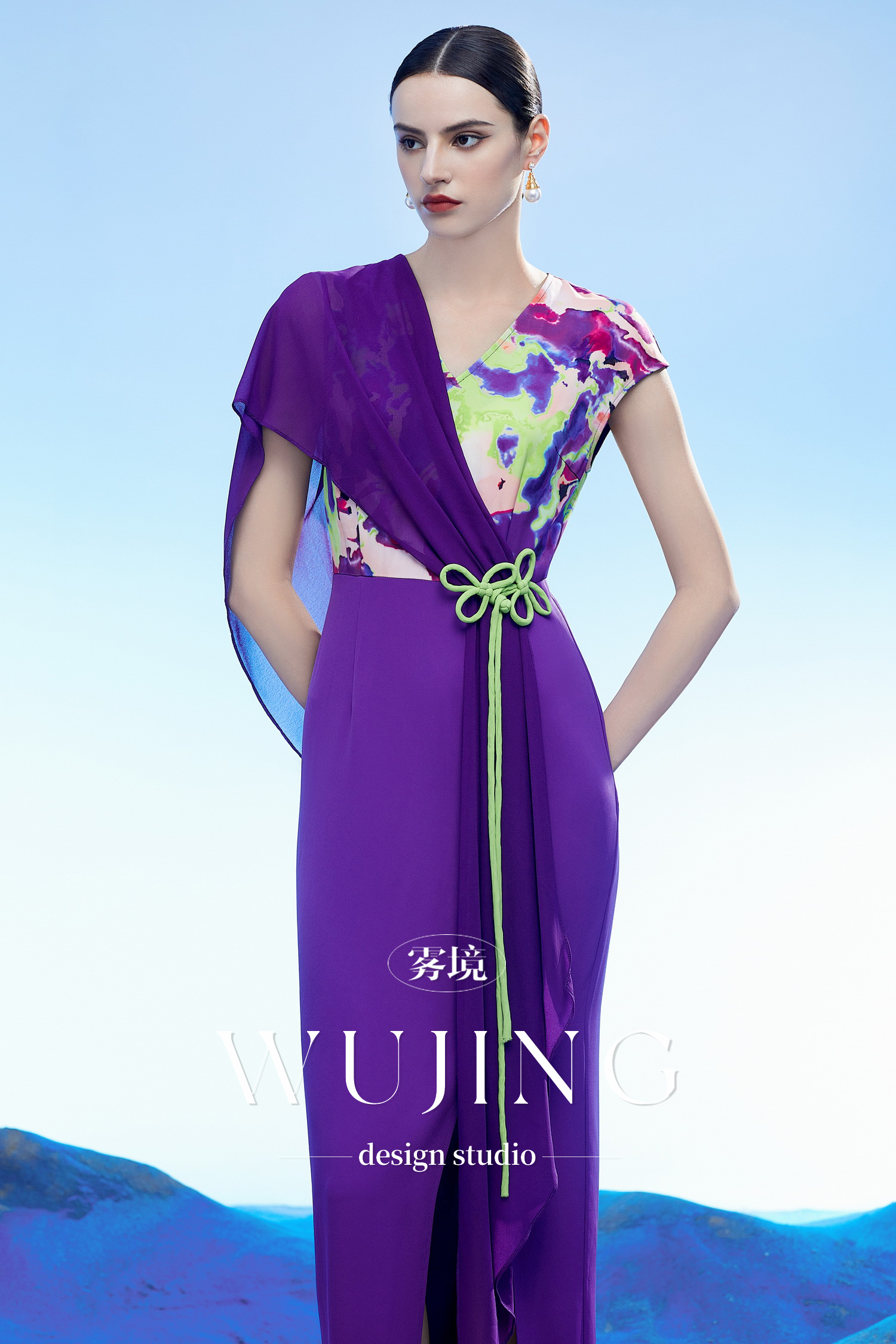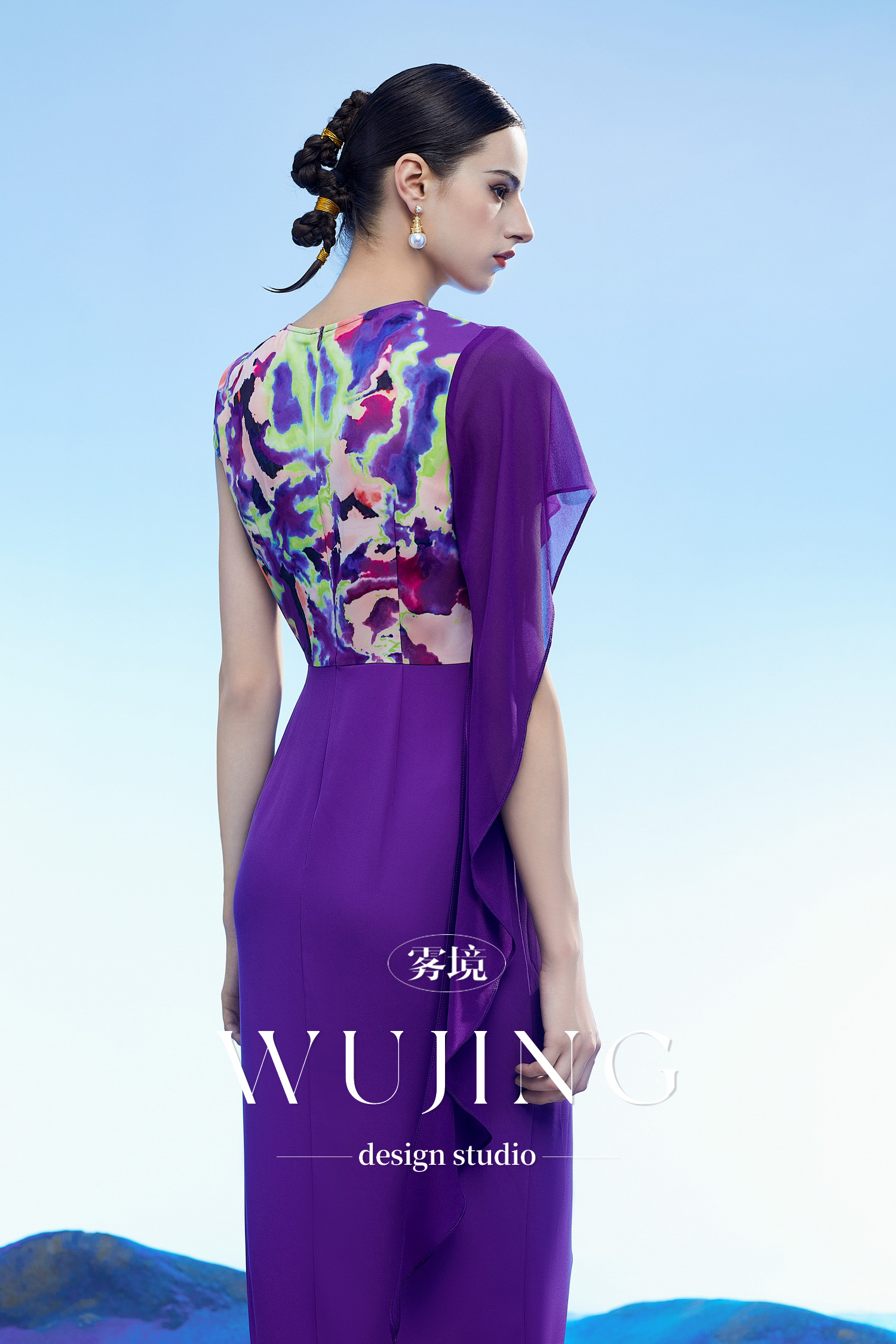 3204113 玉碧紫鸾 韩国进口水晶乔其纱进口纹理蜂窝缎连衣裙 雾境