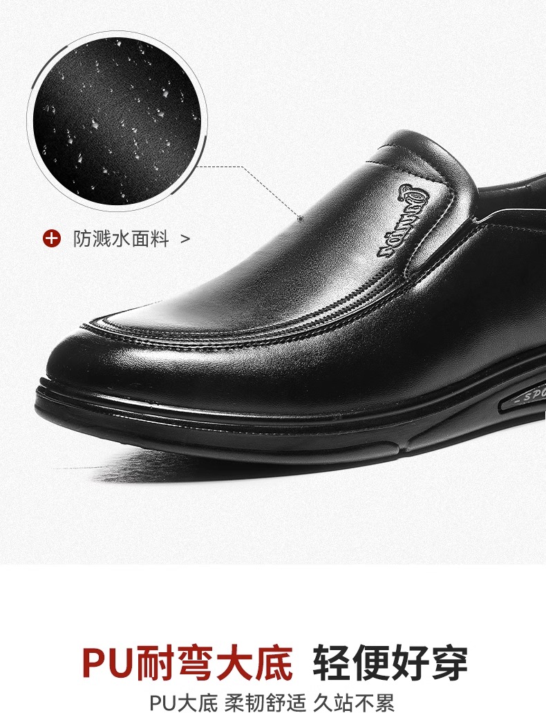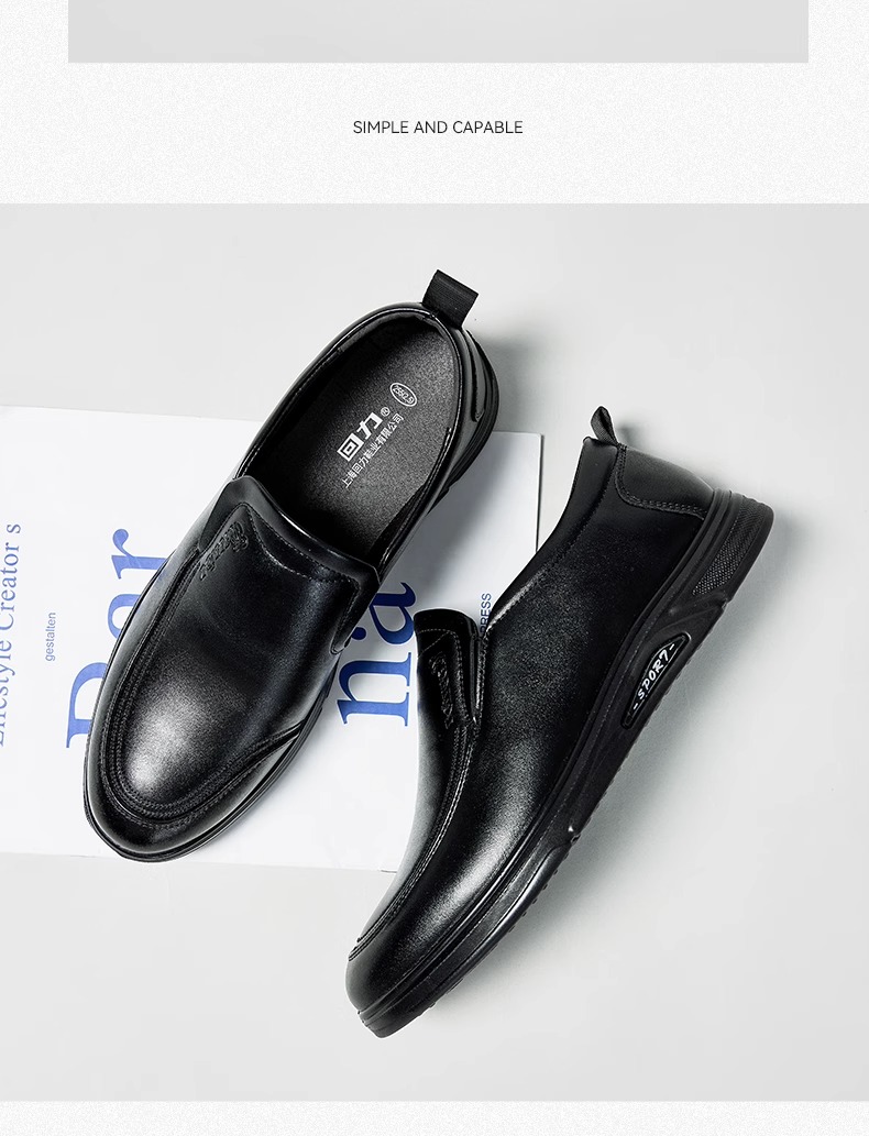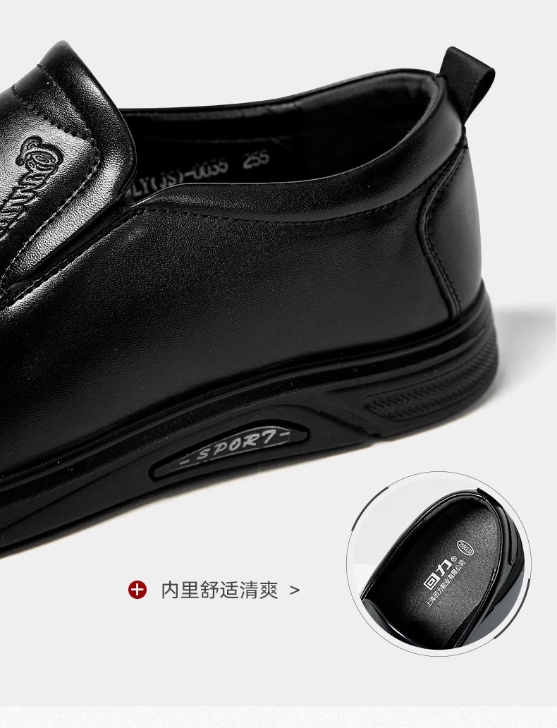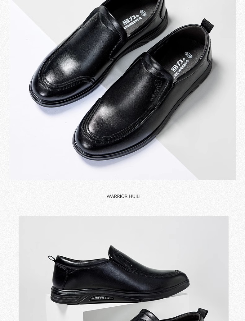 回力皮鞋男款2024新款一脚蹬懒人工作鞋软皮软底黑色商务休闲男鞋